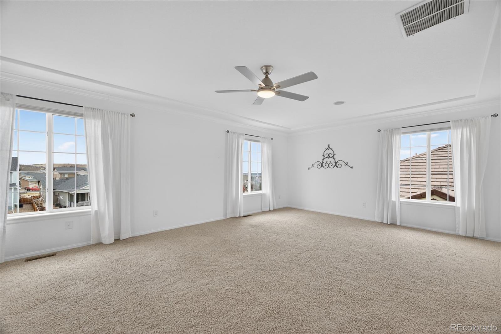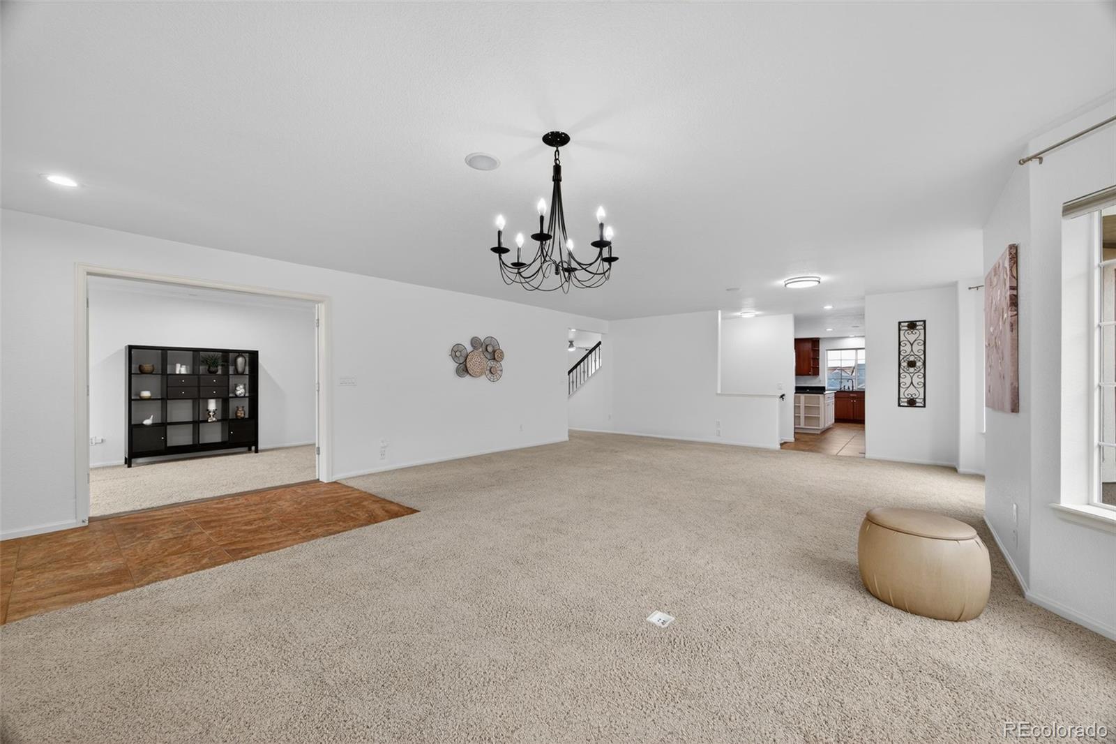 Welcome to 1385 Candleglow Street, a stunning and spacious residence ideally located in the heart of Castle Rock. From the moment you arrive, you’ll appreciate the charming curb appeal with stone accents, and an inviting entry that sets the stage for the bright and open interior. Inside, the home offers an airy floor plan filled with natural light and designed for both comfortable everyday living and effortless entertaining. The kitchen serves as the centerpiece, featuring rich cabinetry, sleek granite countertops, a large island, and generous prep space. A sunny eat-in kitchen area provides the ideal spot to enjoy morning coffee while taking in peaceful views. Upstairs a versatile loft, with wet bar, adds flexible space for a cozy reading nook, an entertainment space or an additional lounge area. The primary suite offers a relaxing retreat with a spacious five-piece bath, jetted tub, beautiful fireplace and an oversized walk-in closet. Additional bedrooms are well-sized with large walk-in closets, providing comfort for guests, family, or work-from-home needs. Outdoor living is a true highlight of this property, featuring an expansive deck with sweeping views and a covered patio below framed by stunning stone columns. Backing to open space, the backyard provides a serene and private setting that enhances both relaxation and entertaining. The unfinished portion of the basement offers excellent potential for future expansion and includes a toilet already in place along with rough-in plumbing for an additional bathroom, providing the opportunity to customize the space to suit your needs. Conveniently located near shopping and dining this home also provides excellent access to outdoor recreation. Just minutes away are Red Hawk Ridge Golf Course, Bison Park, and an abundance of nearby trails for hiking, biking, and exploring all that Castle Rock has to offer. Schedule your showing today and experience everything this exceptional property has to offer.