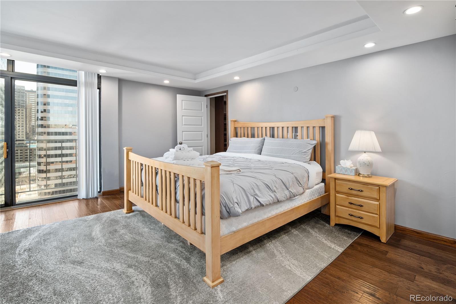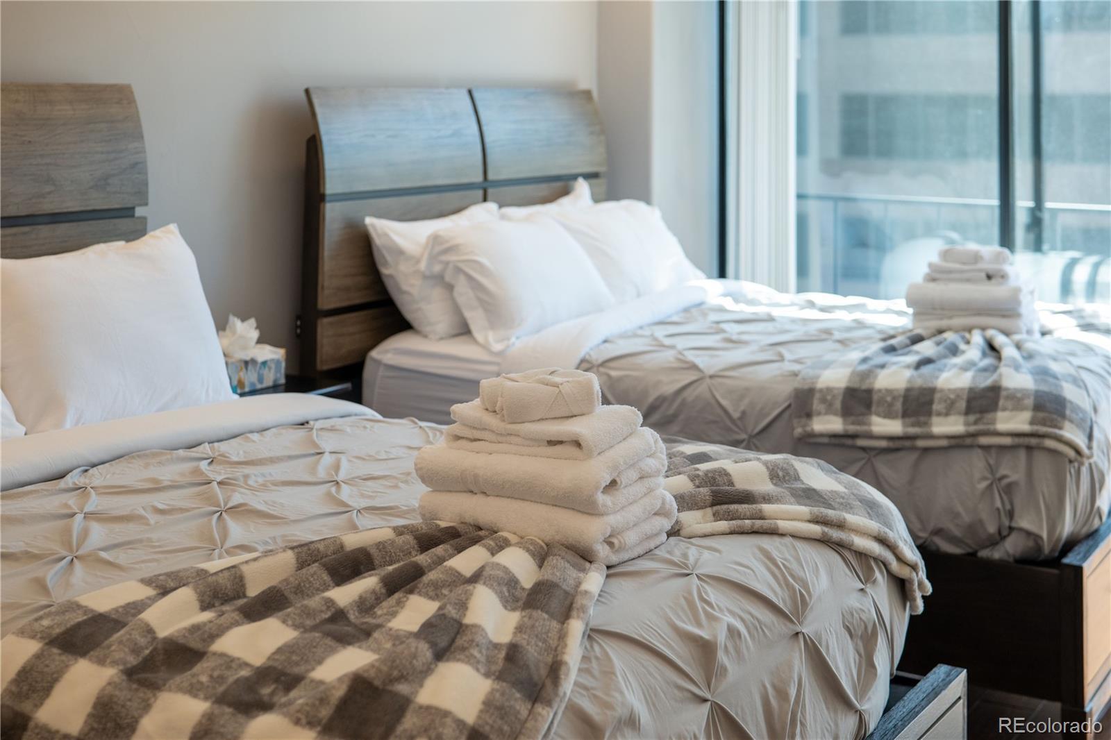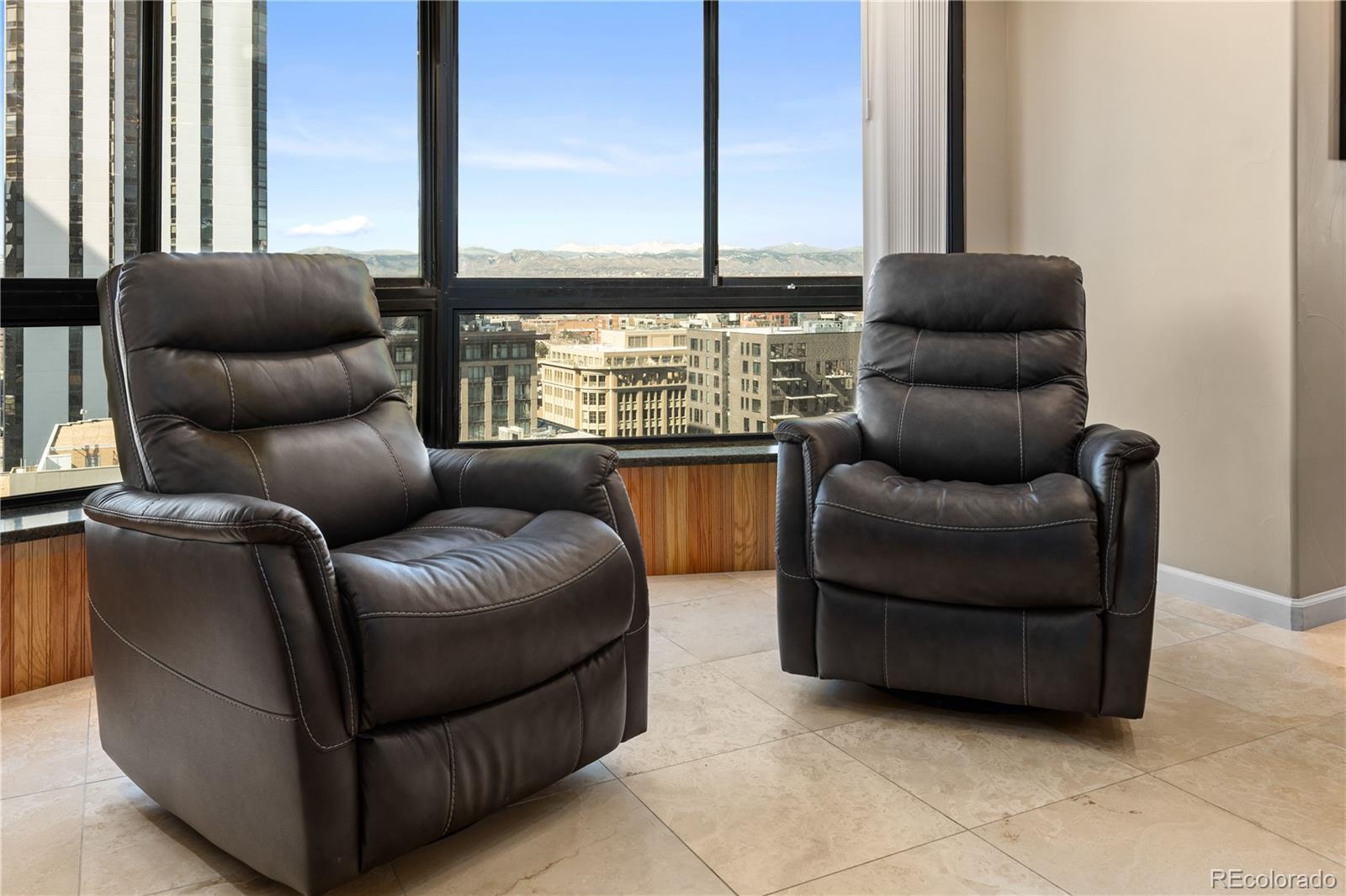 This downtown high-rise condo offers a luxurious experience with 2 Bed, 2 Bath, and a stunning urban contemporary aesthetic. Located on the 16th floor, this unit offers breathtaking views of the front range mountains and the gorgeous city of Denver. It's all about the small and unique detail with this unit! The stunning countertops and dark cabinetry, complemented by the urban contemporary design plus the cozy fireplace and floor-to-ceiling windows with beautiful views all create a warm and inviting atmosphere. One of the unique features of this condo is that it comes with 2 deeded parking spots, ensuring that you'll never have to worry about finding a place to park. For those who love to travel, this building allows homeowner the opportunity to Short Term Rent on AirBnB (up to $800+ / night) their units, making it a flexible and profitable choice for any homeowner. This Owner Right is rarely found anywhere in Denver for a luxury downtown high- rise. The building itself is highly secure and offers a range of amenities that cater to both relaxation and recreation. The spacious common room provides a pool table, large TVs, and a bar area that can accommodate large groups. The steam room and modernly advanced gym provide ample opportunities to relax and work up a sweat, while the racquetball court, rooftop tennis and basketball courts, and outdoor track offer plenty of opportunities for physical activity while enjoying stunning views of the city. Overall, this luxury downtown high-rise condo is an excellent investment opportunity for anyone looking for a high-end, low-maintenance home that provides both comfort and style. With its top-notch amenities, prime location, and stunning mountain views, this one has the IT factor.