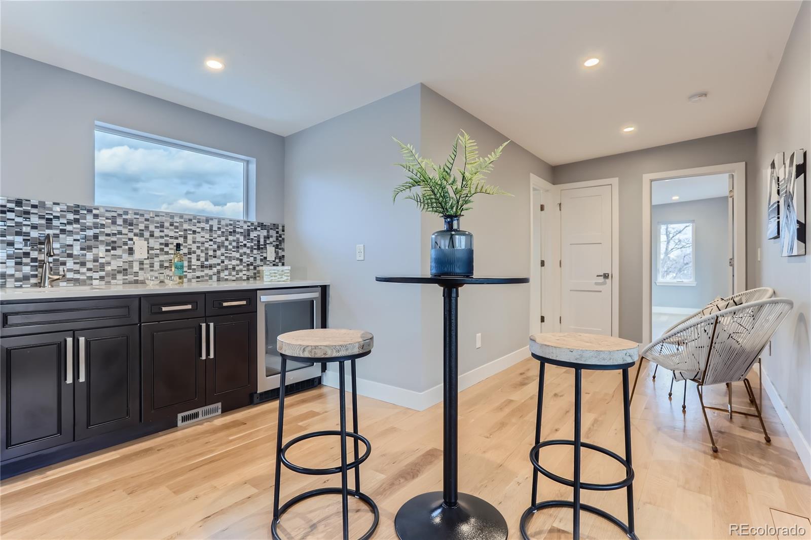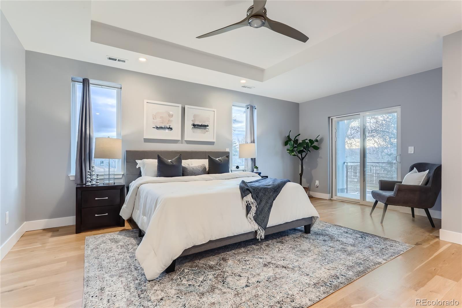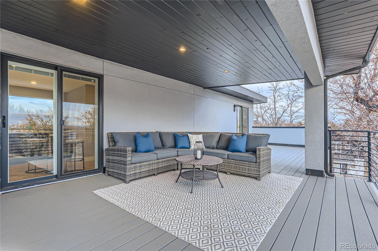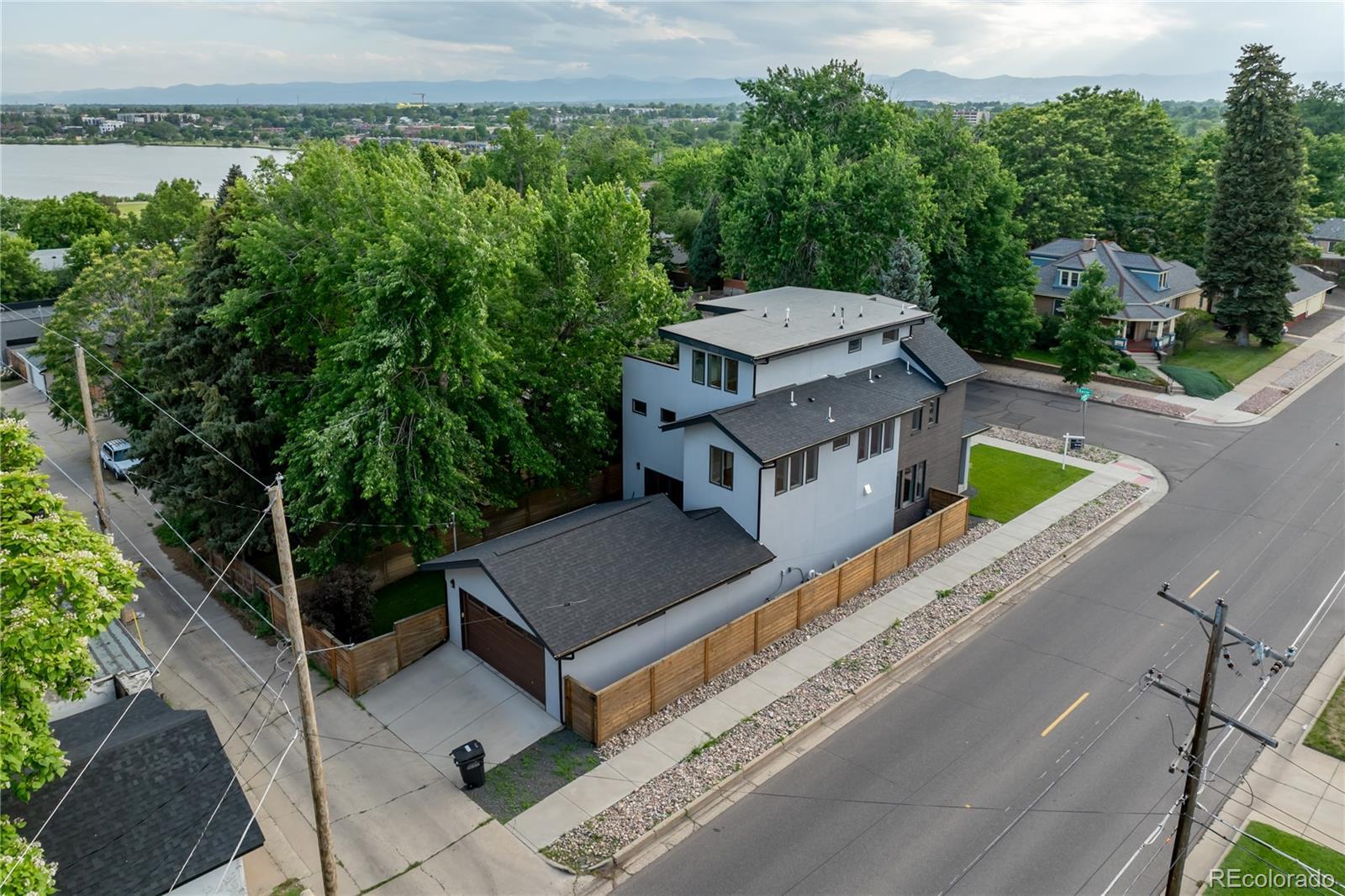 ** Now at Seller's Bottom-Line Price! ** Updated custom home, up the block from Sloan's Lake, and featuring three levels of indoor and outdoor living plus a finished basement. The expansive rooftop deck provides views of Sloan's Lake and the Front Range. The stairwell is adorned with custom railings and a custom 4-story chandelier, complemented by the home's wide-plank flooring. The gourmet kitchen includes custom cabinets, quartz countertops, and JennAir appliances, including a six-burner gas range. A large island with breakfast bar, a walk-in pantry and a spacious dining room enhance the culinary space. The great room features a linear gas fireplace with floor-to-ceiling tile, high ceilings, and hand-troweled walls. The main floor includes a bedroom/office, and a 3/4 bath with rainfall shower and body jets. The second level owner suite features a private balcony, walk-in custom closet, and ensuite bath with dual shower heads, body jets and soaking tub. Two additional bedrooms, a bathroom and a laundry room complete this level. The rooftop level features an expansive deck with lake and mountain views, a bedroom, bathroom, and wet bar with wine fridge. The basement has a rec room, wet bar, 170+ bottle wine cellar, media room, bedroom and 3/4 bath. This light and bright home is equipped with high-efficiency furnaces, steam humidifier, Lutron smart lighting, and Nest thermostats. All bathrooms have heated floors. The 3-car tandem garage includes a pet wash station and epoxy flooring. Outside, the home features a large patio and sprinklers. Easy access to the lake, shopping, parks, restaurants and downtown. Come by today! Measurements and information are approximate; buyer advised to verify.