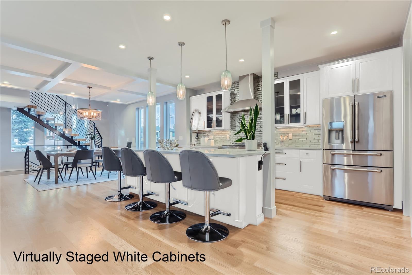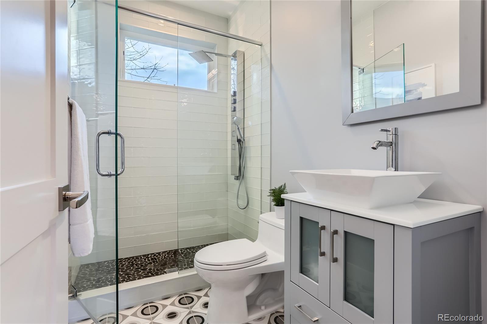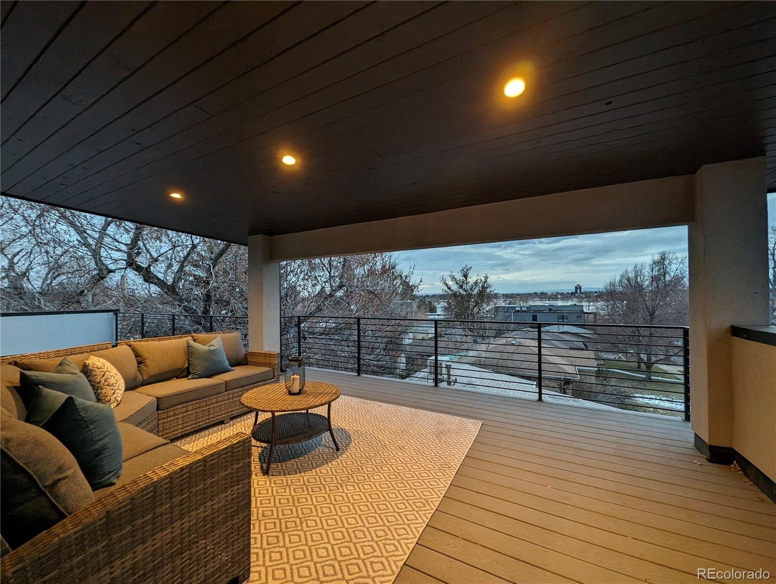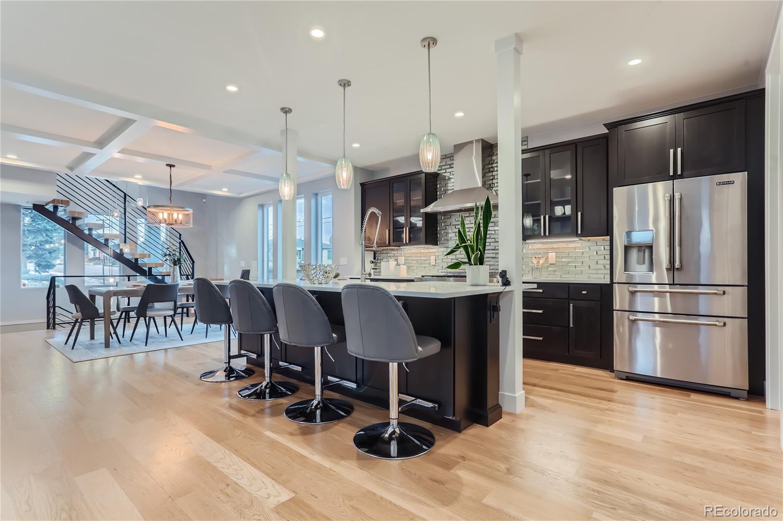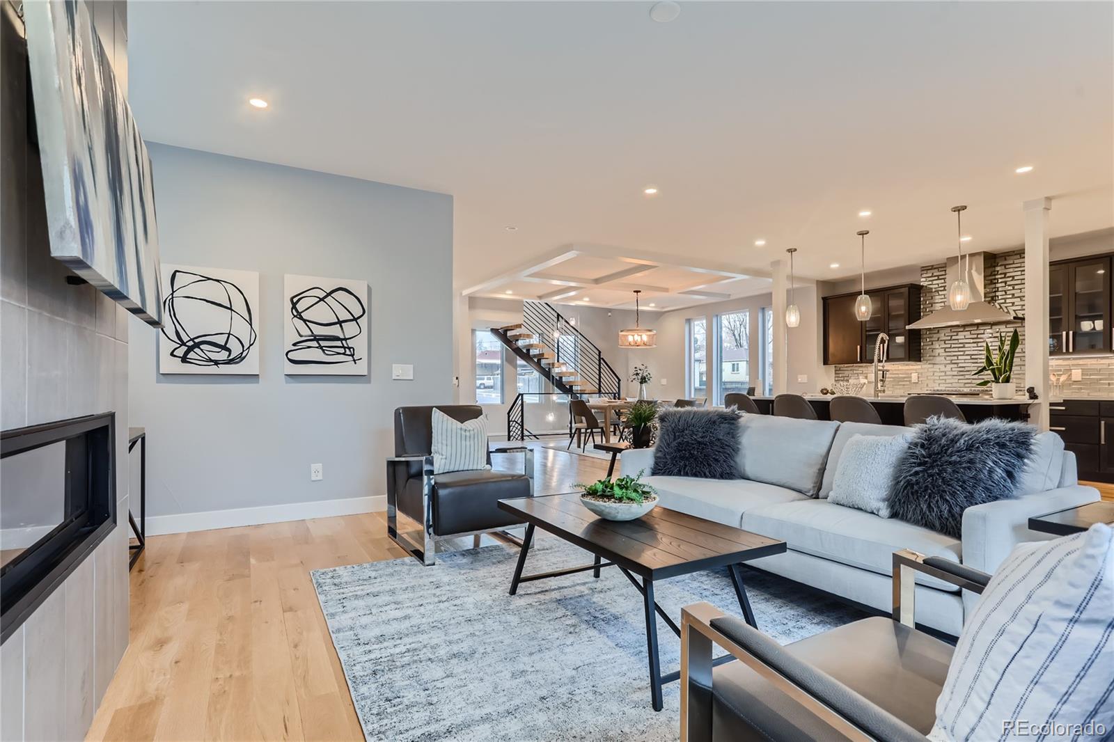 ** Now at Seller's Bottom-Line Price! ** Updated custom home, up the block from Sloan's Lake, and featuring three levels of indoor and outdoor living plus a finished basement. The expansive rooftop deck provides views of Sloan's Lake and the Front Range. The stairwell is adorned with custom railings and a custom 4-story chandelier, complemented by the home's wide-plank flooring. The gourmet kitchen includes custom cabinets, quartz countertops, and JennAir appliances, including a six-burner gas range. A large island with breakfast bar, a walk-in pantry and a spacious dining room enhance the culinary space. The great room features a linear gas fireplace with floor-to-ceiling tile, high ceilings, and hand-troweled walls. The main floor includes a bedroom/office, and a 3/4 bath with rainfall shower and body jets. The second level owner suite features a private balcony, walk-in custom closet, and ensuite bath with dual shower heads, body jets and soaking tub. Two additional bedrooms, a bathroom and a laundry room complete this level. The rooftop level features an expansive deck with lake and mountain views, a bedroom, bathroom, and wet bar with wine fridge. The basement has a rec room, wet bar, 170+ bottle wine cellar, media room, bedroom and 3/4 bath. This light and bright home is equipped with high-efficiency furnaces, steam humidifier, Lutron smart lighting, and Nest thermostats. All bathrooms have heated floors. The 3-car tandem garage includes a pet wash station and epoxy flooring. Outside, the home features a large patio and sprinklers. Easy access to the lake, shopping, parks, restaurants and downtown. Come by today! Measurements and information are approximate; buyer advised to verify.