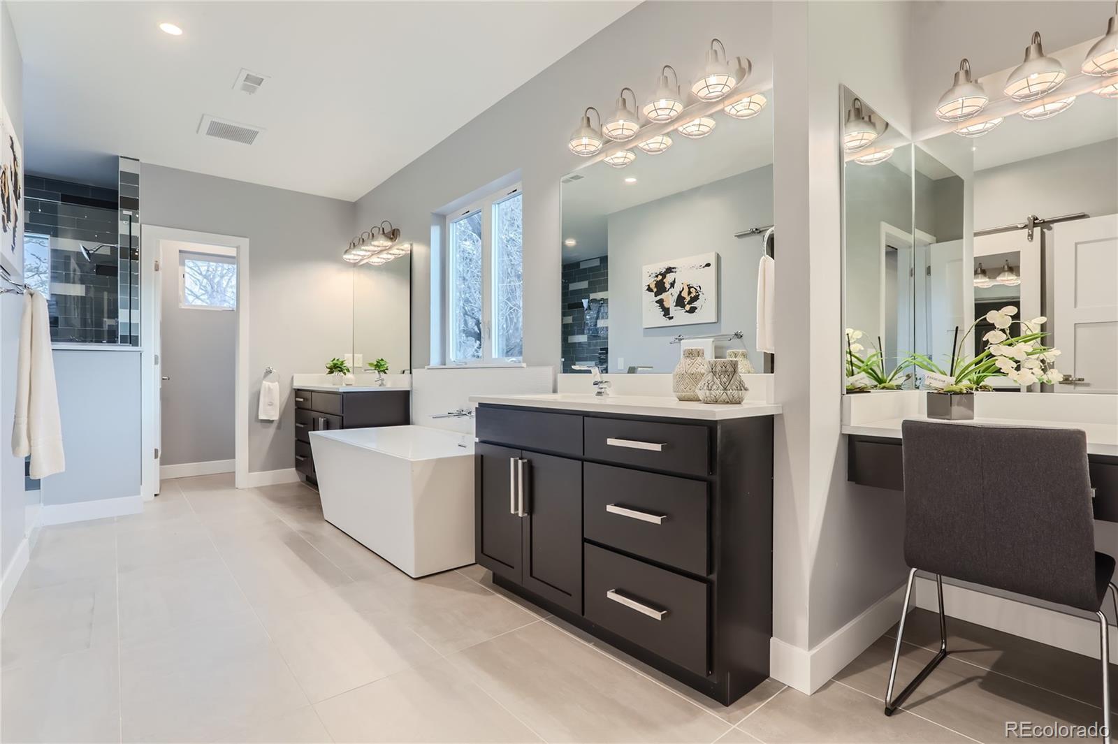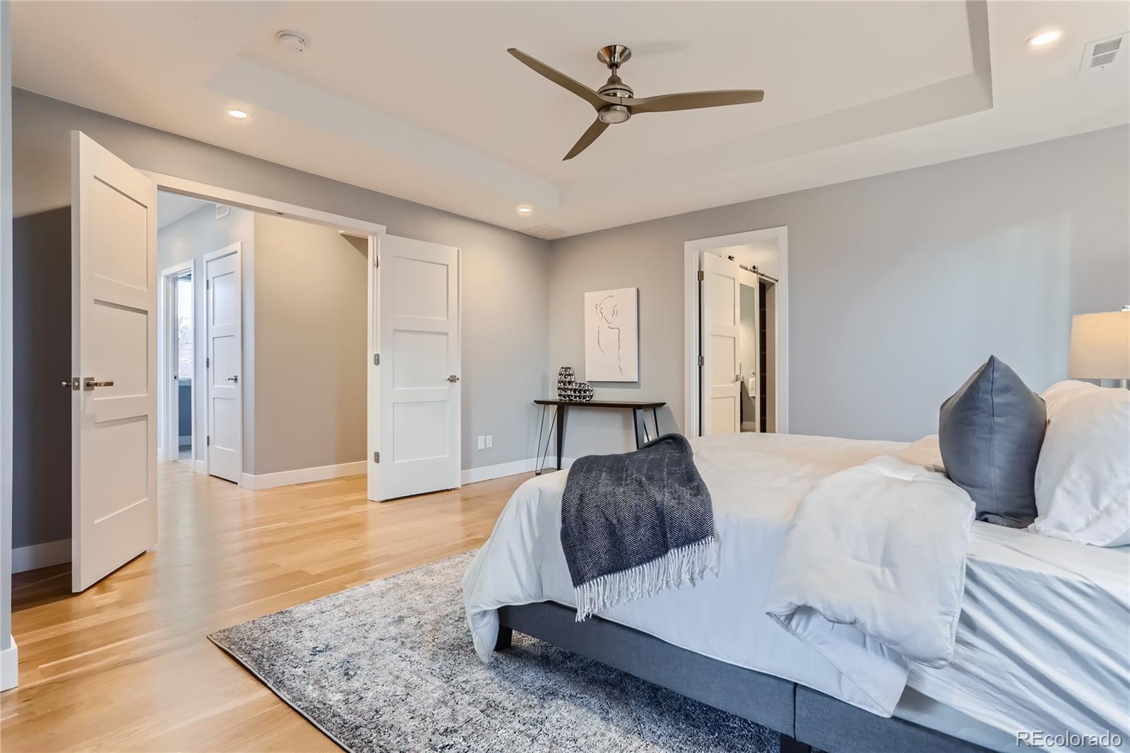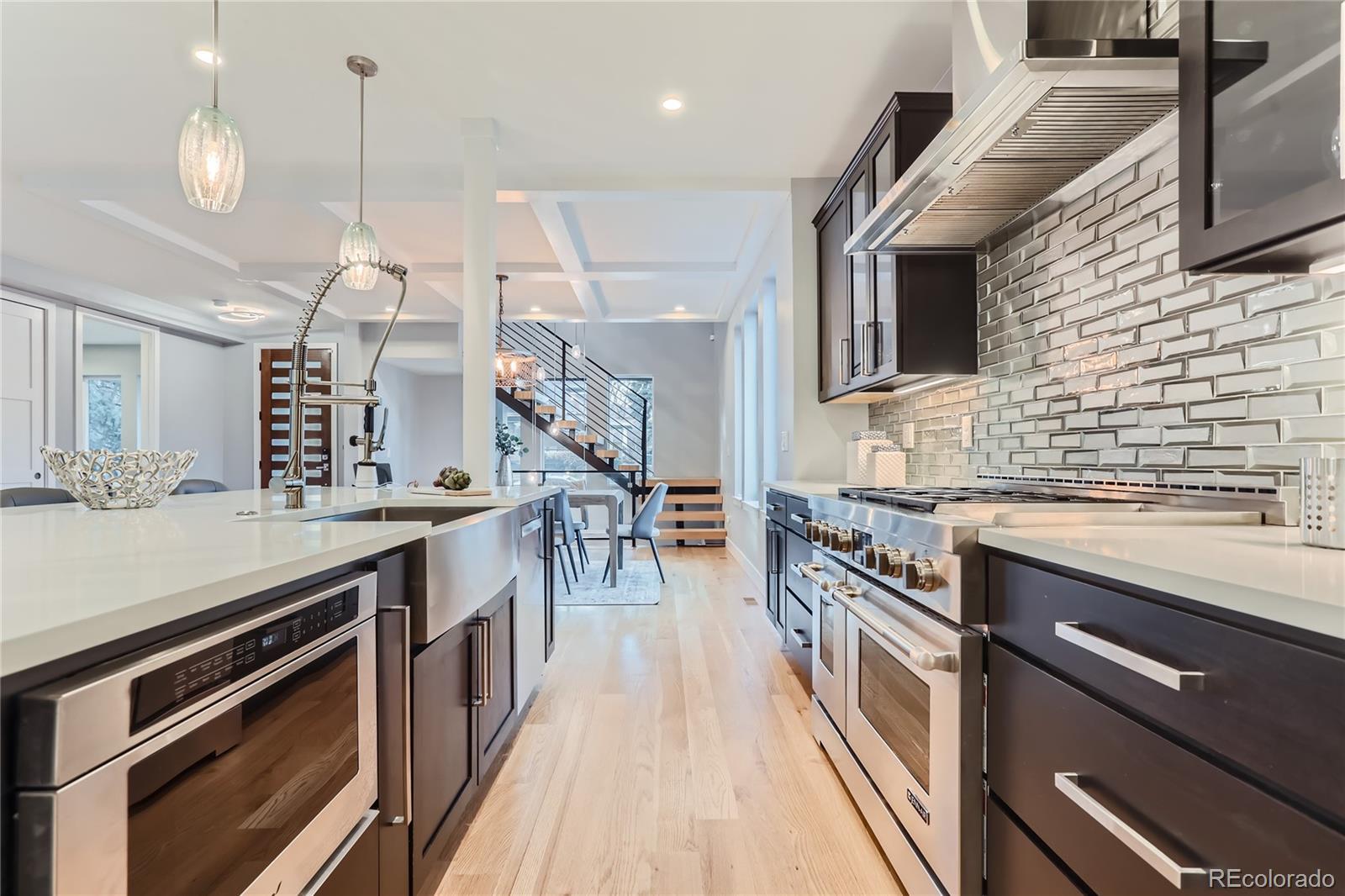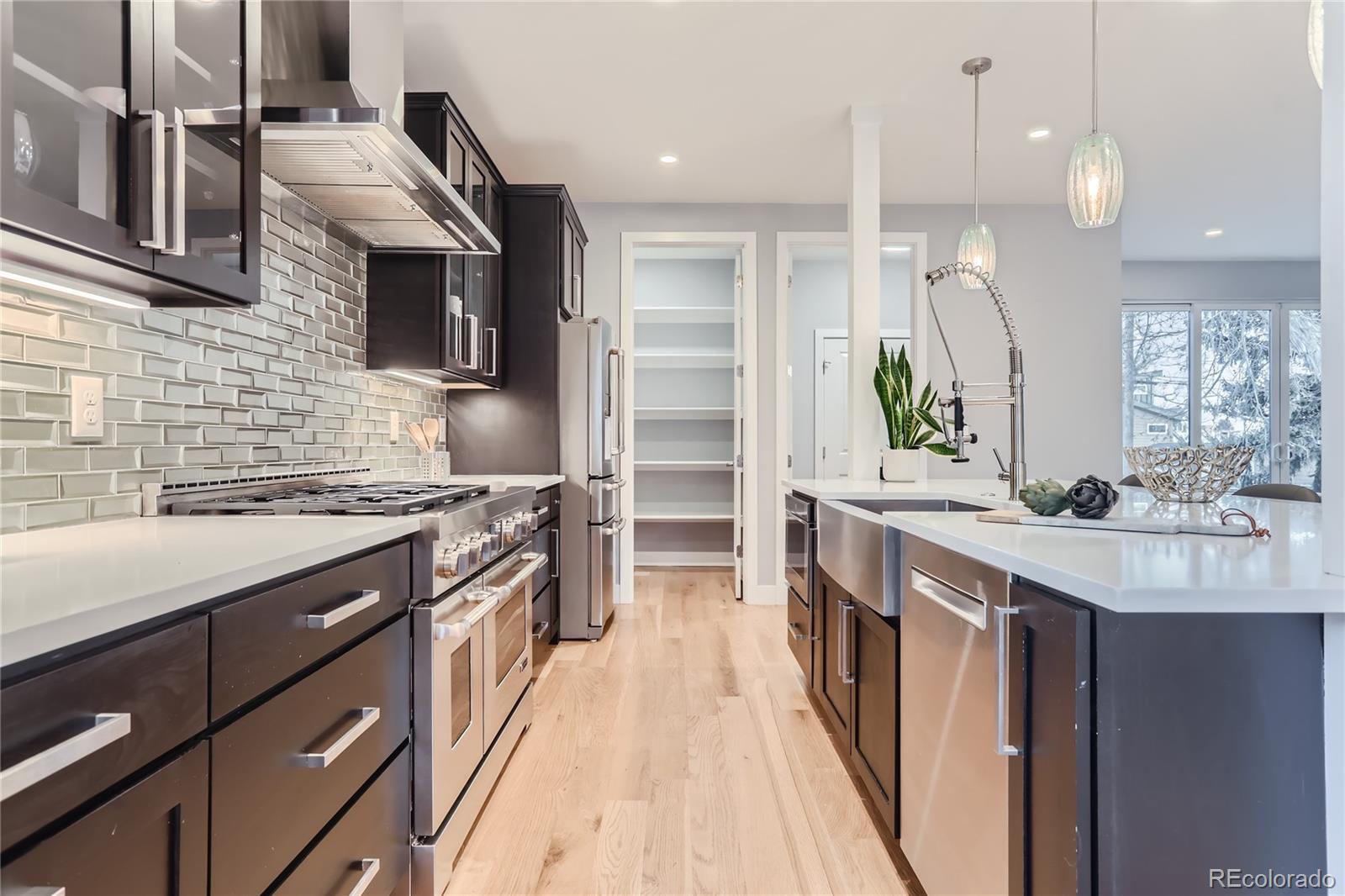 ** Now at Seller's Bottom-Line Price! ** Updated custom home, up the block from Sloan's Lake, and featuring three levels of indoor and outdoor living plus a finished basement. The expansive rooftop deck provides views of Sloan's Lake and the Front Range. The stairwell is adorned with custom railings and a custom 4-story chandelier, complemented by the home's wide-plank flooring. The gourmet kitchen includes custom cabinets, quartz countertops, and JennAir appliances, including a six-burner gas range. A large island with breakfast bar, a walk-in pantry and a spacious dining room enhance the culinary space. The great room features a linear gas fireplace with floor-to-ceiling tile, high ceilings, and hand-troweled walls. The main floor includes a bedroom/office, and a 3/4 bath with rainfall shower and body jets. The second level owner suite features a private balcony, walk-in custom closet, and ensuite bath with dual shower heads, body jets and soaking tub. Two additional bedrooms, a bathroom and a laundry room complete this level. The rooftop level features an expansive deck with lake and mountain views, a bedroom, bathroom, and wet bar with wine fridge. The basement has a rec room, wet bar, 170+ bottle wine cellar, media room, bedroom and 3/4 bath. This light and bright home is equipped with high-efficiency furnaces, steam humidifier, Lutron smart lighting, and Nest thermostats. All bathrooms have heated floors. The 3-car tandem garage includes a pet wash station and epoxy flooring. Outside, the home features a large patio and sprinklers. Easy access to the lake, shopping, parks, restaurants and downtown. Come by today! Measurements and information are approximate; buyer advised to verify.