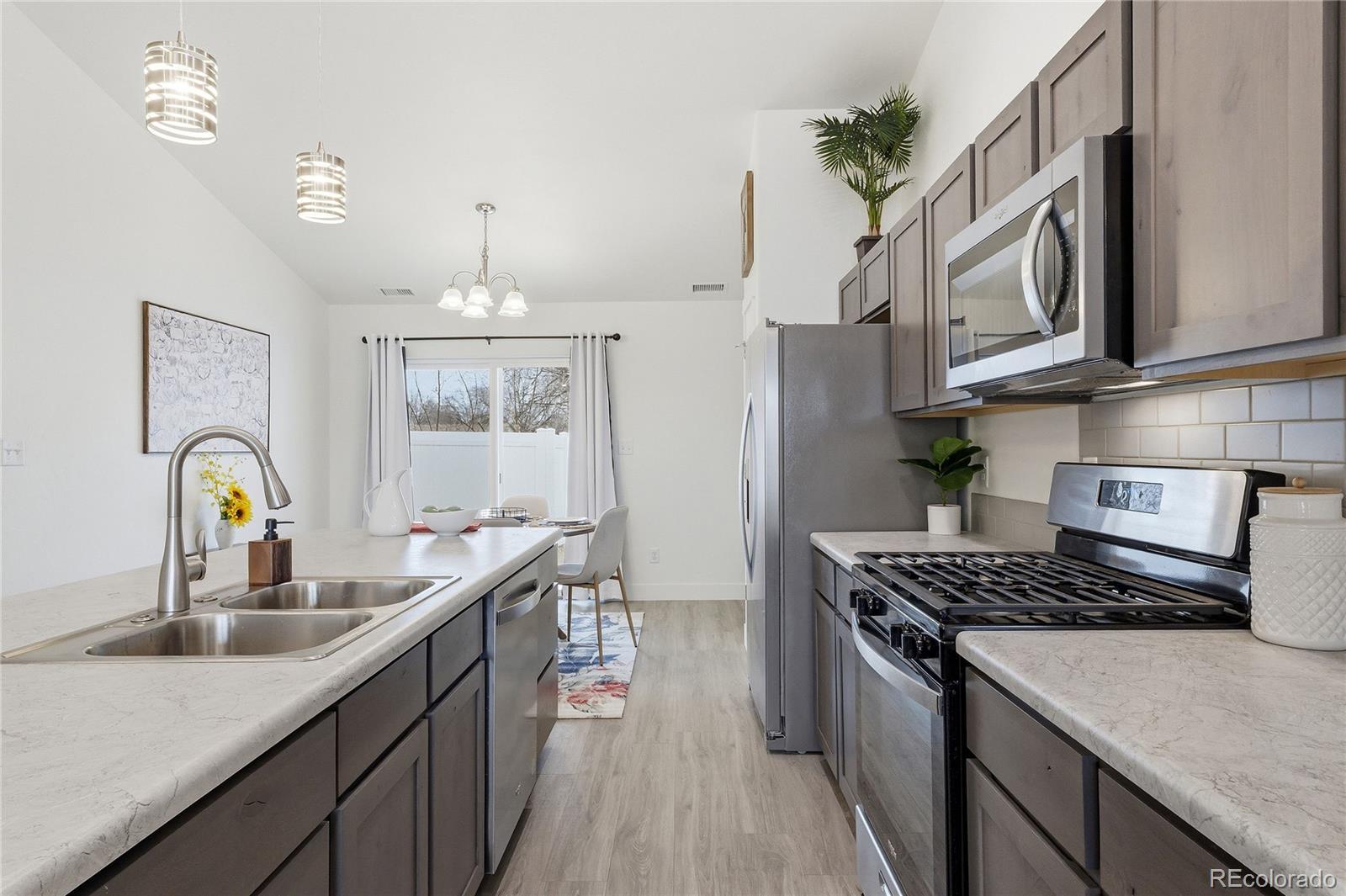 Built in 2024, this detached single-family home in the desirable Tawny Subdivision offers modern construction, quality finishes, and low-maintenance living. Not a townhouse, this is a standalone residence, providing added privacy and space. Inside, the open-concept layout features vaulted ceilings, durable flooring, and abundant natural light. The kitchen is finished with stainless steel appliances, solid-surface countertops, and contemporary nickel fixtures, all designed for clean, modern living. Central air conditioning and forced air heating provide year-round comfort. The primary suite offers a bright and functional retreat, while the overall floorplan maximizes efficiency and livability. Thoughtful finishes and a neutral palette make this home truly move-in ready. The backyard is prepped and ready for your custom landscaping vision, creating a blank canvas for outdoor living. Irrigation water is available, offering added convenience for maintaining your yard. Located in a quiet neighborhood with easy access to everything Grand Junction offers, you’re approximately 15 minutes to Mesa Mall and shopping, 10 minutes to downtown Grand Junction, Colorado Mesa University and St. Mary’s Medical Center, and just minutes to I-70 for convenient commuting. Outdoor enthusiasts will appreciate nearby hiking, biking, and access to the Colorado National Monument and Grand Mesa recreation areas. Enjoy the benefits of newer construction without the wait. Schedule your showing today.