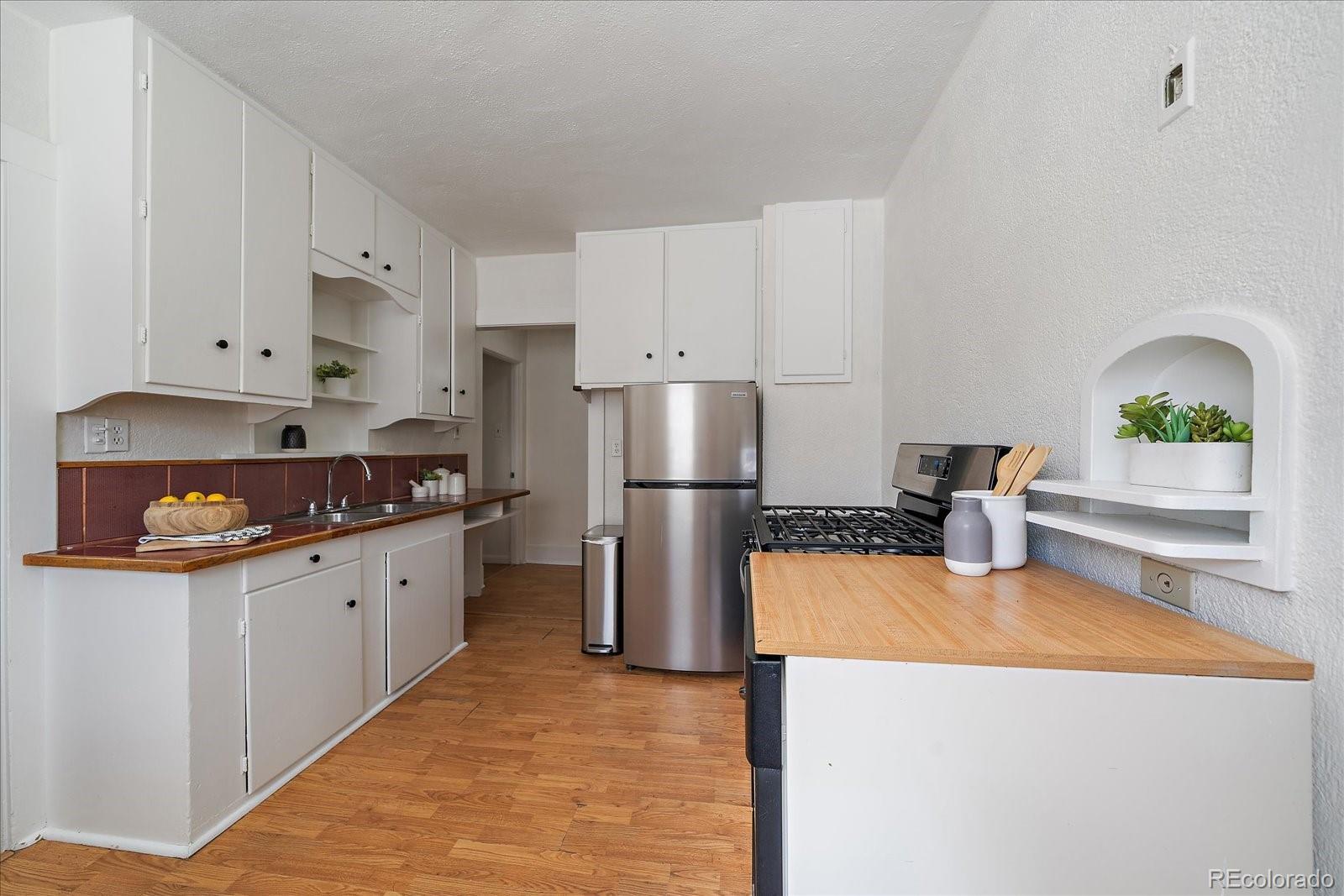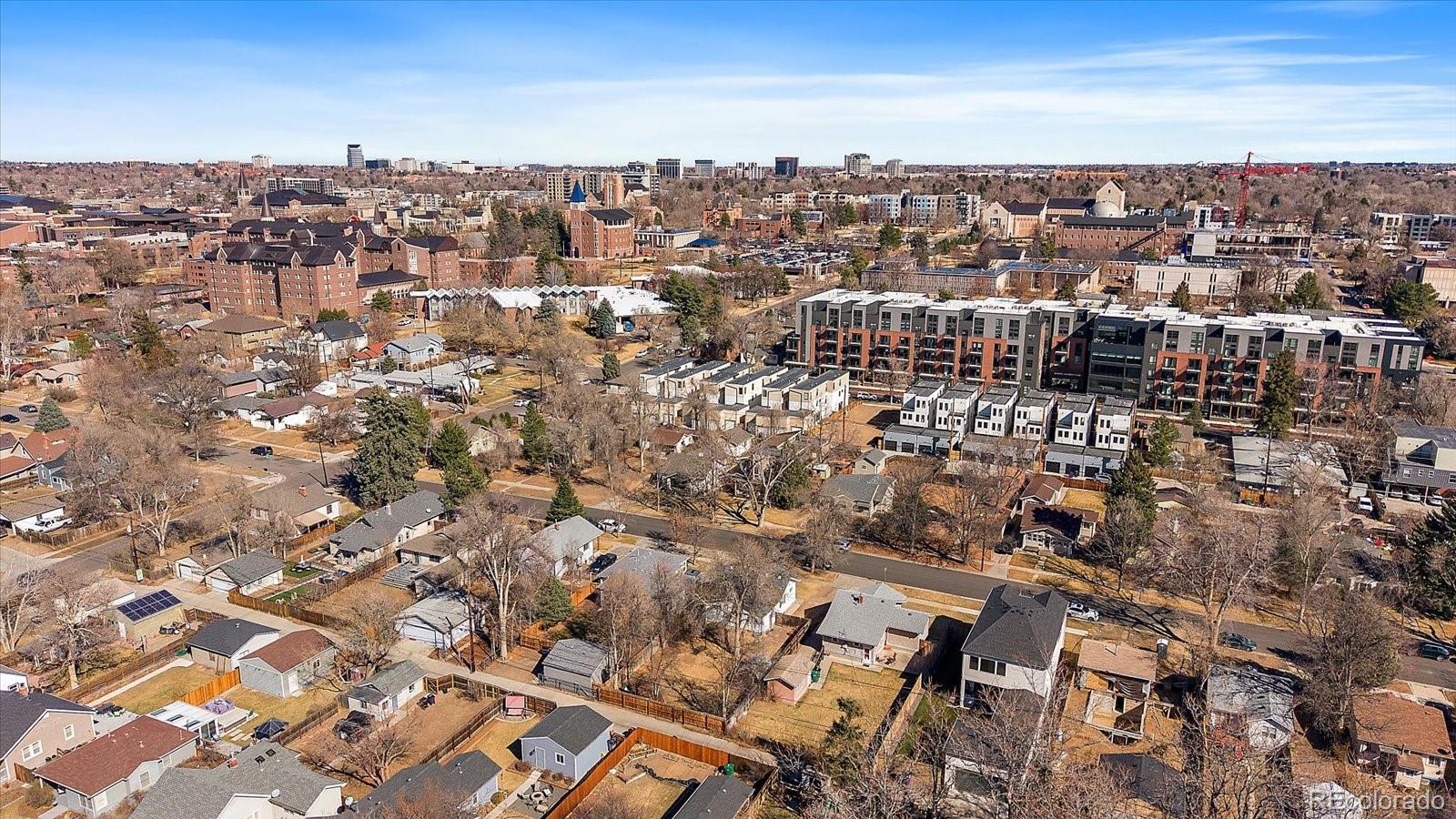 Quaint cottage-style home in the University neighborhood just minutes from The University of Denver, restaurants, coffee shops, trails and parks! This charming 3-bedroom home features an updated full bathroom and a freshly repainted interior. The front entry provides a versatile space perfect for a cozy home office, mud room or drop zone. The inviting family room includes a ceiling fan and flows into the kitchen, which features a brand-new gas range and refrigerator along with a convenient eating nook. All three bedrooms have overhead ceiling fans and the home offers solid flooring throughout with no carpet. Major updates include a brand-new roof in 2025 and a newer washer and dryer, both included. The basement offers over 400 square feet of unfinished space—ideal for a studio, gym, office or additional storage—along with two crawlspaces. Situated on a large flat lot, the property includes a backyard shed and plenty of room to build a garage with convenient alley access behind the home. Two outdoor living spaces include a flagstone patio outside the back door. Sprinkler systems are installed in both the front and back yards. Additional updates include a recent partial sewer line replacement for added peace of mind. Enjoy an unbeatable location within walking distance to the University of Denver, DeBoer Park and the East Harvard Gulch Trail, with quick access to Harvard Gulch Park, Wash Park, Pearl Street and countless restaurants, shops, and amenities throughout the vibrant University area. Be sure to check out the floor plans with the photos and the 3D tour!