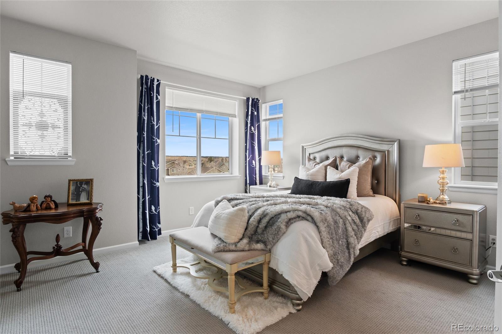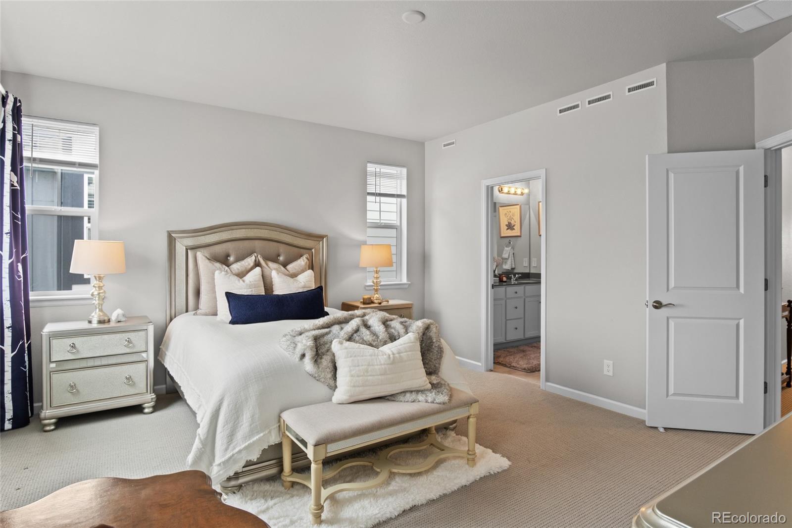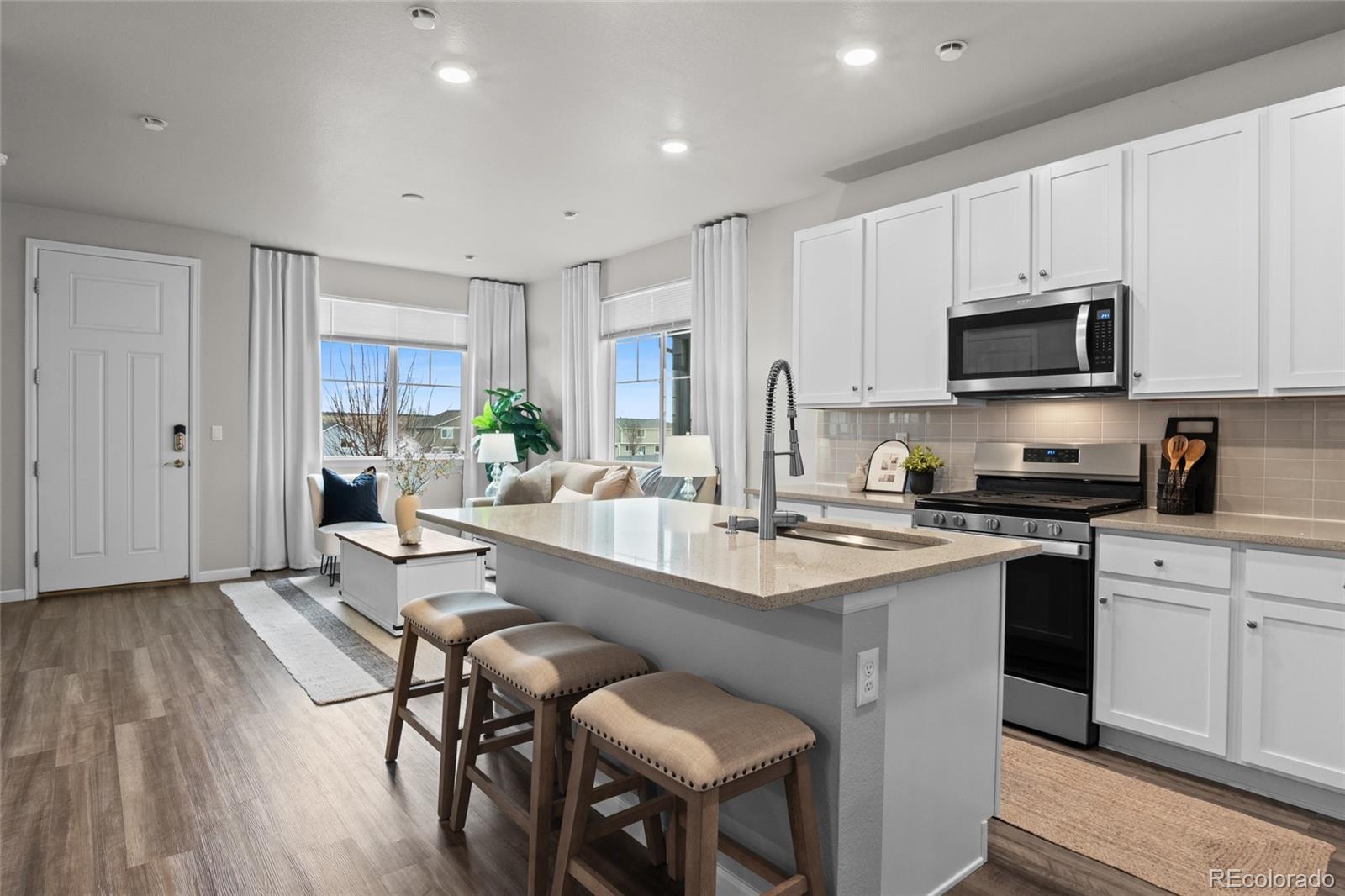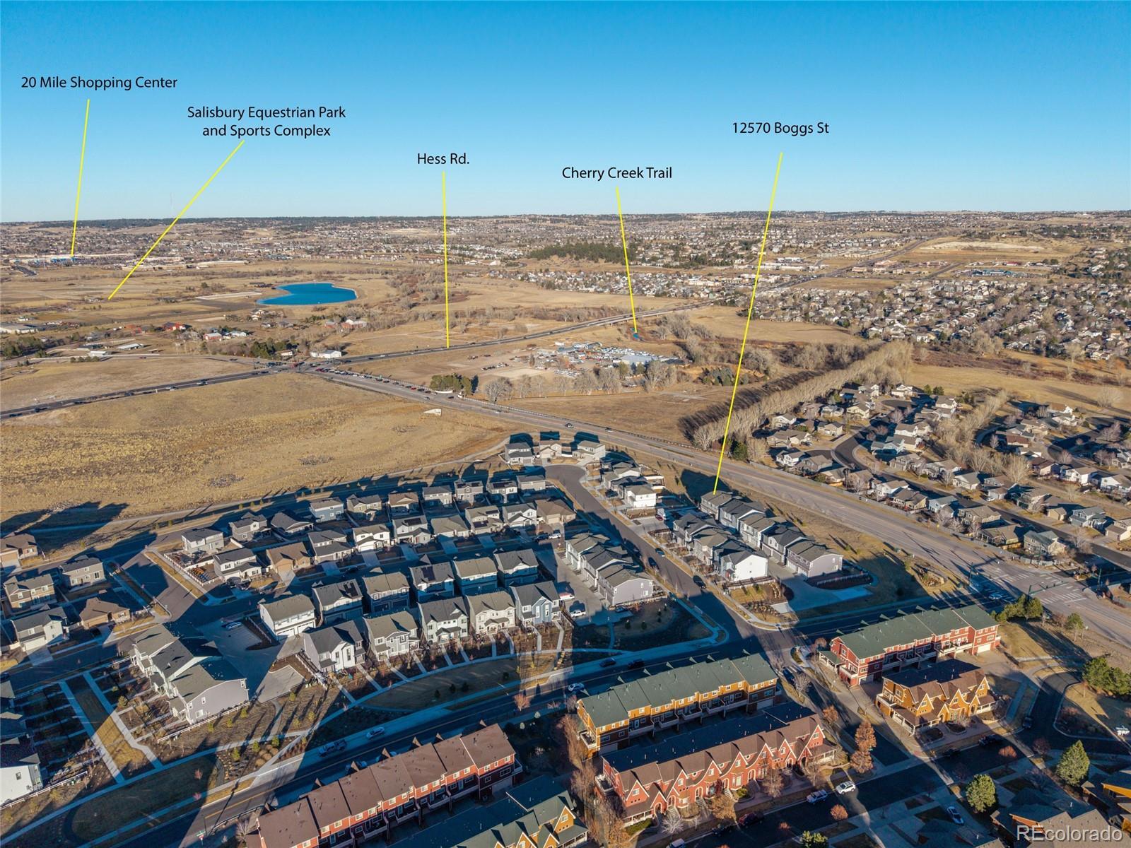*** OPEN HOUSE, Today, Sunday, Feb 1st, 12-3PM **** Welcome to 12570 Boggs St, a beautifully upgraded 3-bedroom, 3-bath townhome in Parker, Colorado, located in the highly desirable Anthology community. Built in 2022, this home offers the feel of new construction without the wait, blending modern finishes, thoughtful upgrades, and a low-maintenance lifestyle ideal for today’s buyers. Enter through the gated front yard and covered front porch into a bright and airy open-concept main level featuring luxury vinyl plank flooring and a functional layout perfect for everyday living and entertaining. The upgraded kitchen is a standout, showcasing quartz countertops, pull-out cabinetry, stainless steel appliances, and a spacious island with seating, offering both style and practicality. Upstairs, the spacious primary suite provides a private retreat with a walk-in closet, en-suite bathroom, and eastern-facing sunrise views. Two additional bedrooms offer flexible options for guests, remote work, or hobbies, while the convenient upstairs laundry adds ease to daily routines. Enjoy outdoor living in the fenced yard, ideal for relaxing or entertaining, along with an attached 2-car garage providing secure parking and additional storage. Residents of Anthology enjoy access to community amenities including a sparkling pool and scenic walking trails, with close proximity to parks, shopping centers, restaurants, coffee shops, and everyday conveniences—all just minutes from home. Stylish, functional, and truly move-in ready, this Parker townhome is a rare opportunity you won’t want to miss.
