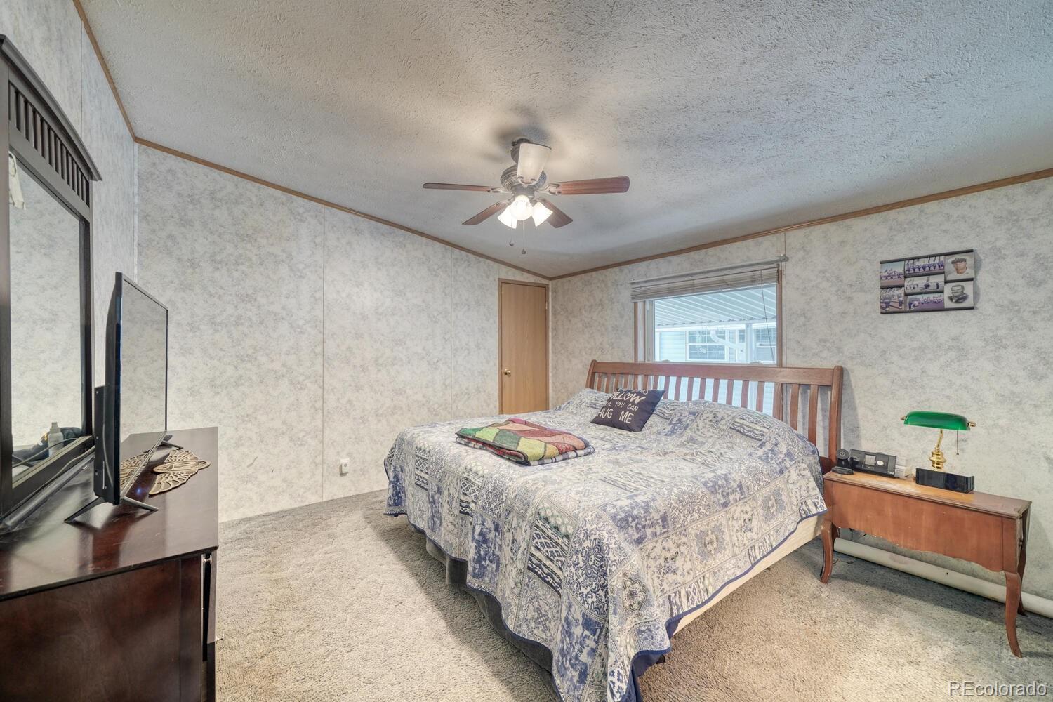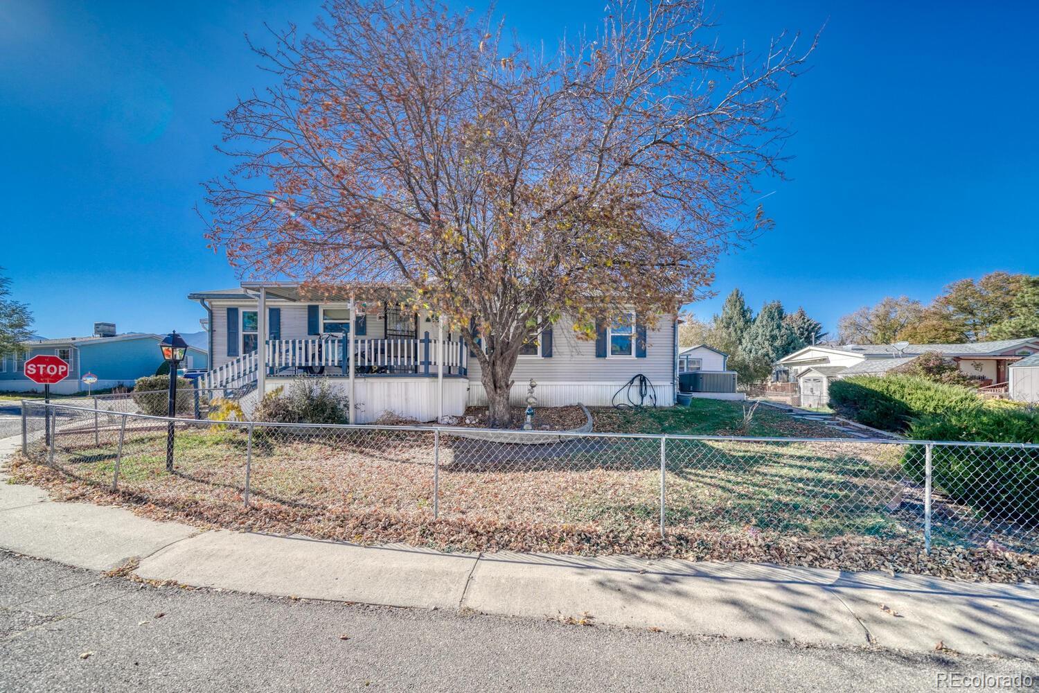 Welcome to your next chapter of easy living in the desirable Holiday Village 55+ community! This beautifully maintained 3-bedroom, 2-bath manufactured home offers 1,344 sq ft of thoughtfully designed space on a coveted corner lot—giving you just the right mix of privacy and curb appeal. Step inside to find modern luxury vinyl plank flooring that flows through the bright and open living areas, while plush carpet adds cozy comfort in the bedrooms. The spacious kitchen and dining area provide plenty of room for entertaining, featuring abundant counter space and cabinetry that make cooking a joy. Your primary suite offers a peaceful retreat, complete with an ensuite bath and generous closet space. The third bedroom opens directly to the backyard, where you’ll find your own personal hot tub—perfect for relaxing after a day of Colorado sunshine. Outside, you’ll love the covered front deck, ideal for morning coffee or evening chats, a covered carport, and a large storage shed for all your tools and treasures. With many recent updates, including a newer central air and furnace unit, and a welcoming community atmosphere, this home delivers comfort, convenience, and charm in one great package. Call today for a private tour of this lovely home and the amenities at Holiday Village, where life feels more like a vacation - every single day.