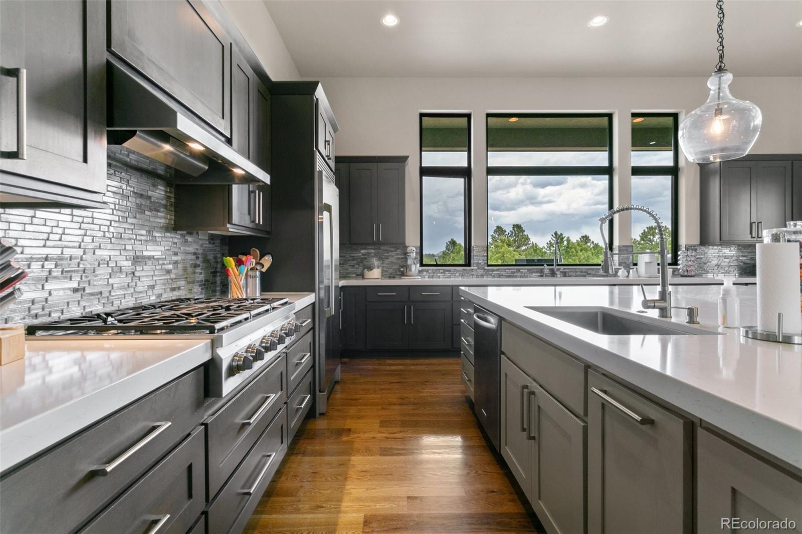 Welcome to this extraordinary custom home in the highly sought-after Tall Pines Ranch community. Nestled on a private 2.62-acre corner lot and surrounded by mature pines and views, this one-of-a-kind residence offers the ideal blend of luxury, comfort, and functionality with 8,416 square feet of thoughtfully designed living space. With 5 spacious bedrooms, 7 bathrooms, and 3 gas fireplaces, this home was built to impress. Soaring ceilings and expansive windows fill the interior with natural light, creating seamless indoor-outdoor flow. The gourmet kitchen is a chef’s dream, featuring a massive center island, high-end appliances, double ovens, a walk-in pantry, and an ideal layout for both entertaining and everyday living. The luxurious primary suite offers spa-like tranquility with a soaking tub, dual vanities, oversized walk-in shower, and private outdoor access. Additional bedrooms are generously sized with wellappointed en-suite bathrooms. A dedicated office above the garage provides a quiet space for remote work, hobbies, or a home studio. The 5-car garage includes 220V power for an RV or electric vehicle, along with ample space for tools, toys, or a workshop. Additional highlights include two 50-gallon hot water heaters, two furnaces, a full alarm system, wiring for a full smart home system, and a basement plumbed for a wet bar, offering both comfort and future customization options. Enjoy Colorado’s beauty year-round from the expansive covered deck, or unwind in the private courtyard surrounded by trees—or simply relax and take in the great views from the back deck. The finished walk-out basement offers versatile space for a media room, home gym, or guest suite, customizable to suit your needs. Located in North Colorado Springs, this home offers easy access to Denver via I-25 or scenic Highway 83 and is close to Monument, Monument Lake, Palmer Lake, shopping, dining, and recreation. This property combines privacy, convenience, and timeless Colorado living.