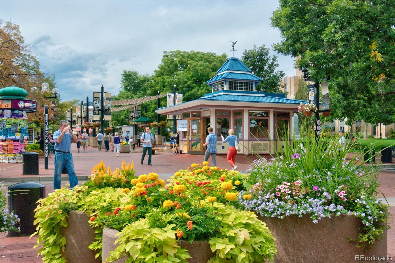 This centrally located top floor, ranch style 1 bed, 1 bath condo has been beautifully refreshed with all new interior paint, brand new carpeting, stylish LVT flooring. The open-concept living and dining areas create a spacious, welcoming atmosphere perfect for relaxing or entertaining. Step outside to your lovely covered balcony with peek-a-boo mountain views -- ideal for relaxing. You'll love the unbeatable location, just minutes from the University of Colorado, Pearl Street and the 29th Street Mall. And easy walk to endless dining, shopping and recreation options. Amenities include a secure building, elevator, pool, hot tub, sauna, storage locker, trash/water/sewer, plus hot water, heating and cooling included in HOA fee. Above it all, this 4th floor unit has easy elevator access and no upstairs neighbors. Whether you're looking for a first home, student rental, a lock-and-leave lifestyle, or an investment property, this move-in-ready condo offers exceptional value in a prime location.