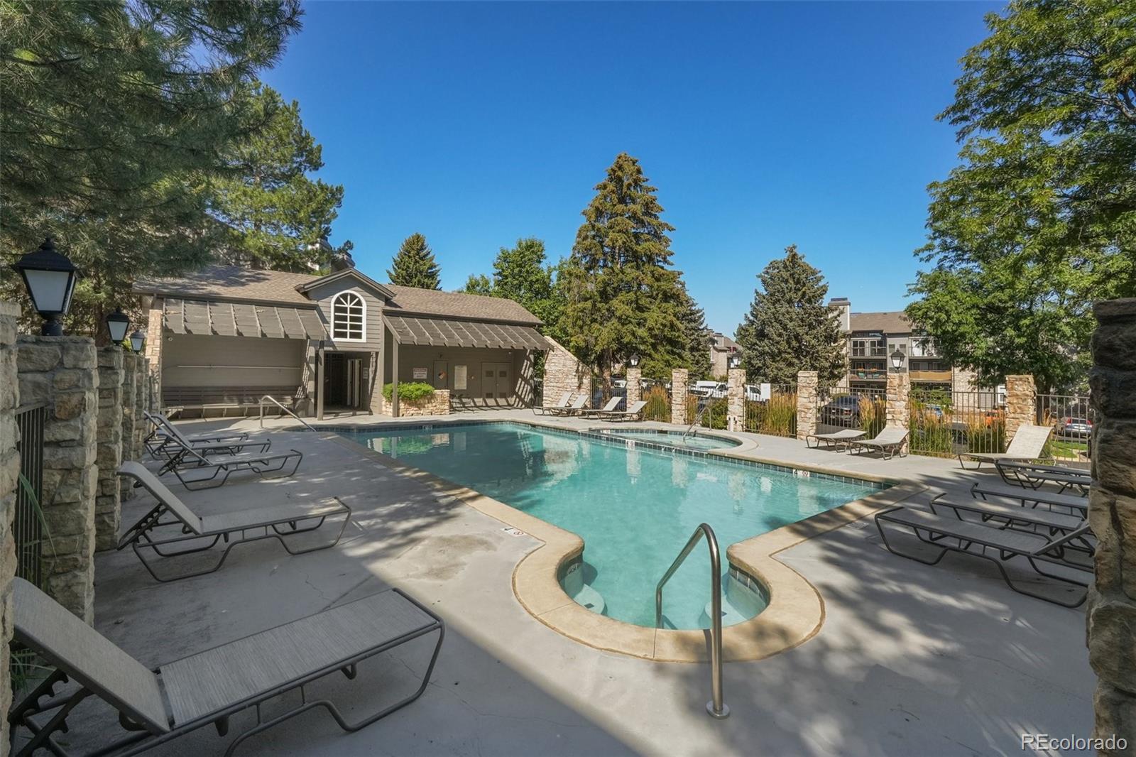 Great location in Cherry Creek School District! This 2 bedroom, 2 bathroom condo is filled with natural light. This spacious unit features an open floorplan and has central A/C. Loads of light pours in from the large windows with high ceilings. The living room boasts a cozy, warm gas fireplace with tile accents and a covered balcony is just through the sliding glass door, awaiting your bistro set and potted plants! The dining area is the perfect spot to entertain friends or get your work done for the day. The primary suite offers ample space and a generous walk-in closet! The primary bathroom features a large soaking tub and dual-sinks. Continue through to find a second bedroom with bright windows overlooking the balcony with its own bathroom just across the hall! Loads of storage in this home between the closets and the exterior storage off the balcony. The home offers a private laundry room as well which doubles as the utility room. The living room opens to the kitchen and covered balcony. Full size washer and dryer included in the unit, as well as 2 ample storage areas (one with the laundry, one on the balcony big enough for bikes and other toys). Enjoy low-maintenance living, community pool, water, snow removal, exterior maintenance all included by the low HOA fee. Just minutes to grocery stores, coffee shops, restaurants, choice retail, and an easy commute to I-25, I-225, DTC, and Downtown Denver. This home qualifies for the community reinvestment act providing 1.75% of the loan amount with a cap of $7,000 as a credit towards buyer’s closing costs, pre-paids and discount points. Contact listing agent for more details.