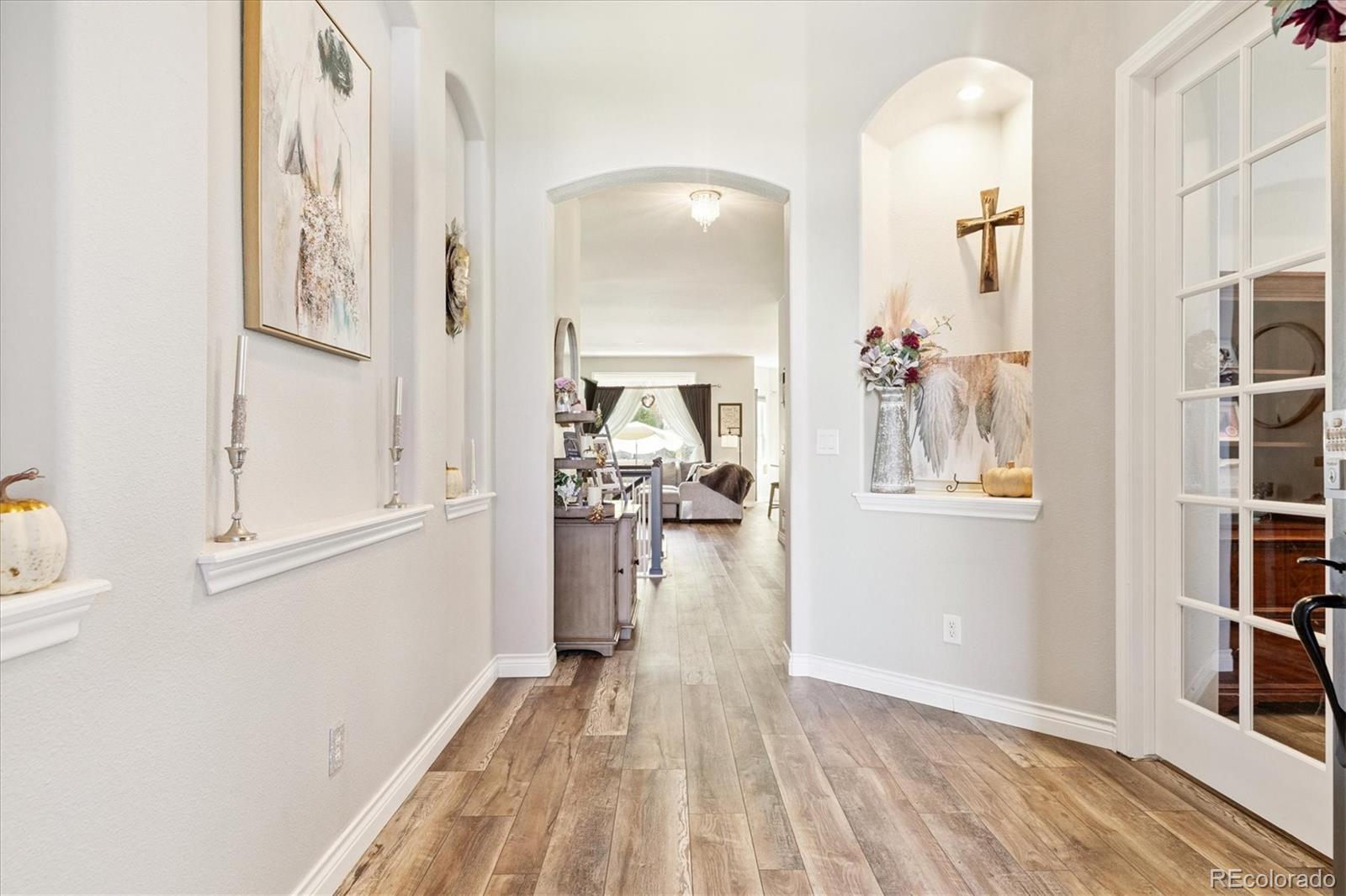 Main Floor living at its best! 4 bed 3 bath Ranch Semi-custom home located in the desirable Lincoln Creek Village subdivision. This light and bright spacious ranch boasts tall ceilings, an open layout ideal for entertaining and has been updated throughout. Entertain your guests in the spacious, gourmet kitchen with an oversized center island, newer stainless appliances, double ovens, freshly refinished cabinetry new counter tops and walk-in pantry. There is also a butler’s pantry that connects to a formal dining area, perfect for dinner parties for your formal dining get togethers. At the end of the day, you can relax in your main floor primary suite, complete with a HUGE en suite 5 piece bath with walk-in closet. Other main floor features are a secondary bedroom, home office, laundry and an additional full bathroom. Want more livable square footage? Go down to the finished basement that includes a huge family room, wet bar and 2 additional bedrooms and a Large storage area. Step outside and take in those fine Colorado days and nights in your newly professional, zero-scaped fully private backyard with drip lines throughout for no maintenance, and a new fresh poured concrete patio. Updates include a class 4 roof(2022), new luxury vinyl plank flooring throughout, new lighting, quartz countertops and paint. The low HOA covers snow removal and front yard care in addition to a neighborhood park with playground thats a 2 minute walk away. Conveniently located with quick access to Lincoln Avenue, Parker Road, E-470 and minutes from the highly rated Douglas county schools, shopping, dining, parks, trails and restaurants. Book your showings today!