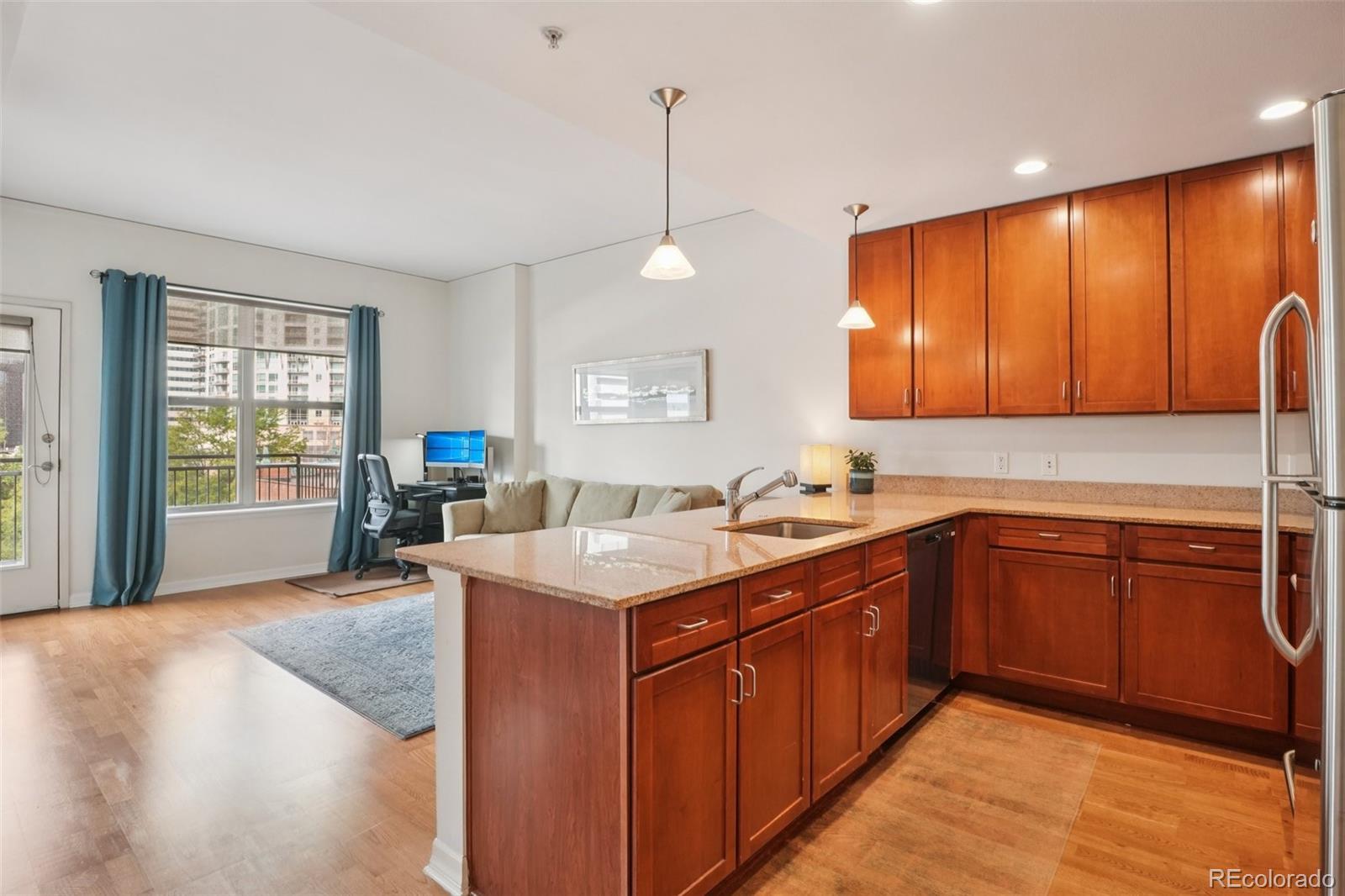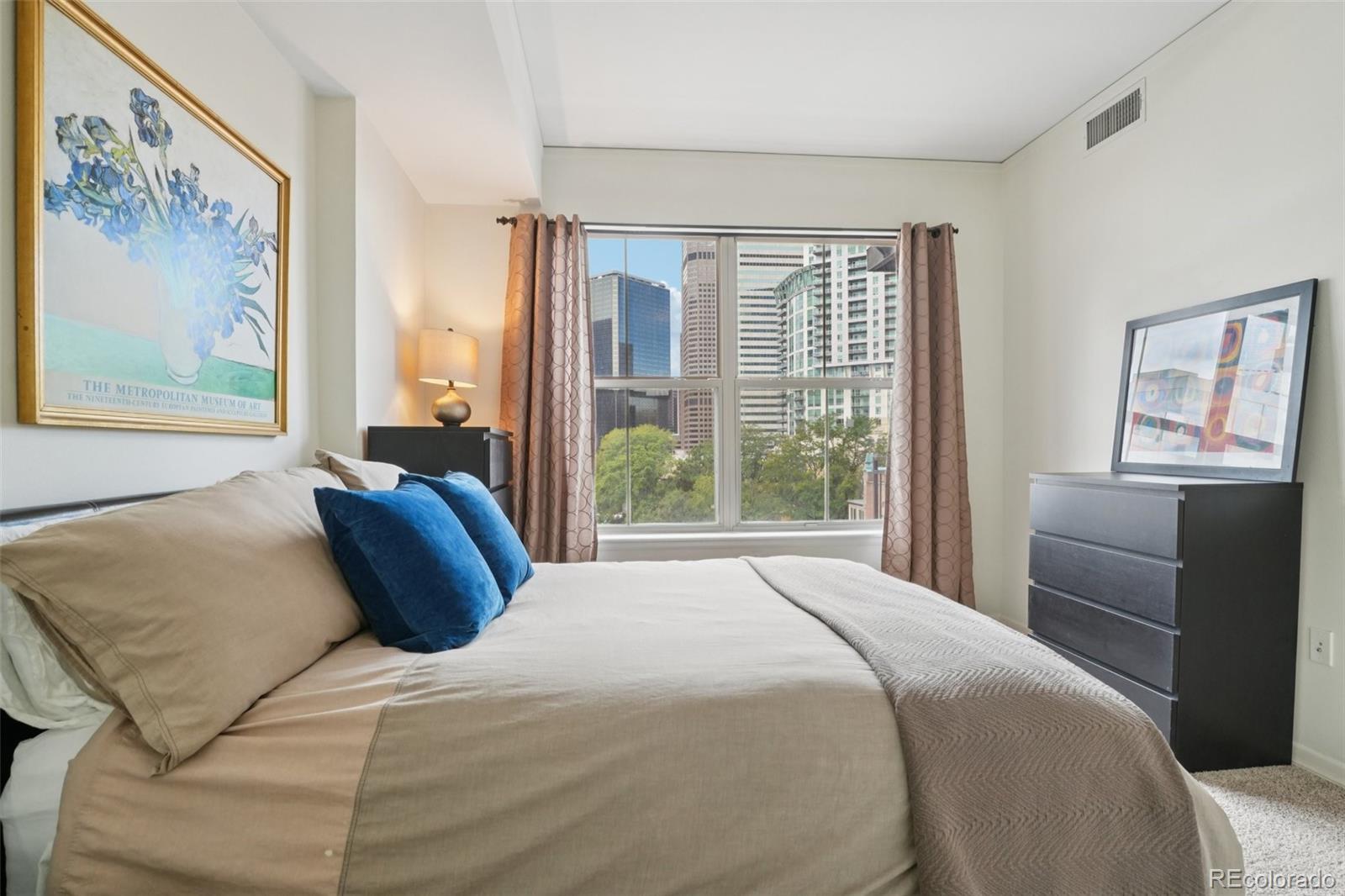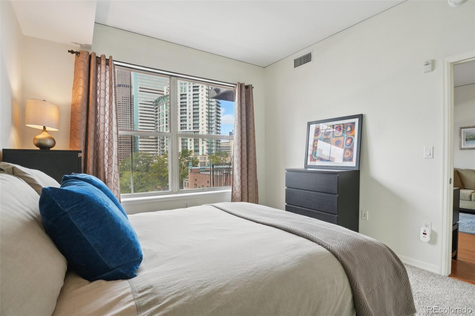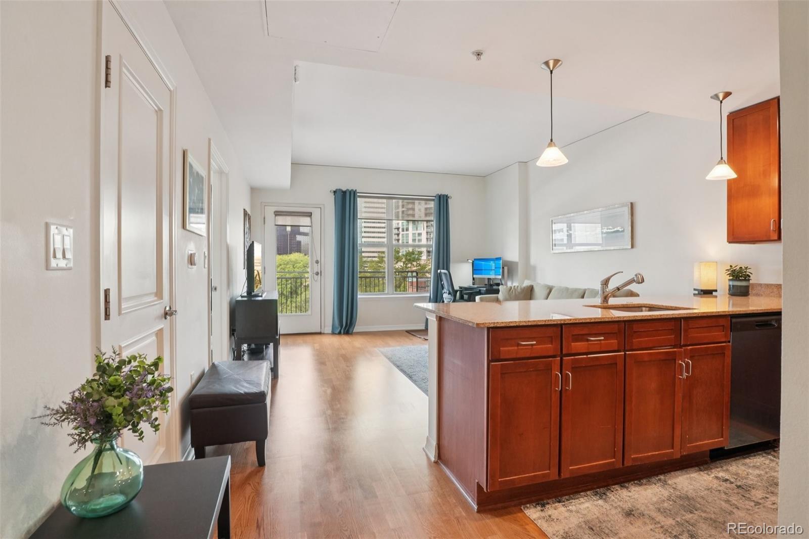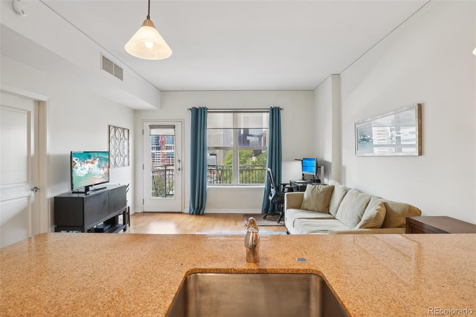 Urban Living with Unbeatable Views in Uptown Denver! Welcome to 1975 N Grant Street #515 — a beautifully appointed 5th-floor condominium in the heart of Uptown/North Capitol Hill. This 1-bedroom, 1 1/2-bath residence combines modern comfort with an incredible downtown backdrop, offering a lifestyle that’s as vibrant as its location. The main lobby of the building has been recently renovated along with all common areas, hallways, and elevators featuring new paint, carpet, and lighting, along with the addition of Parcel Pending lockers for the security of your deliveries. Step inside and enjoy the open layout with high ceilings, granite counters, ceiling-height kitchen cabinetry, and central A/C. The kitchen features stainless steel appliances, including a gas range stovetop, and a brand new dishwasher and disposal. An in-suite washer and dryer adds everyday convenience, while the spacious balcony is perfect for relaxing and soaking in Denver’s cityscape. The primary bathroom includes dual vanity sinks, offering both style and functionality. This home also includes rare conveniences for Uptown living: secure deeded garage parking, an additional storage unit, and access to building amenities including a gym, business center, and outstanding security with three locked points of entry. The monthly HOA fee covers gas, water, trash and recycling, simplifying your bills. Just outside your door, Benedict Fountain Park awaits, while dozens of popular Uptown and North Capitol Hill restaurants, coffee shops, and bars are only steps away. Don’t miss your chance to own a home that blends urban convenience, modern finishes, and secure amenities — all in one of Denver’s most walk-able neighborhoods.