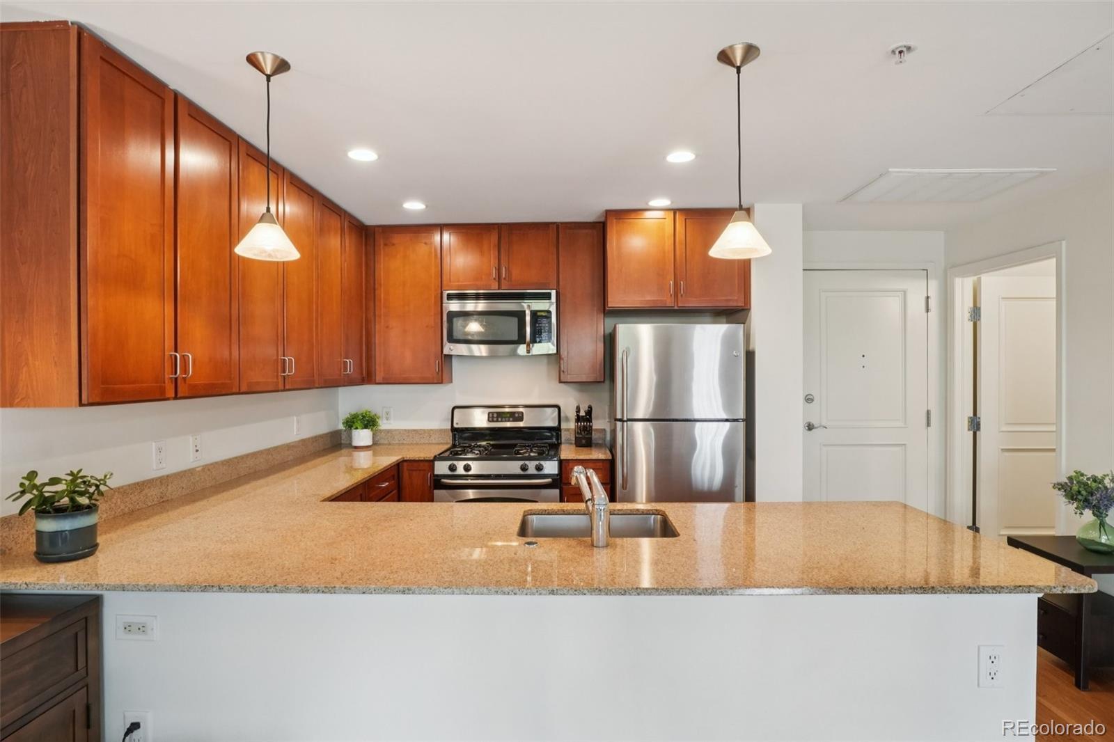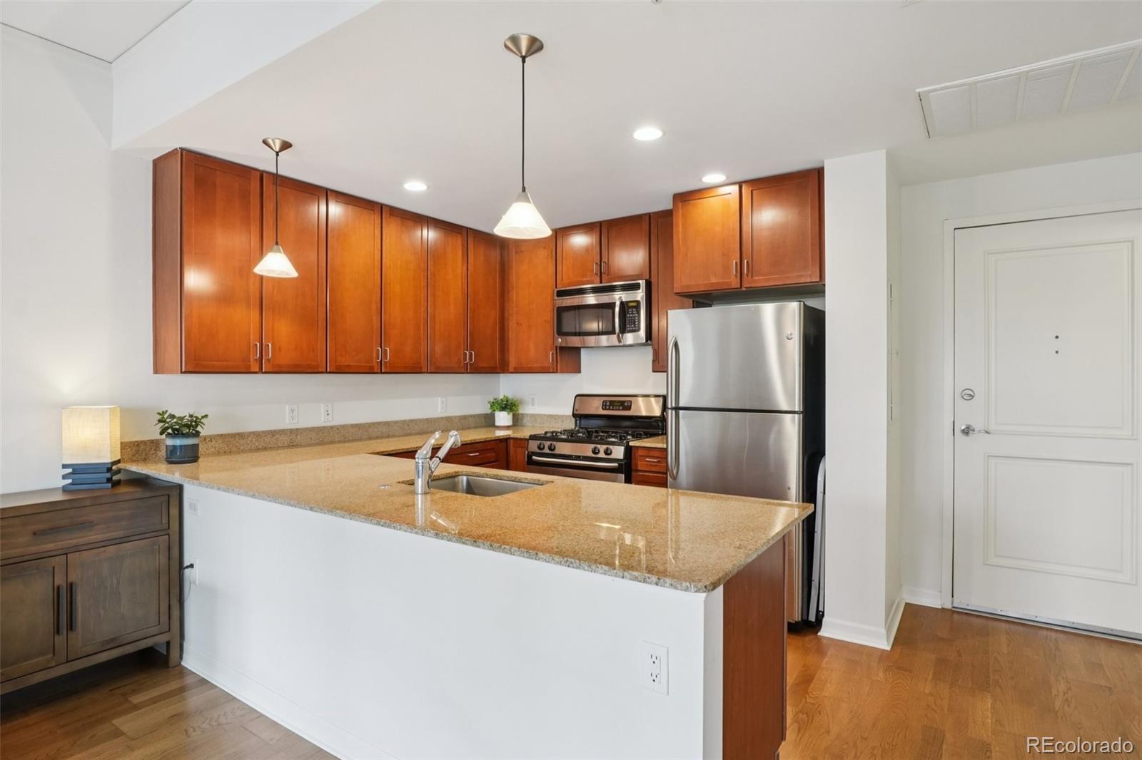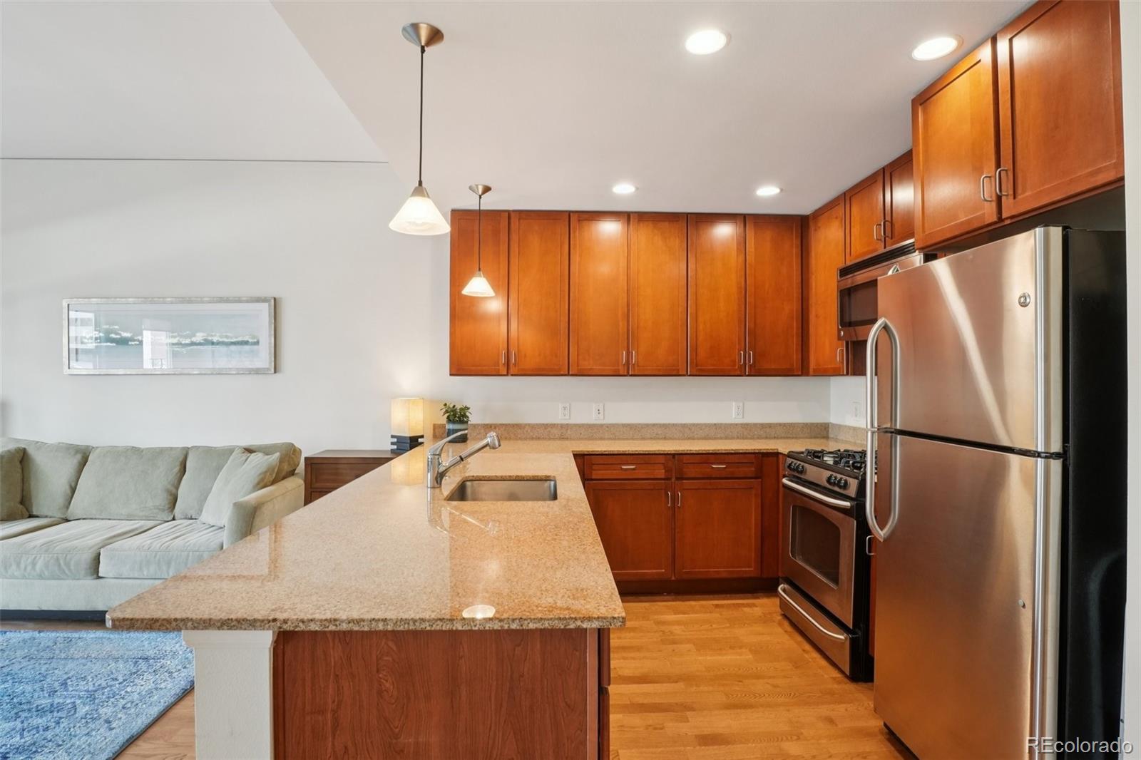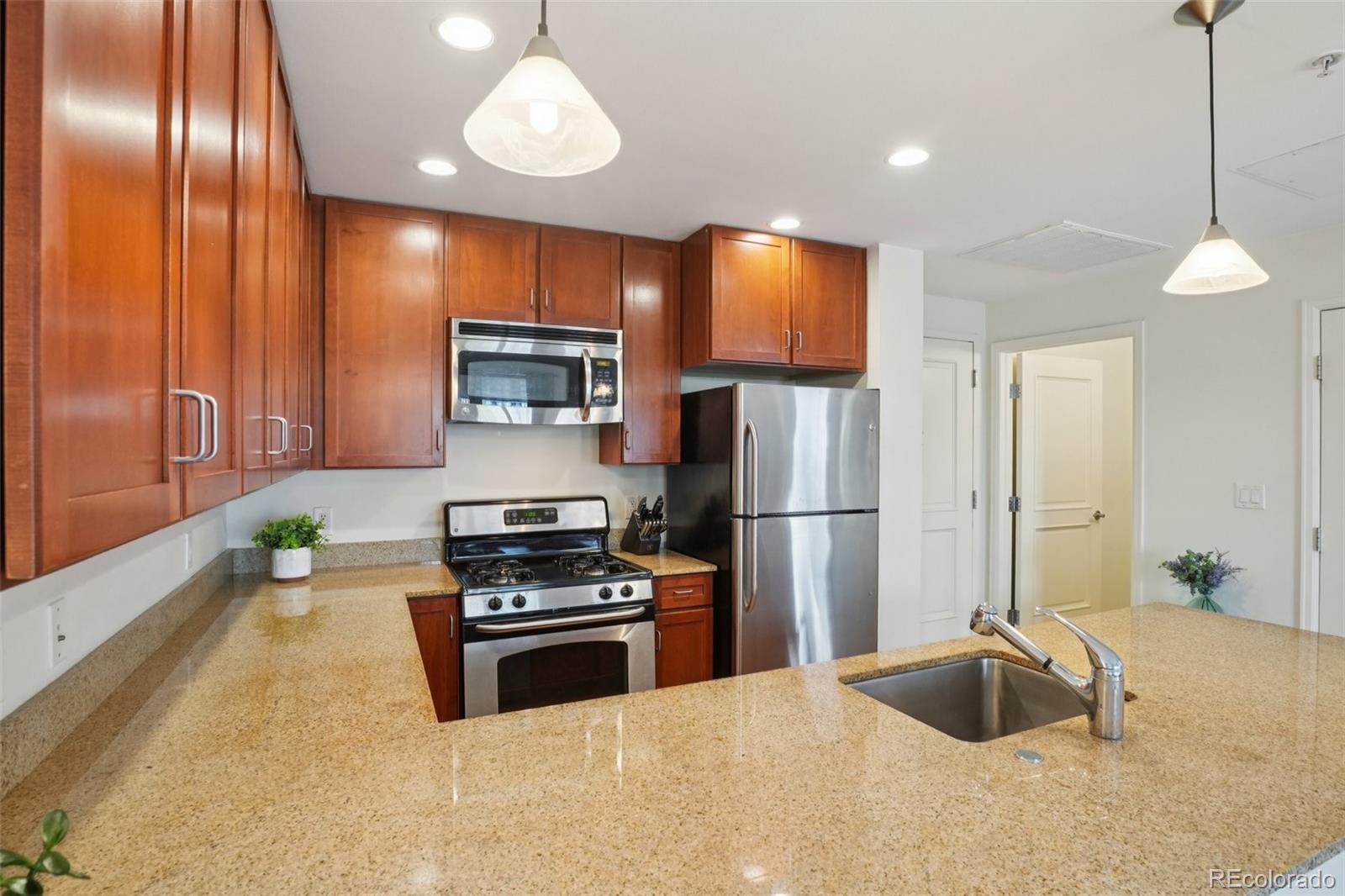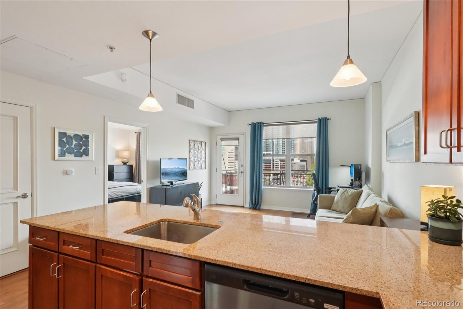 Urban Living with Unbeatable Views in Uptown Denver! Welcome to 1975 N Grant Street #515 — a beautifully appointed 5th-floor condominium in the heart of Uptown/North Capitol Hill. This 1-bedroom, 1 1/2-bath residence combines modern comfort with an incredible downtown backdrop, offering a lifestyle that’s as vibrant as its location. The main lobby of the building has been recently renovated along with all common areas, hallways, and elevators featuring new paint, carpet, and lighting, along with the addition of Parcel Pending lockers for the security of your deliveries. Step inside and enjoy the open layout with high ceilings, granite counters, ceiling-height kitchen cabinetry, and central A/C. The kitchen features stainless steel appliances, including a gas range stovetop, and a brand new dishwasher and disposal. An in-suite washer and dryer adds everyday convenience, while the spacious balcony is perfect for relaxing and soaking in Denver’s cityscape. The primary bathroom includes dual vanity sinks, offering both style and functionality. This home also includes rare conveniences for Uptown living: secure deeded garage parking, an additional storage unit, and access to building amenities including a gym, business center, and outstanding security with three locked points of entry. The monthly HOA fee covers gas, water, trash and recycling, simplifying your bills. Just outside your door, Benedict Fountain Park awaits, while dozens of popular Uptown and North Capitol Hill restaurants, coffee shops, and bars are only steps away. Don’t miss your chance to own a home that blends urban convenience, modern finishes, and secure amenities — all in one of Denver’s most walk-able neighborhoods.