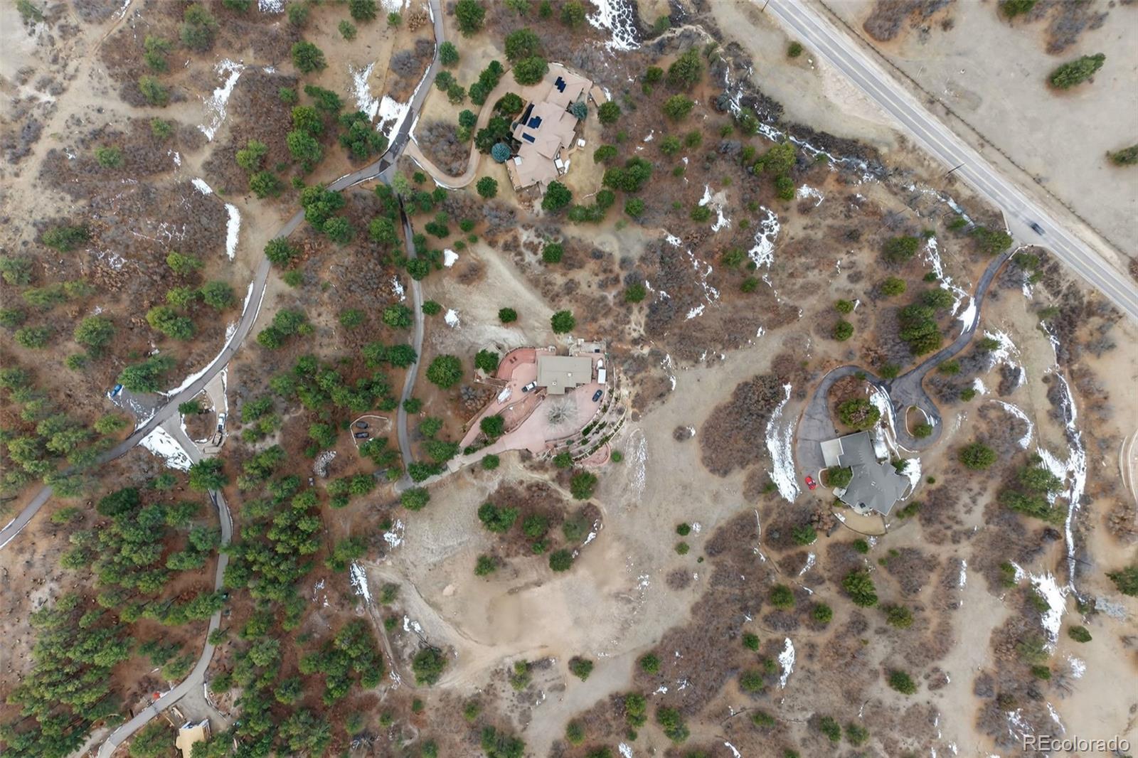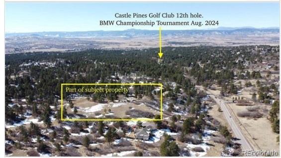 A rare and remarkable offering in the prestigious Castle Pines/Happy Canyon corridor. Huge plus, this is not a part of the Castle Pines HOA, so an ADU can be built! This 5.37-acre estate property presents a once-in-a-lifetime opportunity to build your legacy. Surrounded by over 100 acres of protected open space and mature ponderosa pines, the setting is both breathtaking and private, offering unobstructed Front Range views and an unmatched sense of serenity. No HOA, lower taxes, and the ability to walk to the PGA events at the golf courses golf course at Castle Pines elevate its appeal even further. This site allows for two homes, your forever home and guest home. Unlike most lots this one has gentle slopes giving you options on where you'd like to build your forever home/ guest home/ collector garage/ equestrian barn (a total of three building structures are allowed on the property). Including a 360 degree view at the top of the property! This is the final 5+ acre parcel available in this coveted enclave, an extraordinary chance to create something truly exceptional. Over $1M in site improvements already completed. Wildlife, views, and absolute privacy just minutes to I-25, shopping, dining, and top-tier schools. The property includes a beautifully updated 2-bedroom, 1.5-bath guest house featuring an oversized garage, expansive wrap around deck, paved drive, and elevated finishes throughout. With a private well, septic system, and natural gas already in place, the home is fully functional as-is while you design and build your forever estate.