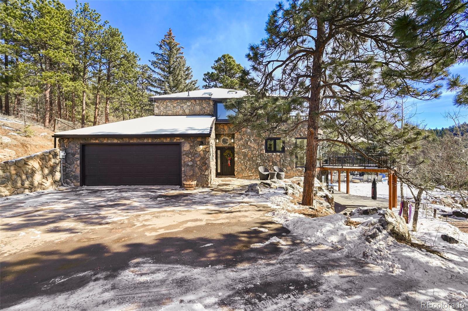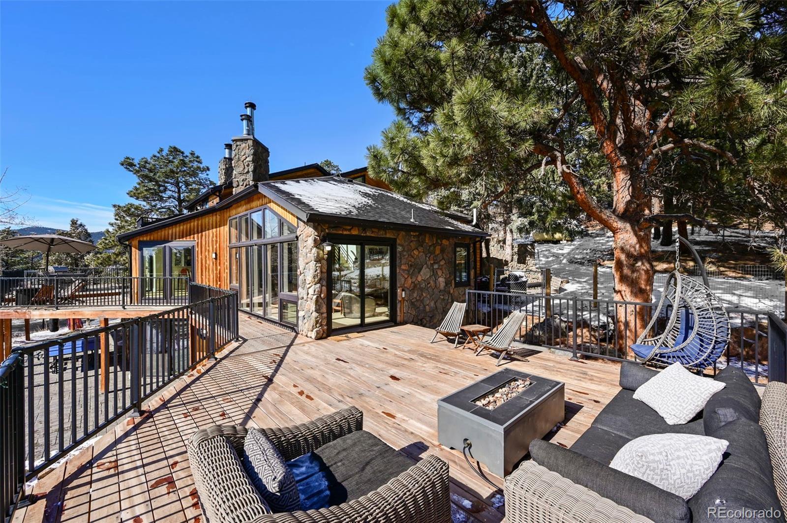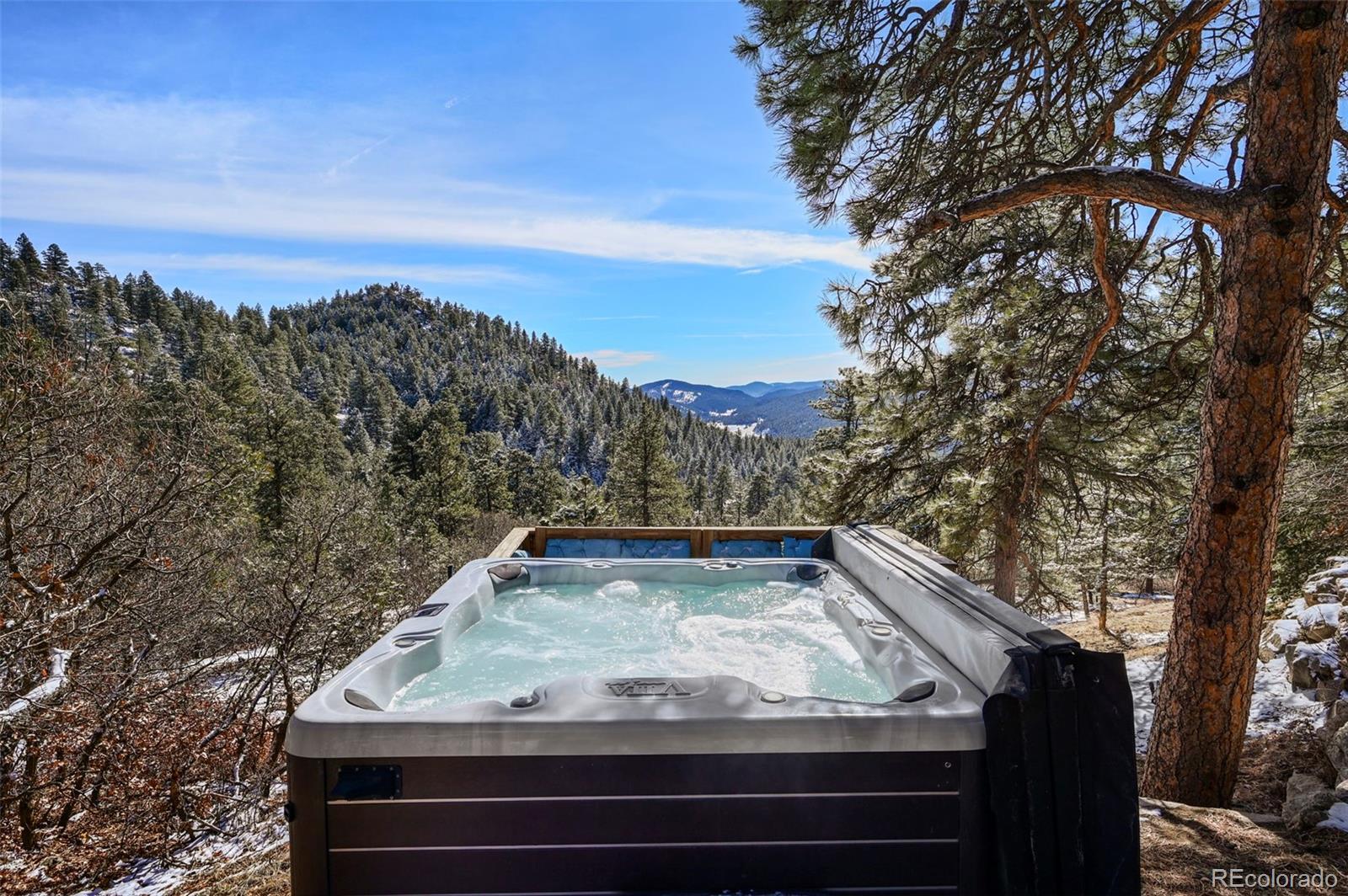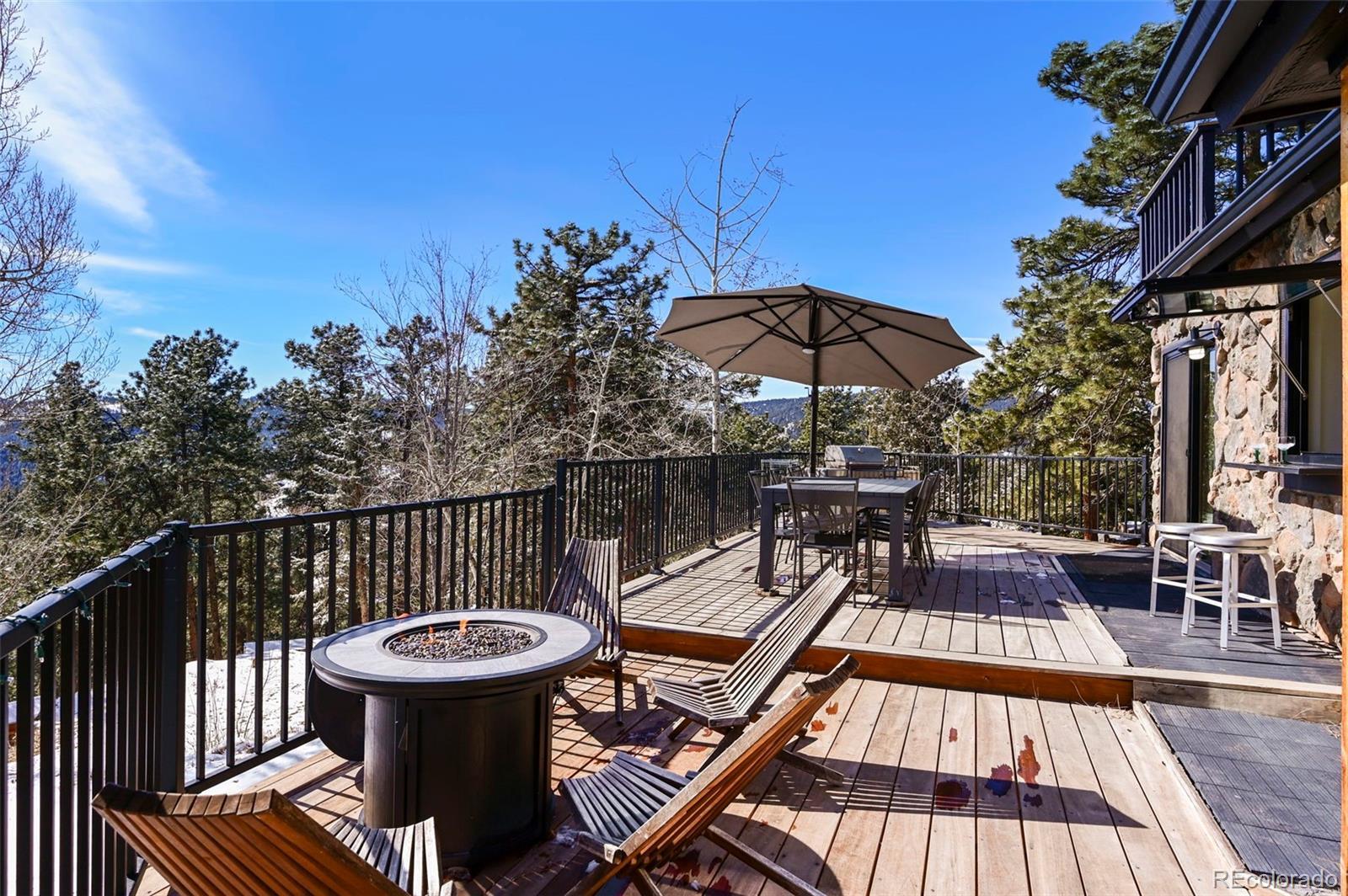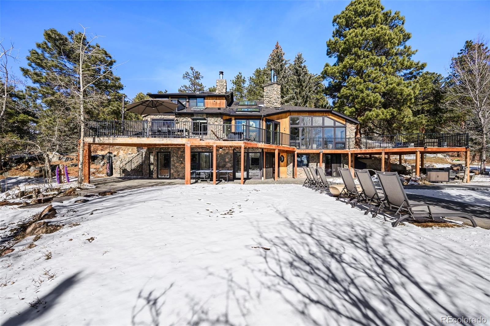 Nestled amidst the serene landscapes of Indian Hills, Colorado, this luxurious 5-bedroom, 4-bathroom estate offers an unparalleled blend of elegance and natural beauty. Spanning 4,322 square feet, this mountain contemporary home is situated on a sprawling 10-acre lot, providing both privacy and breathtaking mountain views. This home has been updated with new flooring, new Anderson windows, new skylights, new roof, new gutters, new pool cover & equipment, new tigerwood decking, and extensive new exterior concrete. Spacious Living Areas: The open floor plan boasts vaulted ceilings, a gourmet kitchen with granite countertops, and multiple fireplaces, including in the family room, great room, and master bedroom. Outdoor Oasis: Enjoy the expansive wrap-around deck, perfect for entertaining or soaking in the tranquil surroundings. The property also features an outdoor pool and private spa/hot tub for ultimate relaxation. There is even a sports court for you to practice your hoops. Modern Amenities: Equipped with central air conditioning, forced air heating powered by propane - ensuring comfort and peace of mind year-round. The kitchen has been updated with commercial appliances and two dishwashers. Prime Location: This estate offers easy access to nearby amenities while providing a secluded retreat. The property is bordered by Mount Falcon Park, enhancing its exclusivity and natural charm. Priced to sell, this exceptional property embodies luxury mountain living. Don't miss the opportunity to own this exquisite retreat in Indian Hills, Colorado. Here is where you can find a video of this stunning home: https://www.youtube.com/watch?v=RXYucIOxpSY