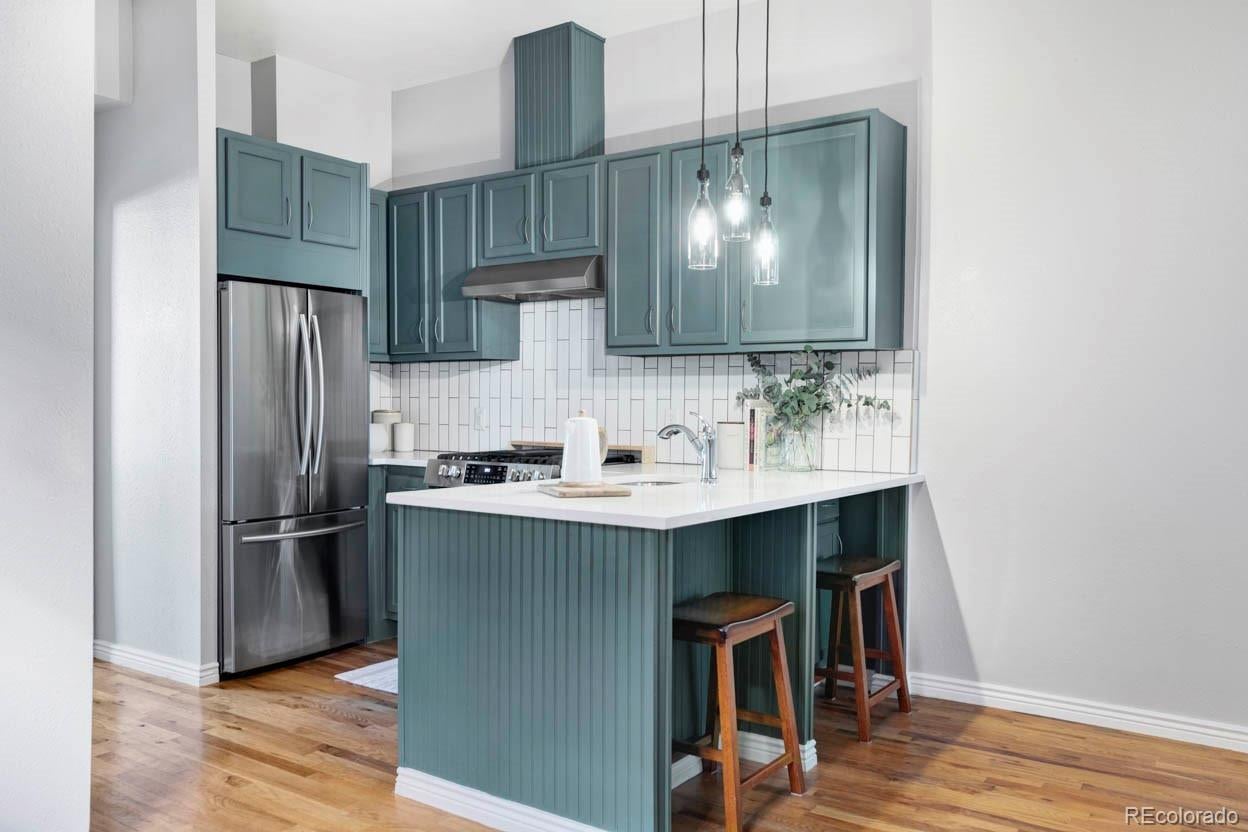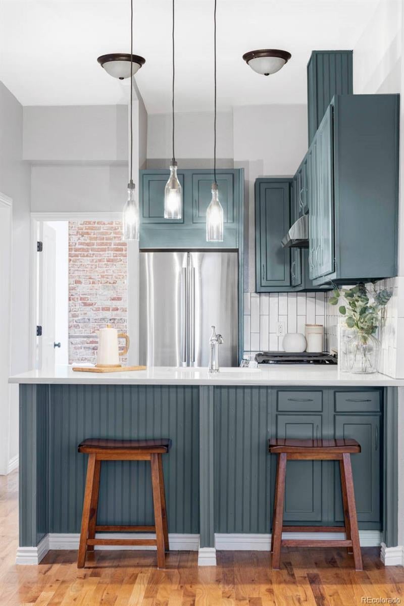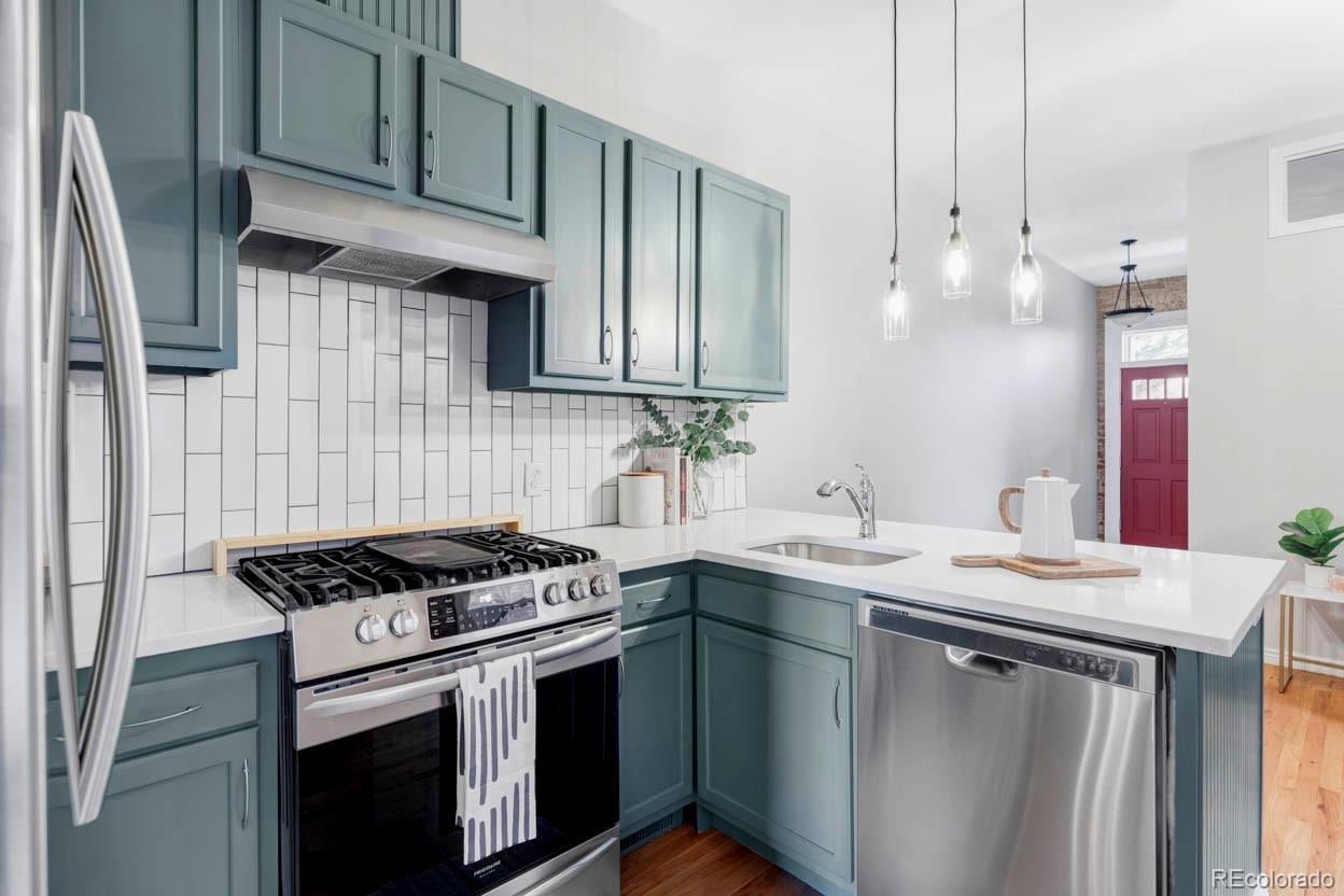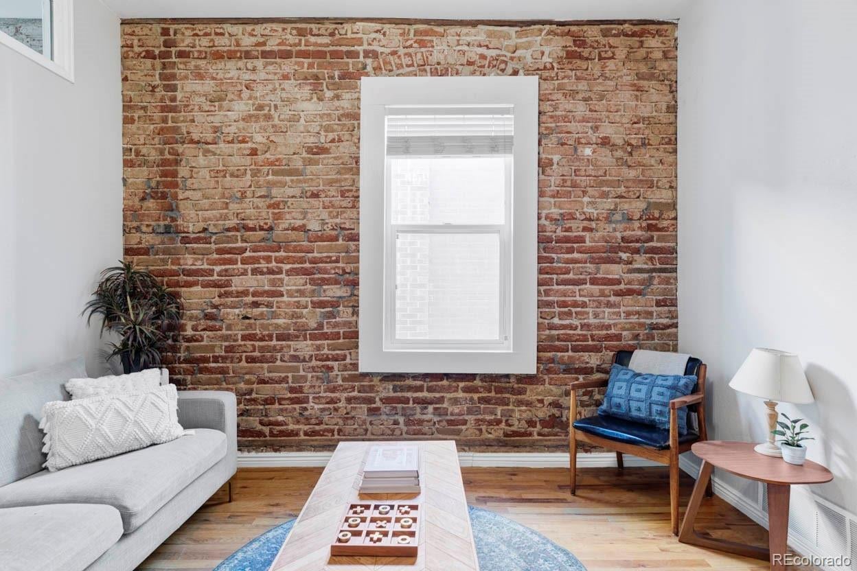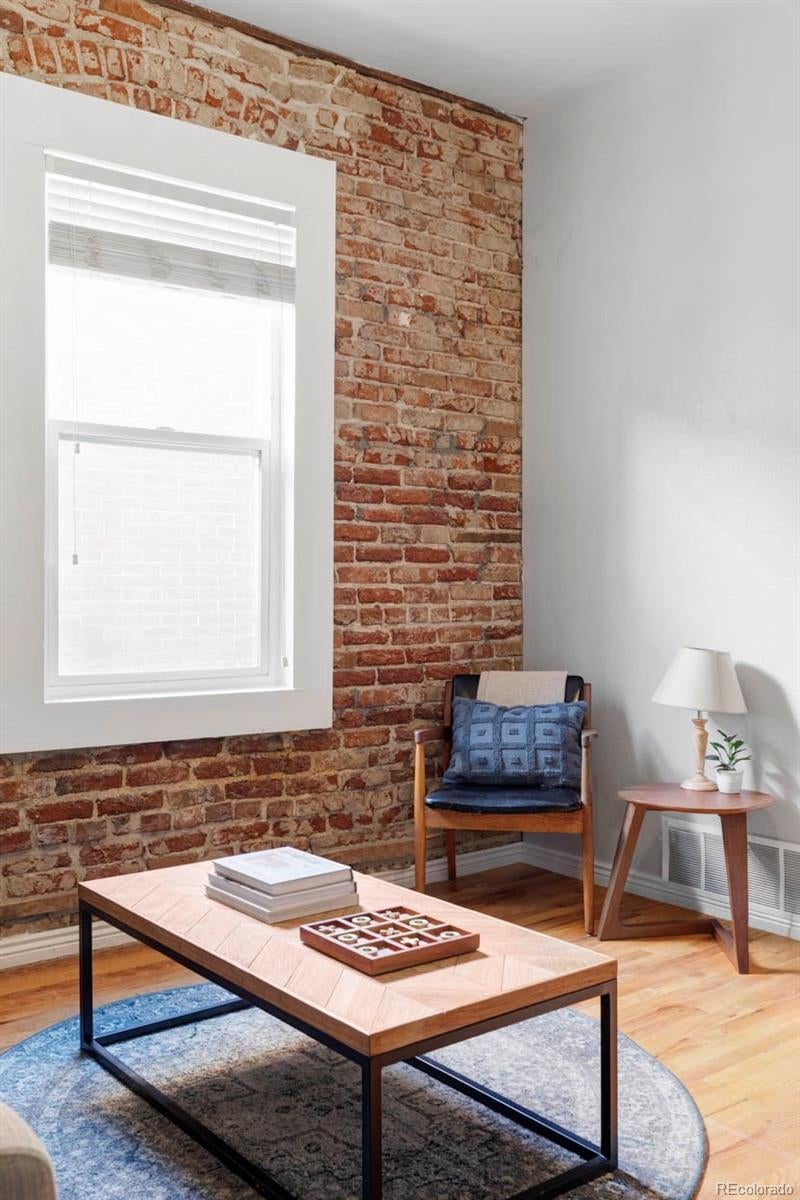 Featuring an inviting blend of historic character and modern livability, this West Colfax duplex offers move-in-ready comfort in a vibrant, connected location. High ceilings and hardwood floors set an airy, refined ambiance throughout, complemented by moments of exposed brick that infuse the home with timeless charm. The large, updated kitchen impresses with sleek modern finishes, stainless steel appliances and abundant workspace for cooking and gathering, while two generously sized bedrooms provide a quiet retreat. Thoughtfully designed outdoor living enhances everyday enjoyment with a fully fenced backyard, a covered patio, turf lawn and multiple garden beds — a rare urban sanctuary. A versatile back room supplies excellent storage, and two off-street parking spaces add coveted convenience. Perfectly positioned near local businesses, dining, parks and effortless public transit access, this welcoming residence delivers the best of West Colfax living — style, function and an exceptional location.