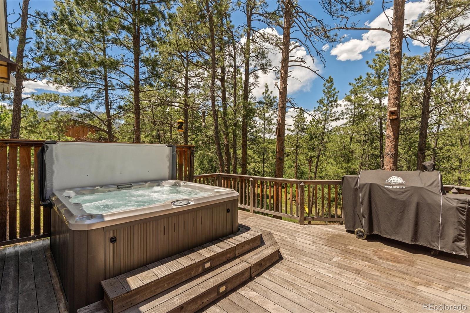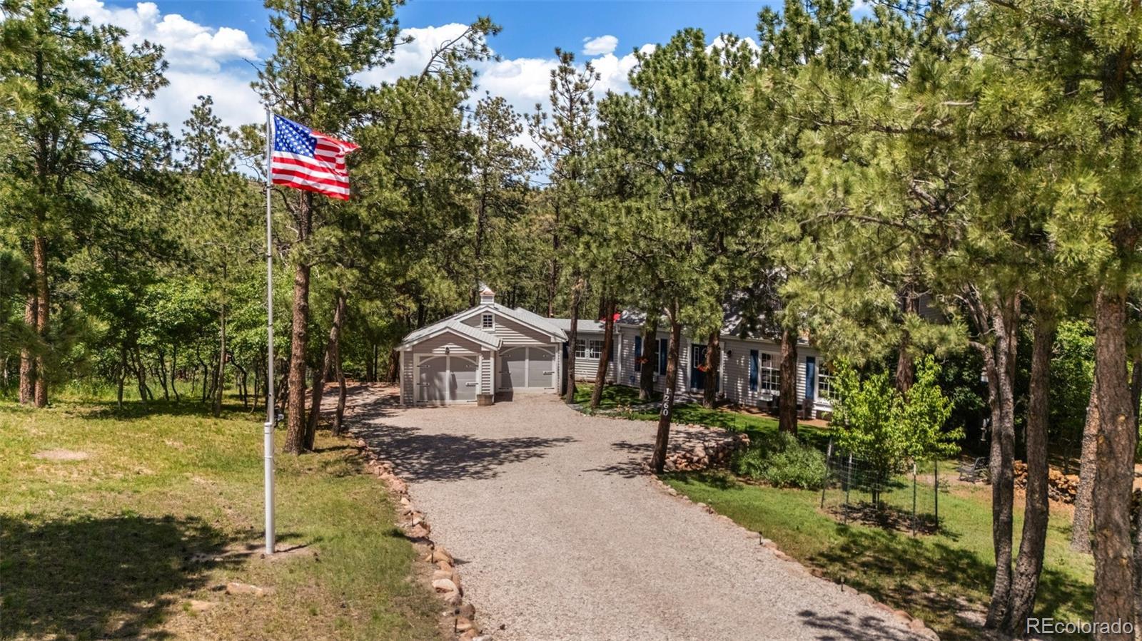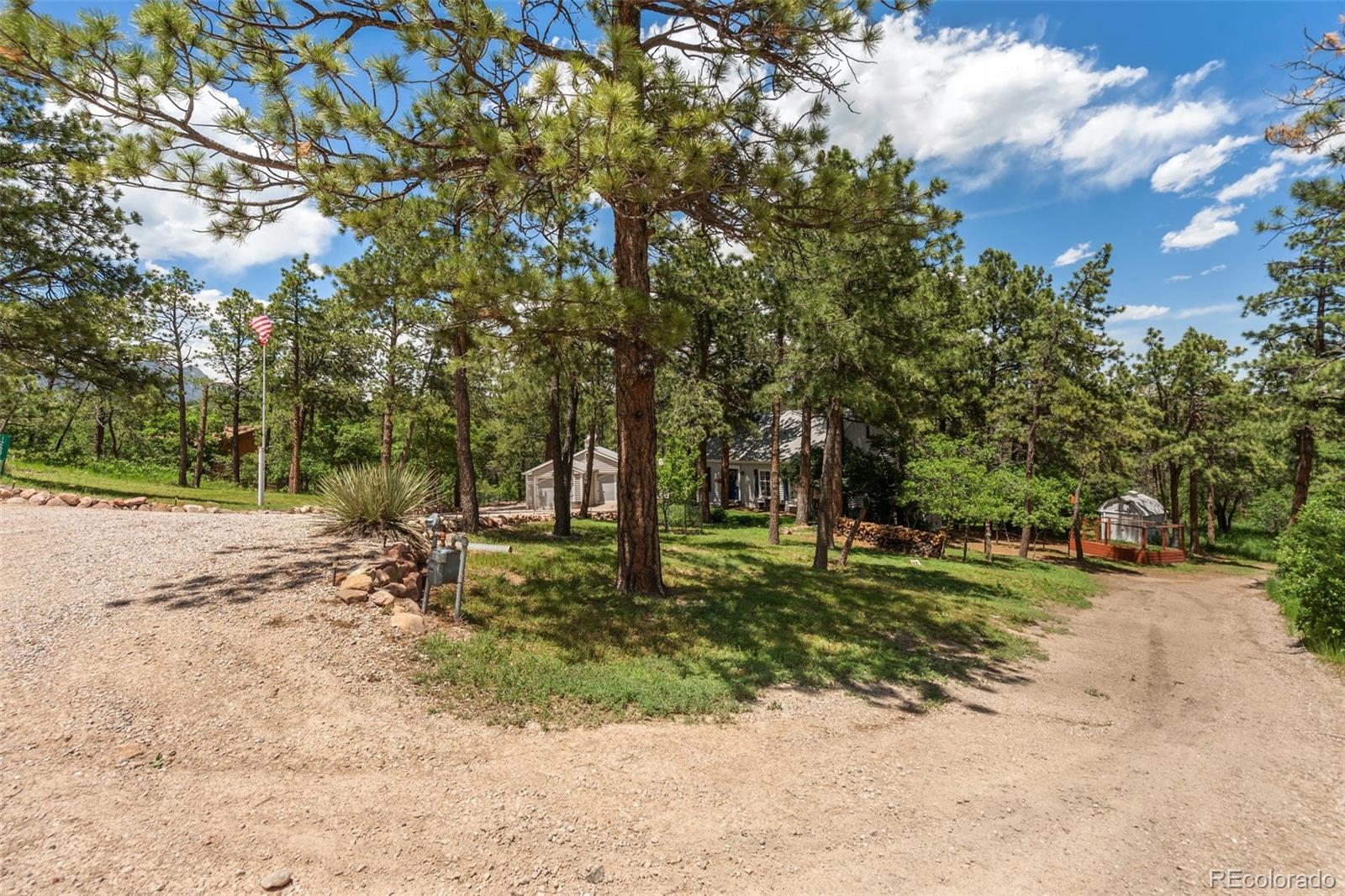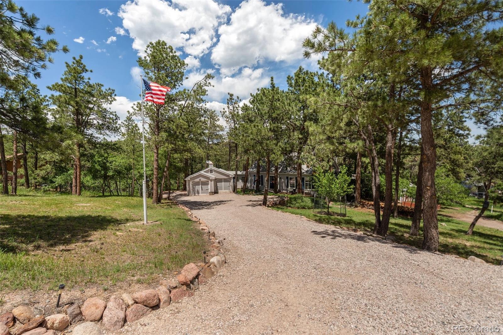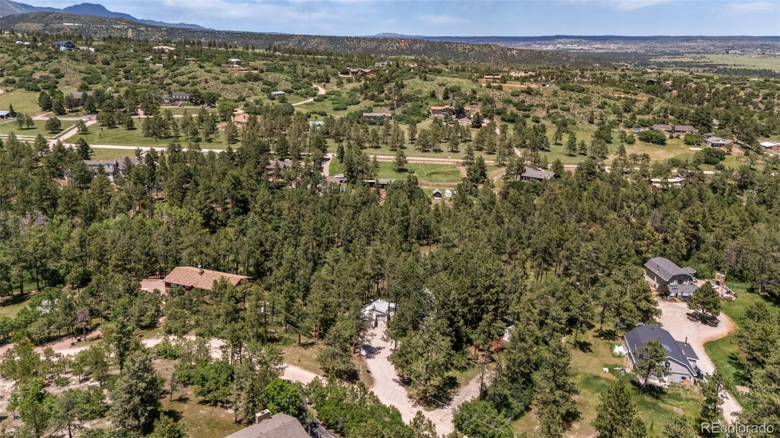 This gorgeous New England cottage-style home is not only beautiful but built on a gorgeous lot and close to I-25 and Woodmen, making access to any part of the city a breeze. This property is super unique being so close to the city and yet a peaceful world away and zoned for horses and no HOA! Woodmen Valley also has dirt roads that are perfect for horseback riding, mountain biking and peaceful walks in the country. This home is on the west side of town and offers easy access to hiking trails and quick access to Highway 24 if you want to get away to the mountains. The home itself is warm and cozy! The kitchen has an eat-in banquette dining table that gives you the impression of eating in a tree house as it is flanked by windows overlooking the sloping meadow and surrounded by majestic pines. The kitchen is directly adjacent to a more formal dining room and both have access to the very large and beautiful Brazilian hardwood deck, complete with luxurious hot tub. This makes an amazing place to entertain family and friends or just relax and enjoy the views of the mountains and the nature that surrounds the whole property. The living room on the main level boasts a wood burning fireplace that is bordered by custom built-in bookcases and topped with a wood mantel and custom wood beams on the ceiling complete the space. There is a bedroom and remodeled full bathroom on the main level and three bedrooms upstairs share a remodeled full bathroom. The walkout basement is the perfect space to gather in front of the second wood burning fireplace. Another bonus room in the basement can become the perfect craft room or office space with more built in bookcases and cabinets. The basement also offers a laundry room and an additional storage space. While outside, enjoy manicured lawns in front and back and easy access to two storage sheds for any tools and toys. This home is the epitome of Colorado country living while maintaining convenient access to the city.
