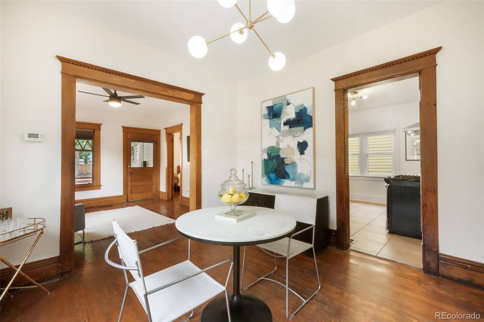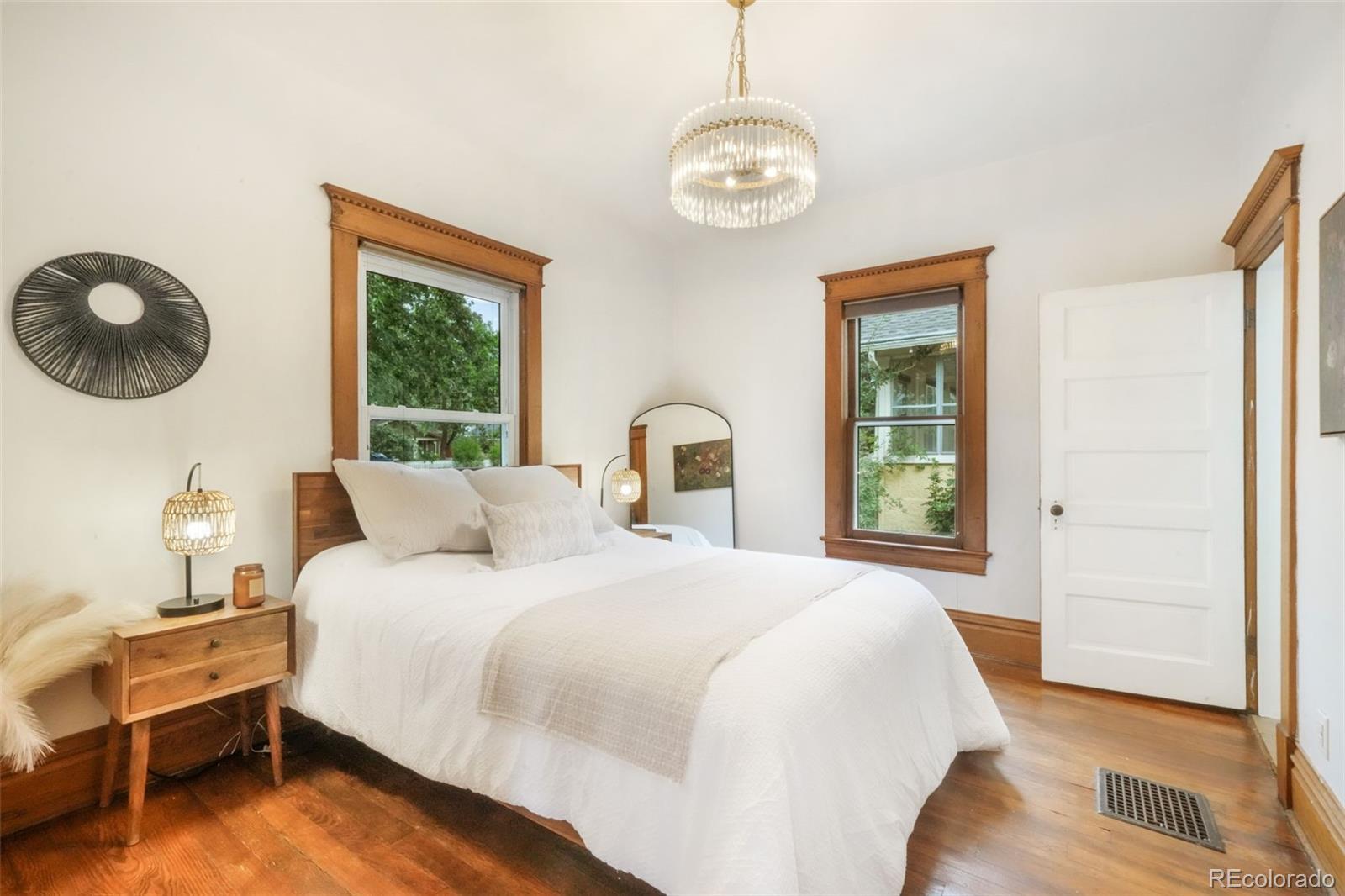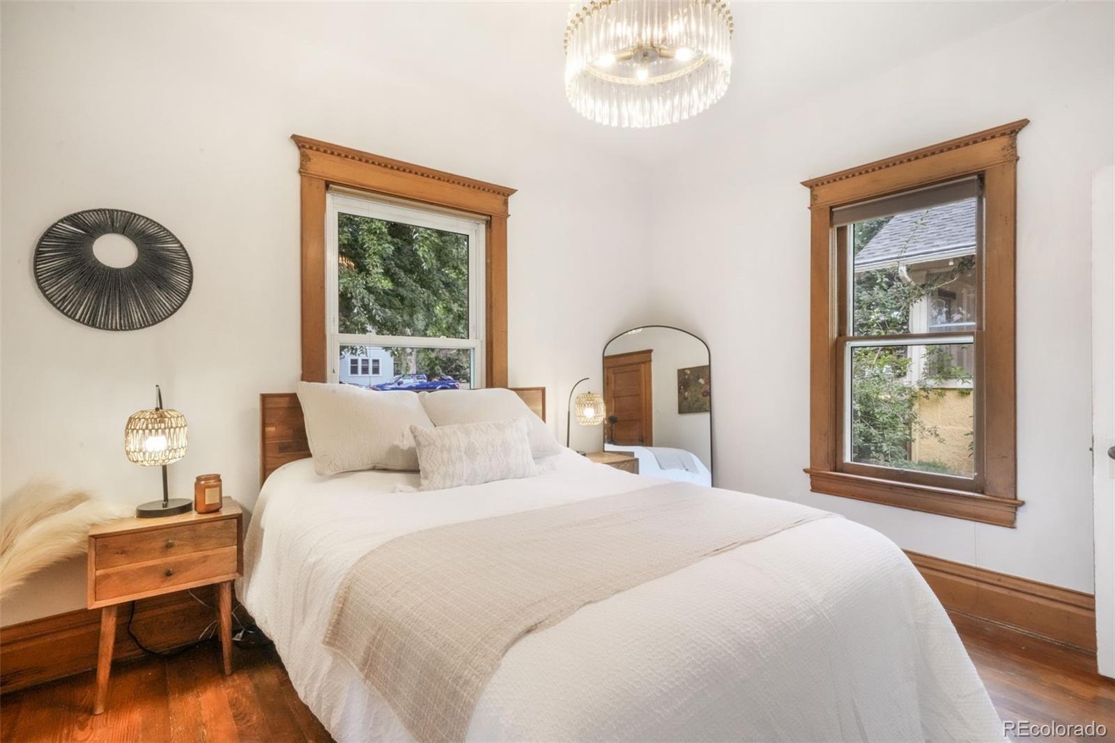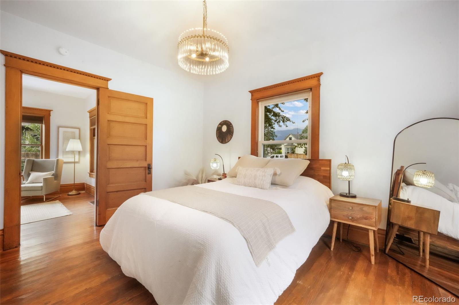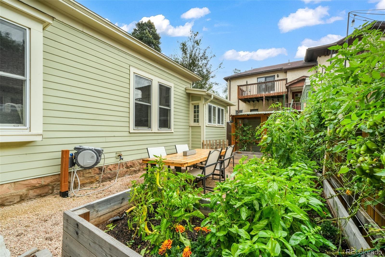 Welcome to this beautifully updated Craftsman cottage located in the heart of Colorado Springs’ highly sought-after Old North End neighborhood. A perfect blend of classic charm and modern sophistication, this home effortlessly combines the timeless elegance of its original design with the thoughtful updates and conveniences of today’s lifestyle.From the moment you arrive, you’ll be captivated by the home’s inviting curb appeal, complete with a new front fence, lush landscaping, and raised garden beds. Step inside to discover warm hardwood floors, intricate original woodwork, tall ceilings, and custom molding that reflect the historic character of the home. The spacious front living room offers stunning views of Pikes Peak and provides a welcoming space filled with natural light, ideal for both everyday living and entertaining.The fully remodeled kitchen is a true centerpiece, featuring sleek stainless steel appliances including a gas range with downdraft hood, dishwasher, and refrigerator. Custom cabinetry, quartz countertops, and a reverse osmosis water system offer a perfect balance of beauty and functionality. Adjacent to the kitchen, a dedicated dining area with hardwood floors and classic trim.The primary suite is filled with light and features a generous custom walk-in closet with built-in shelving. The newly renovated bathroom includes a deep soaking tub, elegant custom tile, and all-new fixtures. A large, updated mudroom and laundry room at the rear of the house provides extra storage and leads out to the patio. Here, you’ll find even more to love, including a chicken coop and space to garden, relax, or entertain. This home has been meticulously maintained with key updates including a new electrical panel and wiring, central air conditioning, high-efficiency furnace, sprinkler system, updated siding, and fresh paint inside and out. Every detail has been thoughtfully curated to preserve the home’s character while offering peace of mind and modern comfort.