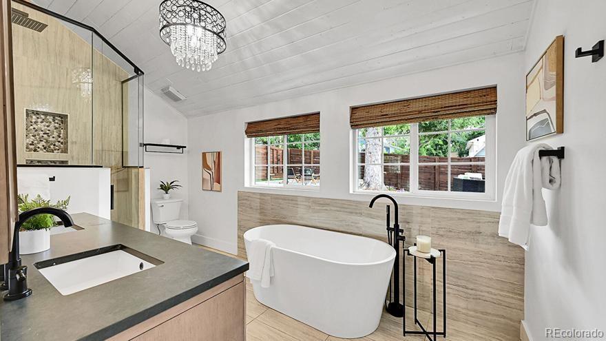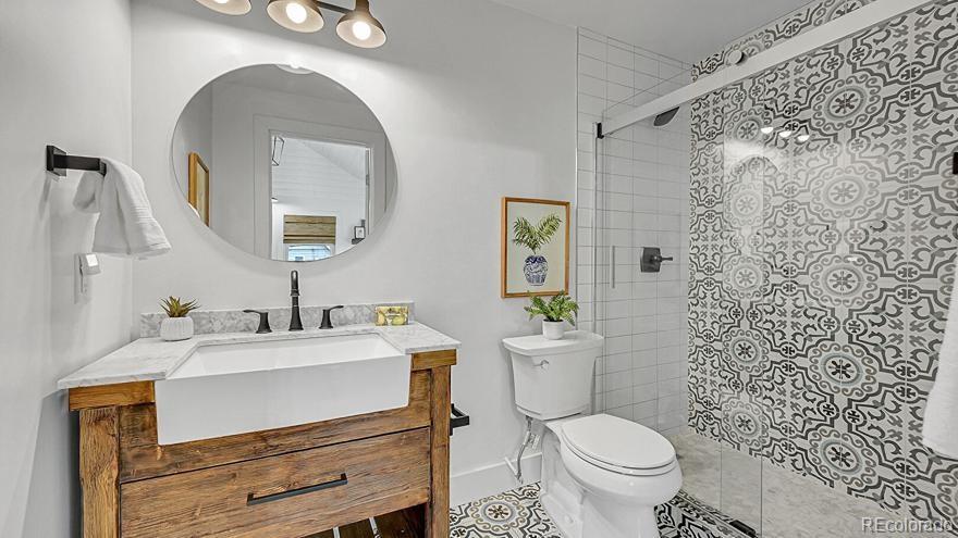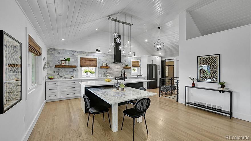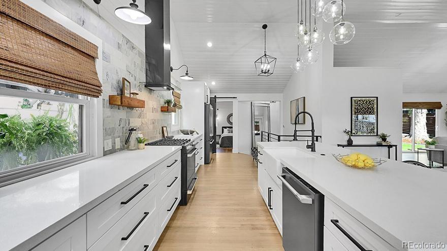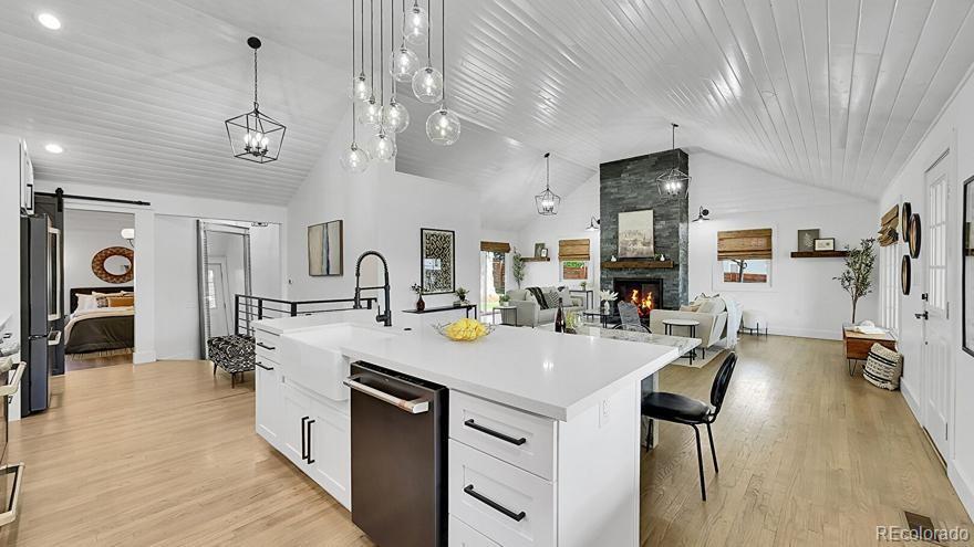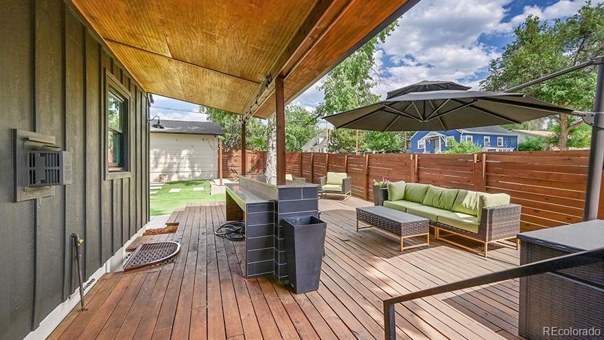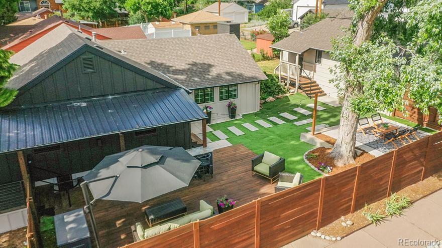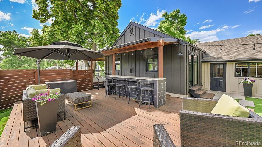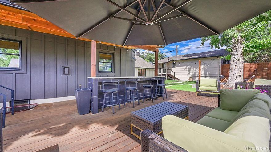 Modern Englewood Retreat – Designed for Living, Entertaining & Relaxation Originally built in 1953 and brilliantly reimagined, this 2,725+ sq ft masterpiece fuses timeless mid-century charm with today’s modern sophistication. Soaring vaulted ceilings, abundant natural light, and designer finishes create a space that feels warm, open, and effortlessly stylish—a perfect harmony of comfort and class. At the heart of the home, the chef’s kitchen dazzles with quartz countertops, premium stainless appliances, and a spacious island that’s ideal for cooking, hosting, and gathering. The open-concept layout flows seamlessly between the kitchen, dining, and living spaces—crafted for both everyday living and unforgettable entertaining. Three serene bedrooms and three spa-inspired baths provide privacy and relaxation, while the finished basement offers flexible space for a fourth bedroom, gym, home office, or media lounge—whatever suits your lifestyle best. Step outside to your private backyard oasis, complete with a built-in outdoor kitchen, bar seating, gas line, and a covered patio lounge—perfect for al fresco dining or cozy evenings under the Colorado sky. Mature trees and lush landscaping add a natural sense of calm and privacy. The oversized 720 sq ft garage is a dream for hobbyists and adventurers alike, offering room for vehicles, gear, or a creative workshop. Thoughtfully renovated in 2020 with warm modern finishes, this home also features ADU zoning for future flexibility or income potential. Ideally located near Swedish & Craig Hospitals, DU, and Englewood’s best dining, with easy access to Downtown Denver, DTC, and light rail—this home perfectly combines design, location, and lifestyle. Modern luxury. Mid-century soul. Englewood perfection.