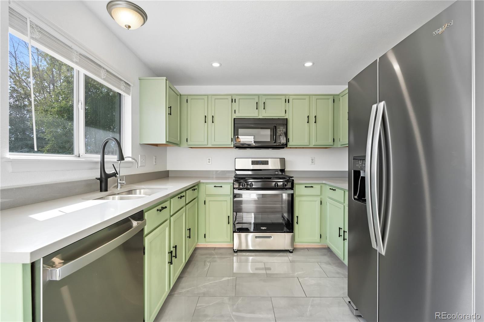 STUNNING 3 bedroom 3 bathroom, 2 car garage that has being fully updated throughout the entire home with professional quality, craftmanship and high-end finishes! From the moment you enter, you’ll love the abundance of natural light, the large family room. and the spacious layout as well as inviting features such as; large windows, on trend luxury vinyl flooring, new carpet, designer lighting, brushed nickel hardware, newer blinds and too much to list. The fully updated kitchen, boasting stunning new quartz countertops, and brand new Stainless Steel including a gas stove, refrigerator, dishwasher (microwave is not new)! The upper floor includes a huge primary suite with vaulted ceilings, recessed lighting, large walk-in closet, new vanity sink. Two additional bedrooms and an updated bathroom make for the perfect family home! The basement is ready to be finished with plenty of room for another bedroom, bathroom and family/get away space. Outside, enjoy a low-maintenance lifestyle with mature trees, buffalograss (that saves you time and money), plus a large backyard with privacy fence, large deck that is perfect for entertaining or unwinding in privacy. **Other key features and updates - A 2024 roof, a new water heater, new washer and dryer included, newer blinds, Fresh paint inside and out, newer deck, a pristine new driveway and walkway, and a 2024 garage door. Low taxes and no HOA/Fees!!! Located just 10 minutes from two light rail stations and major highways, your commute has never been easier. This home is 100% move in ready! Well loved and priced to sell!
