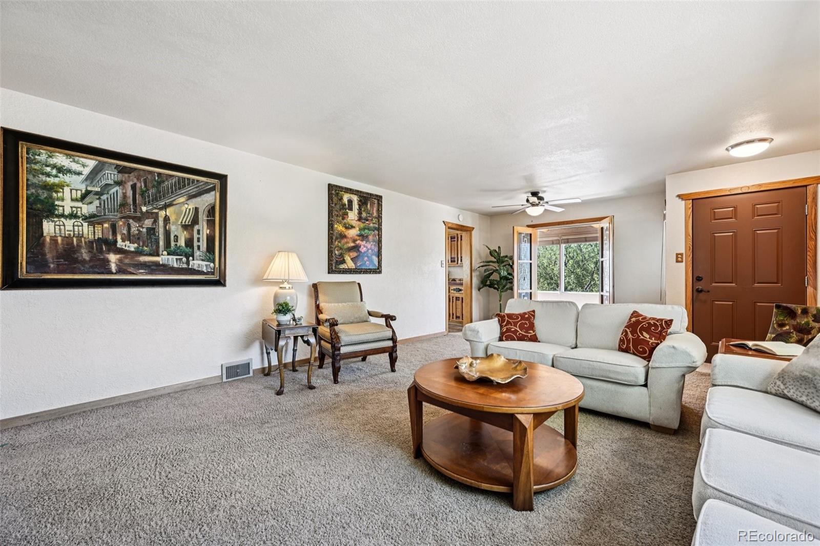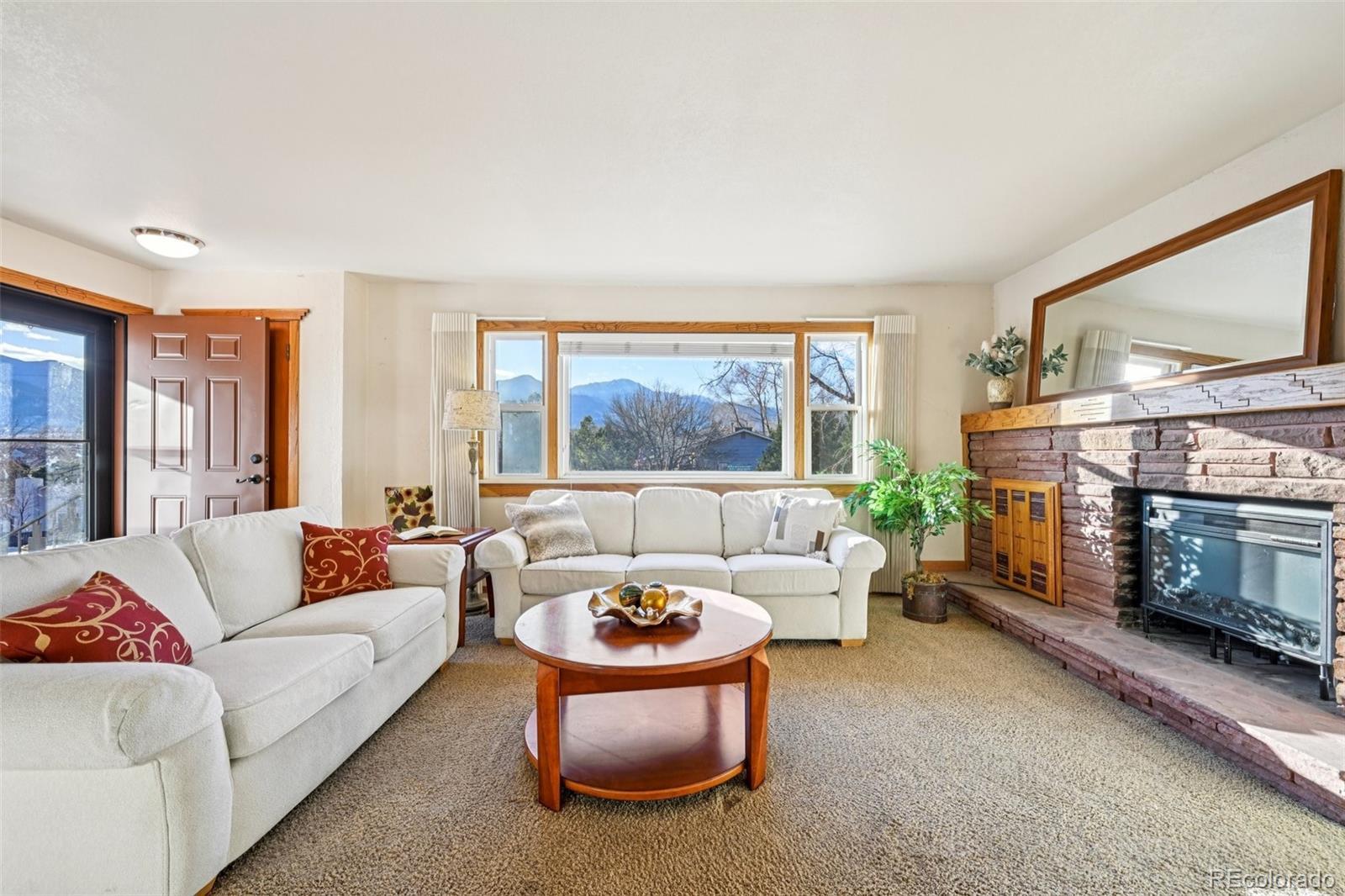 MUST SEE!! *SEE ATTACHED 3D TOUR* Unique and rare opportunity for west-side living with HUGE DETACHED 6+ car garage and workshop, large main residence, plus additional attached living space with a fantastic GALLERY/STUDIO/SHOWROOM space with exterior access AND access from the main residence * Enjoy main level living with the Primary Bedroom, beautifully renovated bath with walk in shower, plus a main level office. Large Living Room on the main level with fireplace, plus a beautiful, sunroom perfect for relaxing and growing plants, with beautiful stained glass doors. Large open kitchen with eat-in nook and unique custom accents on the cabinets * Off of the main level is access to the INCREDIBLE gallery space, which includes a lower level room with built in storage cases, and an upper level GORGEOUS GALLERY with pristine hardwood floors, high ceilings, built-ins and SPECTACULAR PIKES PEAK VIEWS! You'd never know this space was here - you'll about keel over when you see it! * The home has a finished lower level also with potential for a kitchenette, loads of storage space, a Family Room with fireplace, and private entrance/exterior door to the front of the property - perfect for guest quarters or in-law suite * Step out back and you'll see the MASSIVE 6+ CAR DETACHED GARAGE and heated workshop * 2 story high ceiling plus an upper level garage office. Fruit trees on delightful, private patio in back with an additional garden shed. 2nd driveway on southern edge is part of property -great for RV/camper/boat storage. PRIME location with easy access to main thoroughfares * No covenants in this established n'hood! Water heater and Central A/C recently replaced. 2 furnaces and one is Brand new furnace (installed Oct 2025) New Roof finished Oct 30. This is a very unusual property with a lot of different spaces. Please refer to 3D Virtual Tour link for floorpan. The main house is a ranch, with the Gallery addition making it a 2 story.