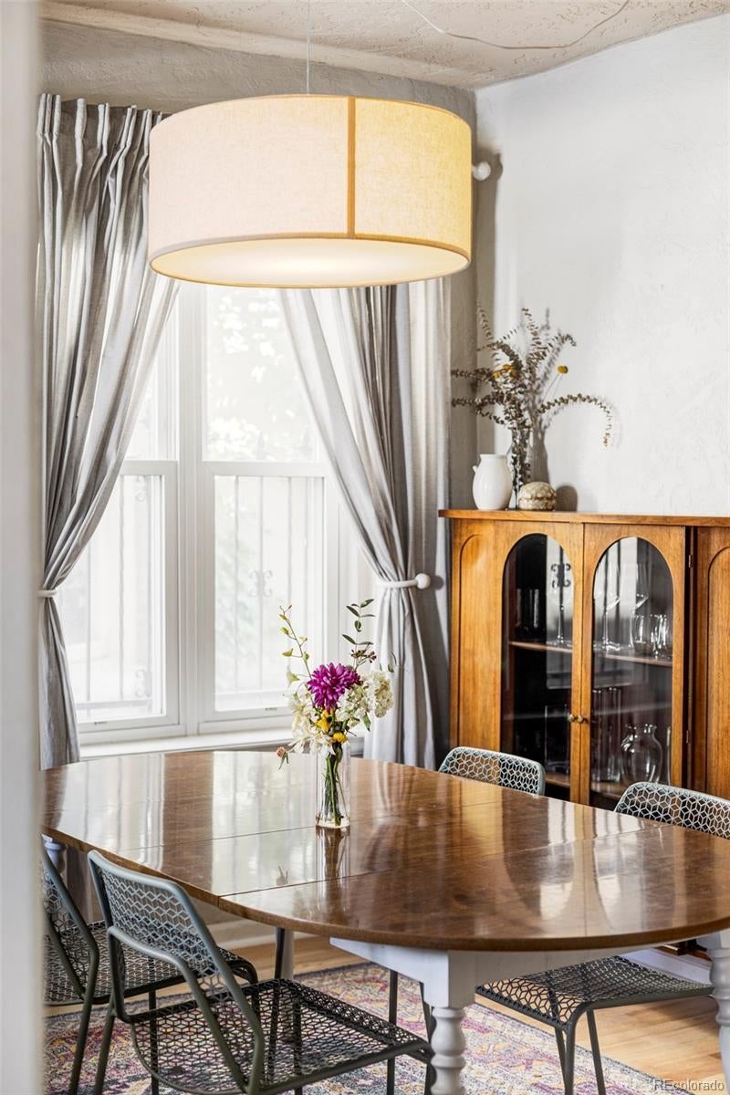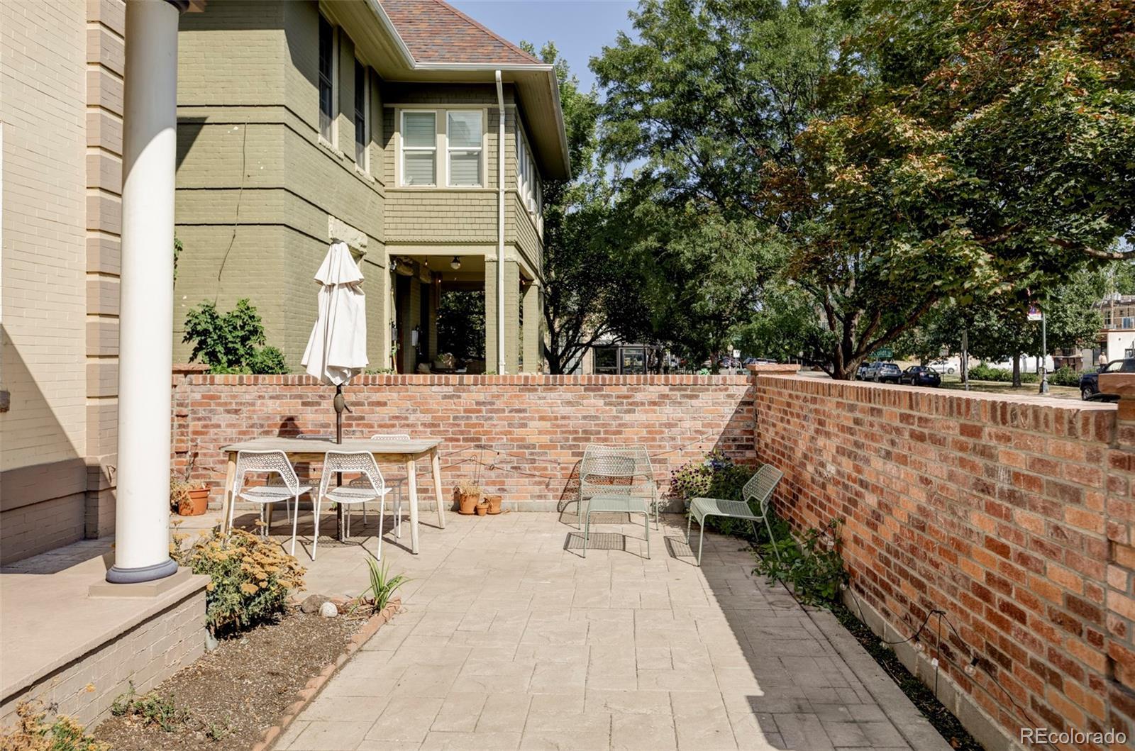 Brimming with historic charm yet thoughtfully updated for modern living, this end-unit Uptown townhome offers a low-maintenance retreat in a vibrant locale. Sunlight fills the south-facing interiors, highlighting high ceilings, beautiful new hardwood flooring and a welcoming, open flow. The chef’s kitchen delights with abundant counter and storage space, while a cozy gas fireplace anchors the inviting living area. Upstairs, three spacious bedrooms provide versatility. The mechanical systems have been recently upgraded, including a new furnace, AC and tankless hot water heater for added peace of mind. Outdoor living shines with a large stamped concrete front patio surrounded by xeriscaping — ideal for morning coffee or lively entertaining. With no HOA, two off-street parking spaces and abundant storage including a basement and shed, this home balances ease with character. Moments from coffee shops, restaurants, parks and cultural gems, this townhome embodies the true Uptown lifestyle.