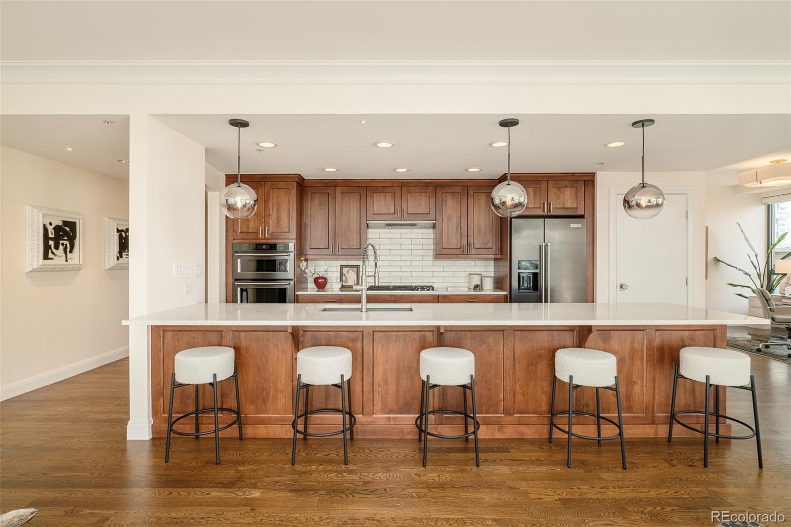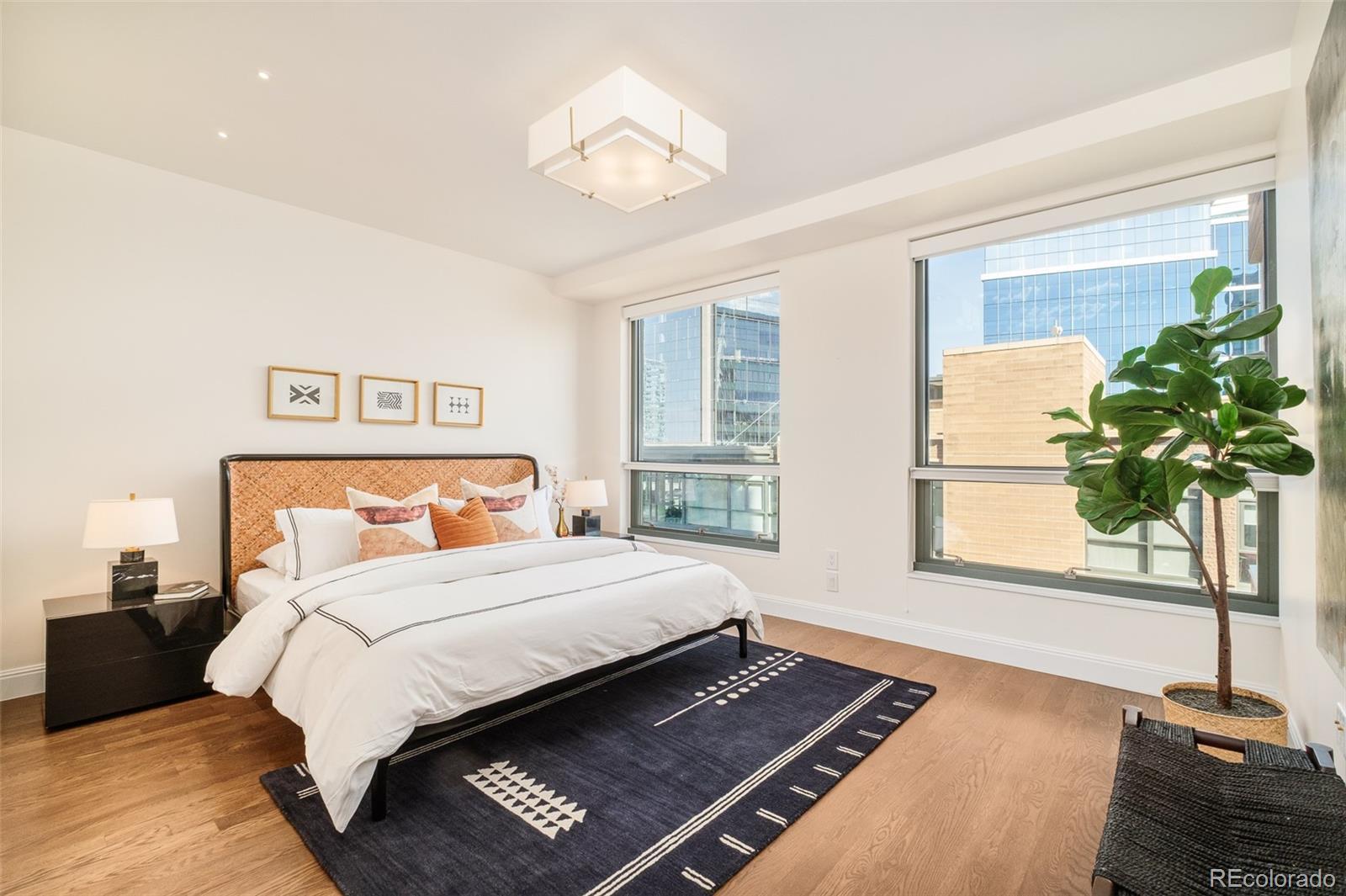 Discover the defining factors of Luxury within this stunning remodeled 8th floor corner 2 bed 3 bath condominium at Riverfront Tower. This modern architectural gem provides a balance of urban city life, a central point for cultural experiences such as sole stirring symphonies, major league sporting events, Michelin starred restaurants and world class retail shops, with the tranquility of nearby green spaces and majestical City and Mountain views from its floor to ceiling windows integrating the exterior within the interior and enjoy a spacious balcony with a built-in gas line and water tap. Adjacent to Commons Park and the North Platte River with 28 miles of trails. Marvel at the expansive great room showcasing a sleek electric Evonik fireplace encased in stone abreast of dining, and the gourmet kitchen having high end appliances of Bosch, KitchenAid and Wolfe to enjoy your creations while entertaining from the expansive center island capped in Caesar stone with a central sink. Relax in the flex space “snug” and enjoy a game or use this as an office. The deliberate design of this floor plan is wonderful for entertaining. Retire to the primary suite, greeted by an antechamber and expansive walk-in closet with a stunning newly remodeled spa-inspired 5-piece bathroom featuring a freestanding soaking tub and an oversized glass shower. This incredible condominium continues to be complimented having Second bedroom with custom built-in drawers, a separate closet with a beautifully remodeled ensuite and positioned down the hall for perfect privacy this residence includes a third bath for visiting guests. A one-of-a-kind residence that has been elegantly remodeled from door handles to directional button spotlights having nothing unturned blending luxurious finishes with timeless comfort. Secure your favorite autos in the two deeded tandem parking spots with an ample storage unit. Moments from Union Station across the Millennial bridge under the clock-tower you'd be home!