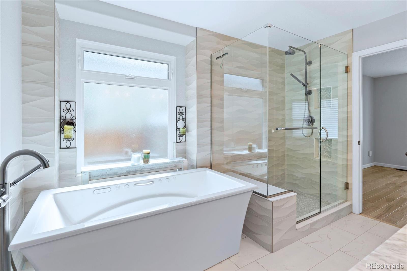 Exquisite Littleton Retreat — Refined Comfort Meets Thoughtful Modern Living Welcome to this meticulously refreshed home in the serene Alpers Farm neighborhood, where thoughtful upgrades and effortless functionality create elevated everyday living. Pride of ownership is evident from the moment you arrive, highlighted by a new insulated garage door and custom metal storage cabinetry. Inside, new wood flooring and tile span the main level, complemented by new carpet upstairs and all-new light fixtures throughout. Open living spaces are filled with natural light from all-new energy-efficient Low-E windows featuring 98.9% UV protection. Custom shades throughout — including top-down/bottom-up shades upstairs — provide privacy and flexible light control. The updated kitchen is chef-ready and includes a quiet Bosch dishwasher and Bosch fridge for seamless performance. A highly desirable main-floor primary suite offers convenient single-level living. The custom primary bath features a hydrotherapy and light therapy tub, elegant marble vanity, and spa-inspired finishes designed for relaxation. Additional upgrades include a 75-gallon water heater, extra outlets, energy-saving switches, and thoughtful storage solutions throughout the home. Enjoy the fully fenced private backyard with a custom 10 x 10 screened gazebo — ideal for relaxing or entertaining — plus two separate outdoor sheds for lawn and garden storage. A 4-year-old roof with Class IV shingles provides durability and peace of mind. Move-in ready and beautifully upgraded, this home blends comfort, efficiency, and quality in one of Littleton’s most desirable neighborhoods.