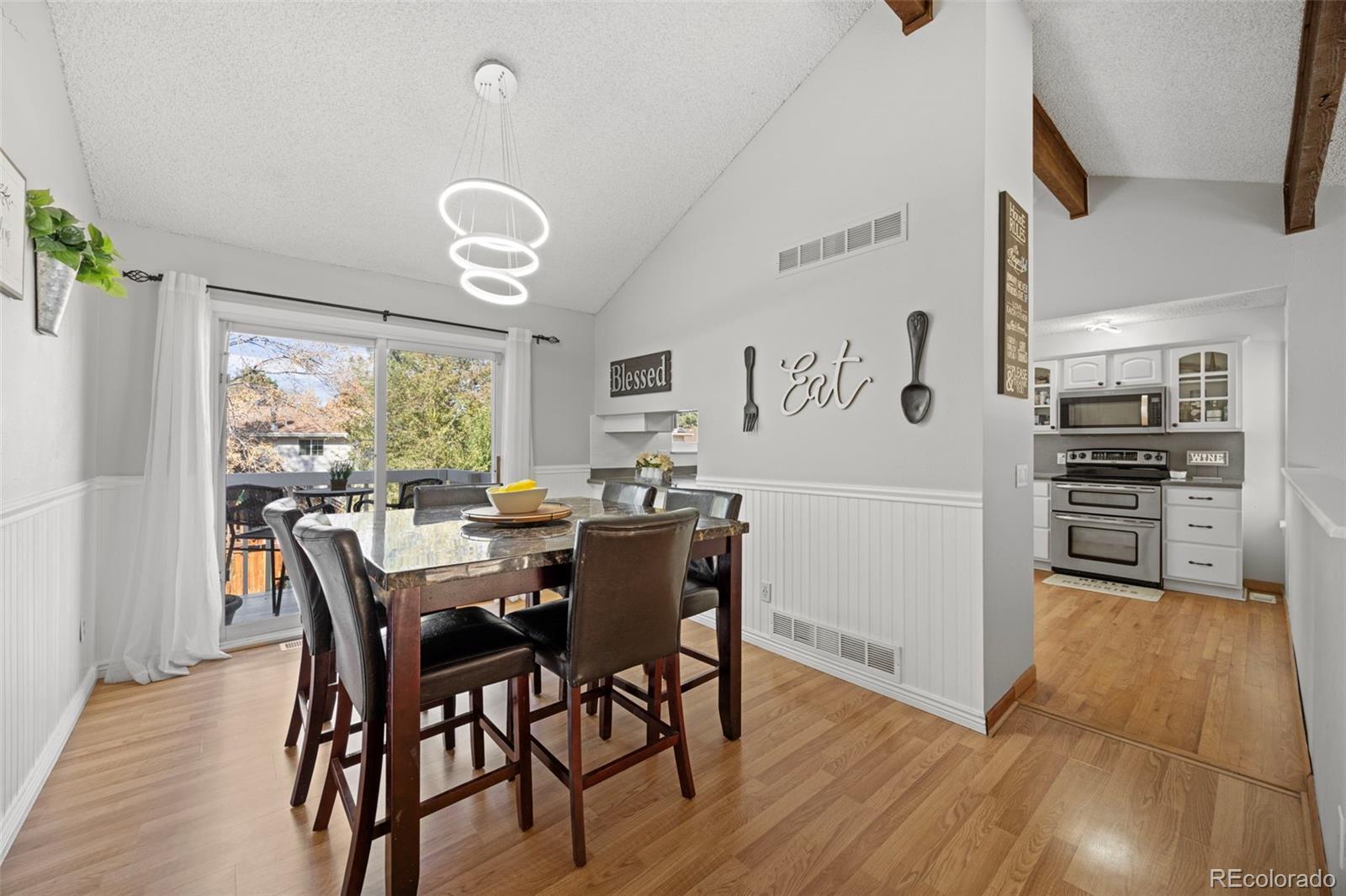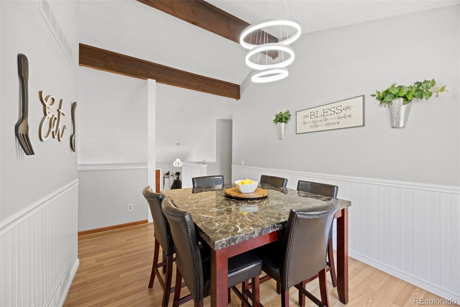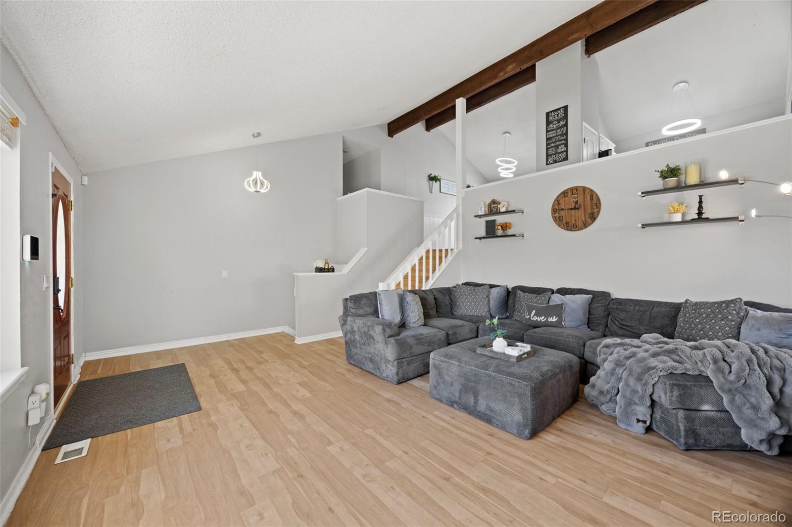 Welcome to 611 S Laredo Cir, Aurora, CO 80017 — a bright, inviting home that blends comfort, character, and convenience. This updated 5-bedroom, 3-bath tri-level offers 2,390 square feet of thoughtfully designed living space. The main level feels open and airy with vaulted ceilings and wood beams that add a modern farmhouse touch. New luxury plank flooring runs throughout, creating a clean, cohesive flow from room to room. The kitchen has been refreshed with updated countertops, cabinetry, and backsplash—perfect for everyday meals and weekend gatherings alike. The finished basement adds flexibility with a fifth bedroom or home office, making it ideal for multi-generational living or extra guest space. Outside, the large and well-maintained backyard features mature trees, a privacy fence, and an included playset—ideal for outdoor fun or relaxed evenings at home. Additional highlights include solar panels for energy efficiency and a brand-new furnace, offering peace of mind heading into the colder months. With no HOA and just one block from Tollgate Elementary, the location delivers both freedom and convenience. Commuters will appreciate quick access to I-225 and I-70, making trips to DIA, nearby shopping centers, parks, restaurants, and daily essentials simple and seamless. Bright, functional, and move-in ready — 611 S Laredo Cir is the kind of home that feels easy to love.