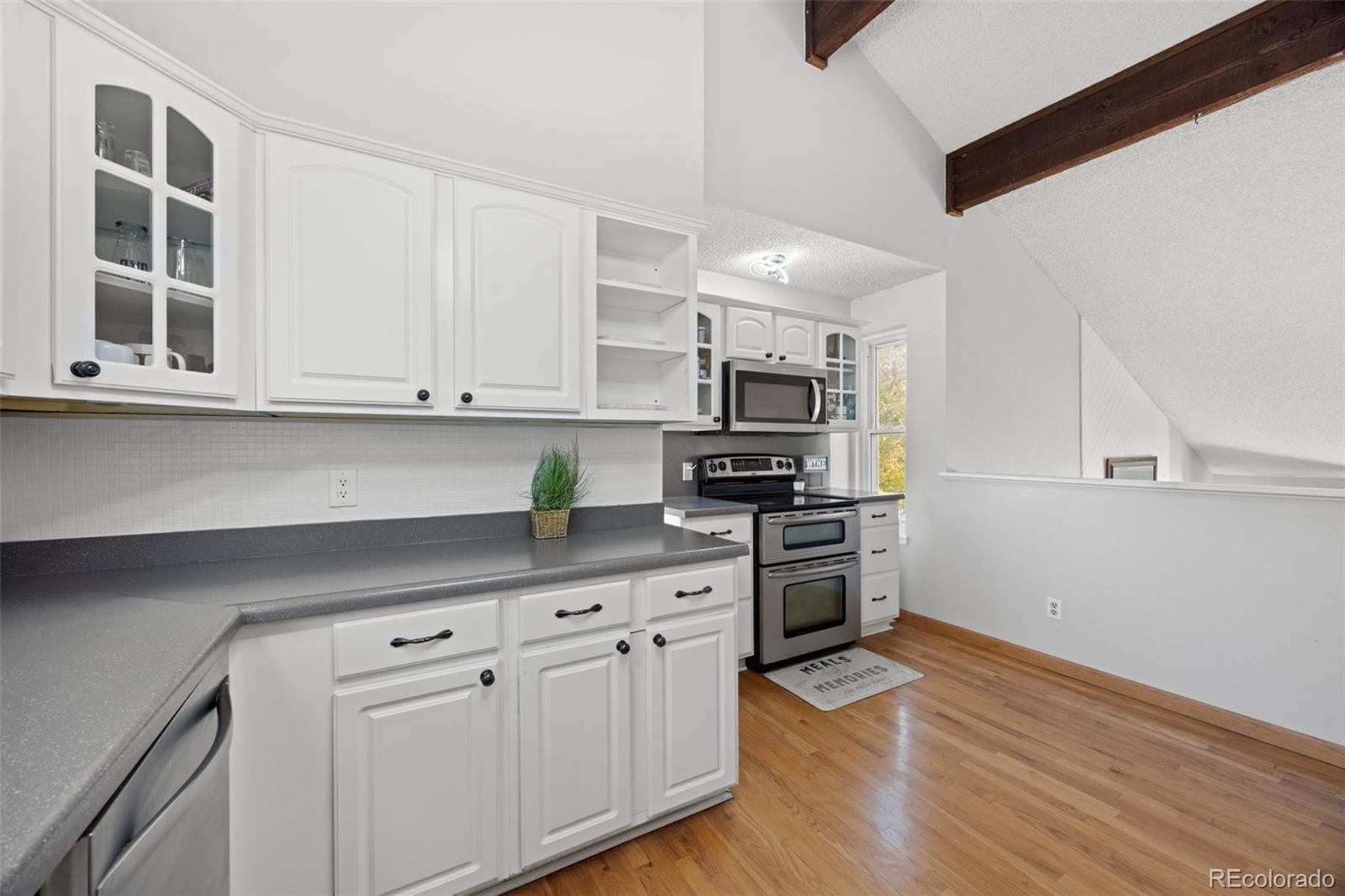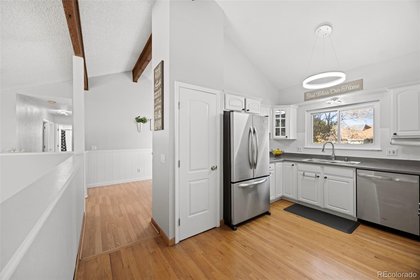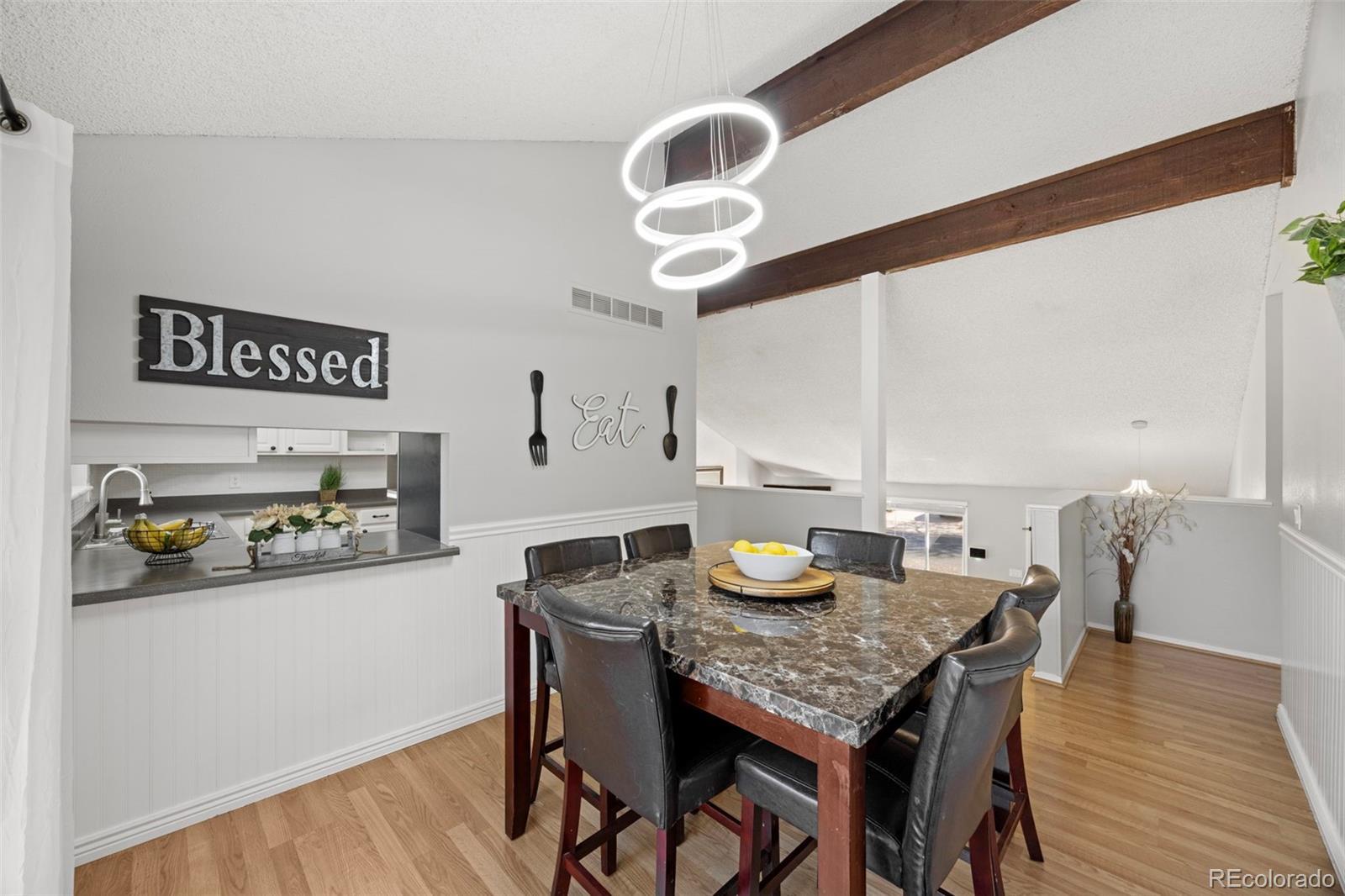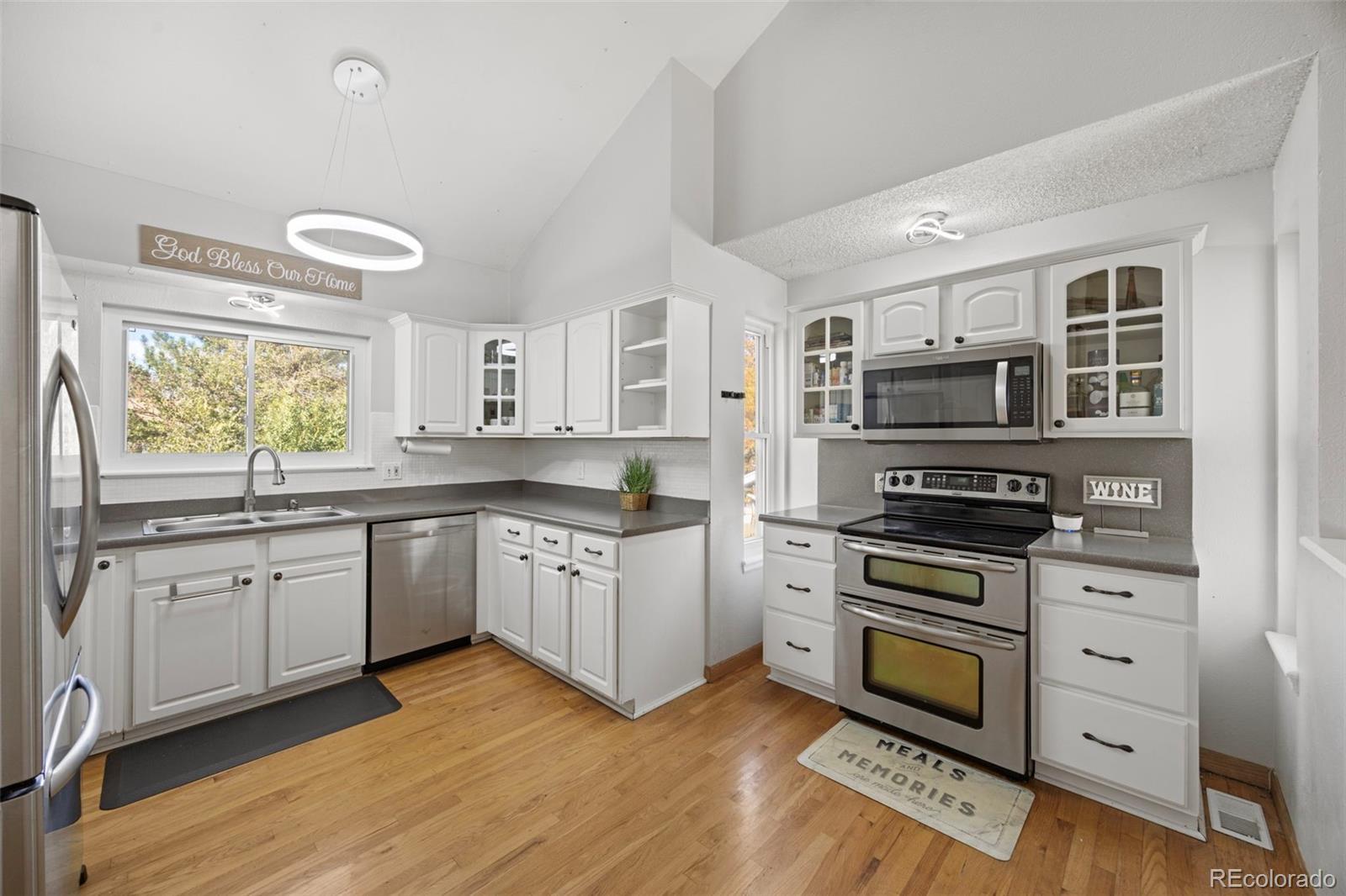 Welcome to 611 S Laredo Cir, Aurora, CO 80017 — a bright, inviting home that blends comfort, character, and convenience. This updated 5-bedroom, 3-bath tri-level offers 2,390 square feet of thoughtfully designed living space. The main level feels open and airy with vaulted ceilings and wood beams that add a modern farmhouse touch. New luxury plank flooring runs throughout, creating a clean, cohesive flow from room to room. The kitchen has been refreshed with updated countertops, cabinetry, and backsplash—perfect for everyday meals and weekend gatherings alike. The finished basement adds flexibility with a fifth bedroom or home office, making it ideal for multi-generational living or extra guest space. Outside, the large and well-maintained backyard features mature trees, a privacy fence, and an included playset—ideal for outdoor fun or relaxed evenings at home. Additional highlights include solar panels for energy efficiency and a brand-new furnace, offering peace of mind heading into the colder months. With no HOA and just one block from Tollgate Elementary, the location delivers both freedom and convenience. Commuters will appreciate quick access to I-225 and I-70, making trips to DIA, nearby shopping centers, parks, restaurants, and daily essentials simple and seamless. Bright, functional, and move-in ready — 611 S Laredo Cir is the kind of home that feels easy to love.
