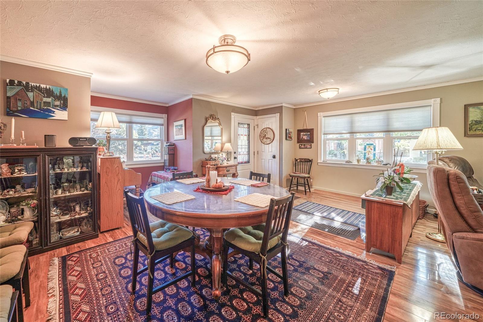 Charming and Updated Historic Home in Downtown Salida! This delightful home blends classic Salida charm with thoughtful updates and a warm, welcoming feel throughout. Step inside to a spacious open living and dining area filled with character, complete with a cozy gas stove, and inviting spaces to gather. The updated kitchen is both stylish and functional, featuring custom cabinetry, granite countertops, and newer appliances. A beautiful primary suite addition offers vaulted ceilings, a walk-in closet, and a serene ¾ bath with custom tile, in-floor radiant heat, and a walk-in shower. Enjoy direct access to a private covered deck—perfect for morning coffee or evening relaxation. Two additional bedrooms and a full bath provide comfortable space for family or guests. There’s even a charming nook off the dining area—ideal for an office, reading corner, or creative space. The home has seen many recent improvements including wood-laminate (Pergo) flooring, new windows, and new 2025 roof on house and 2022 roof on single-car detached garage. A metal roof tops the double detached garage with convenient alley access. Outside, you’ll love the beautifully landscaped yard with updated sprinklers (installed in 2025), a fenced backyard perfect for pets or play, and a lovely front yard that enhances the home’s curb appeal. All this in a prime location—just a short walk to the Arkansas River, downtown shops and restaurants, schools, and the library. This is truly a must-see Salida gem—move-in ready and full of charm!