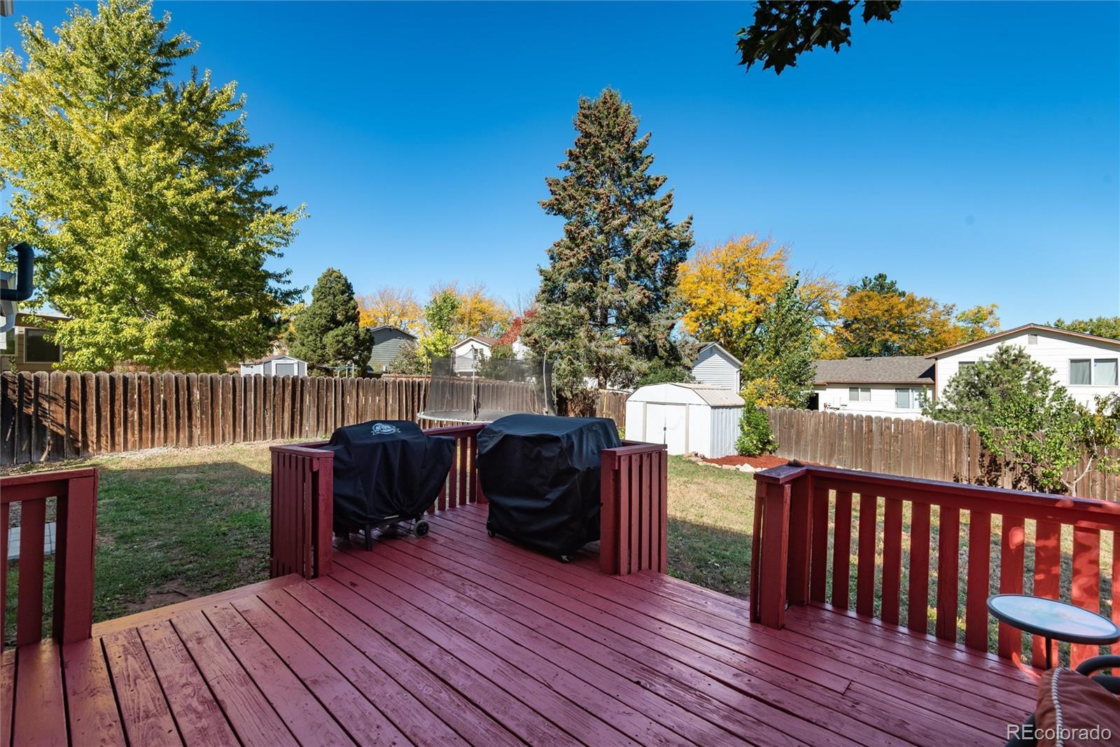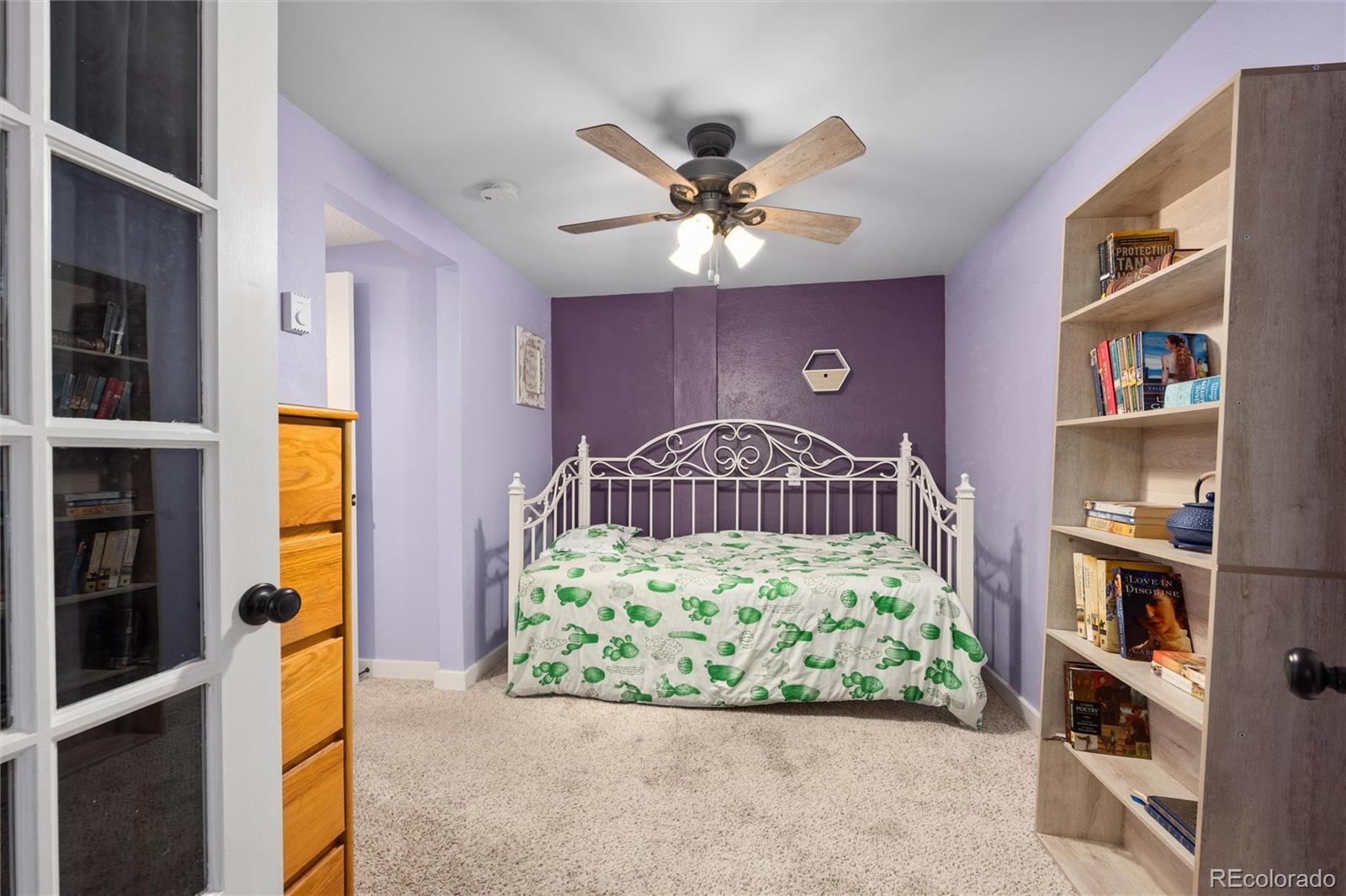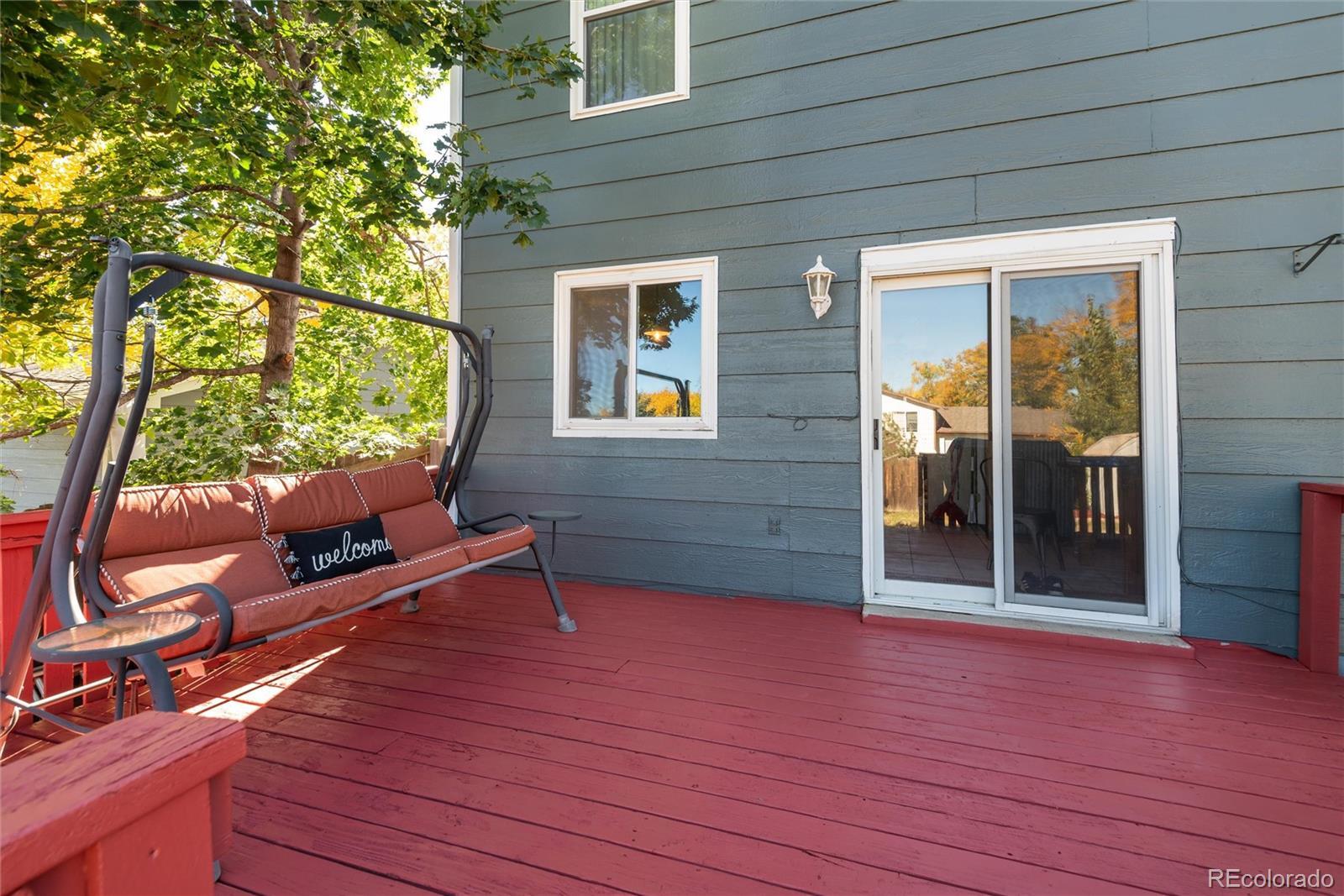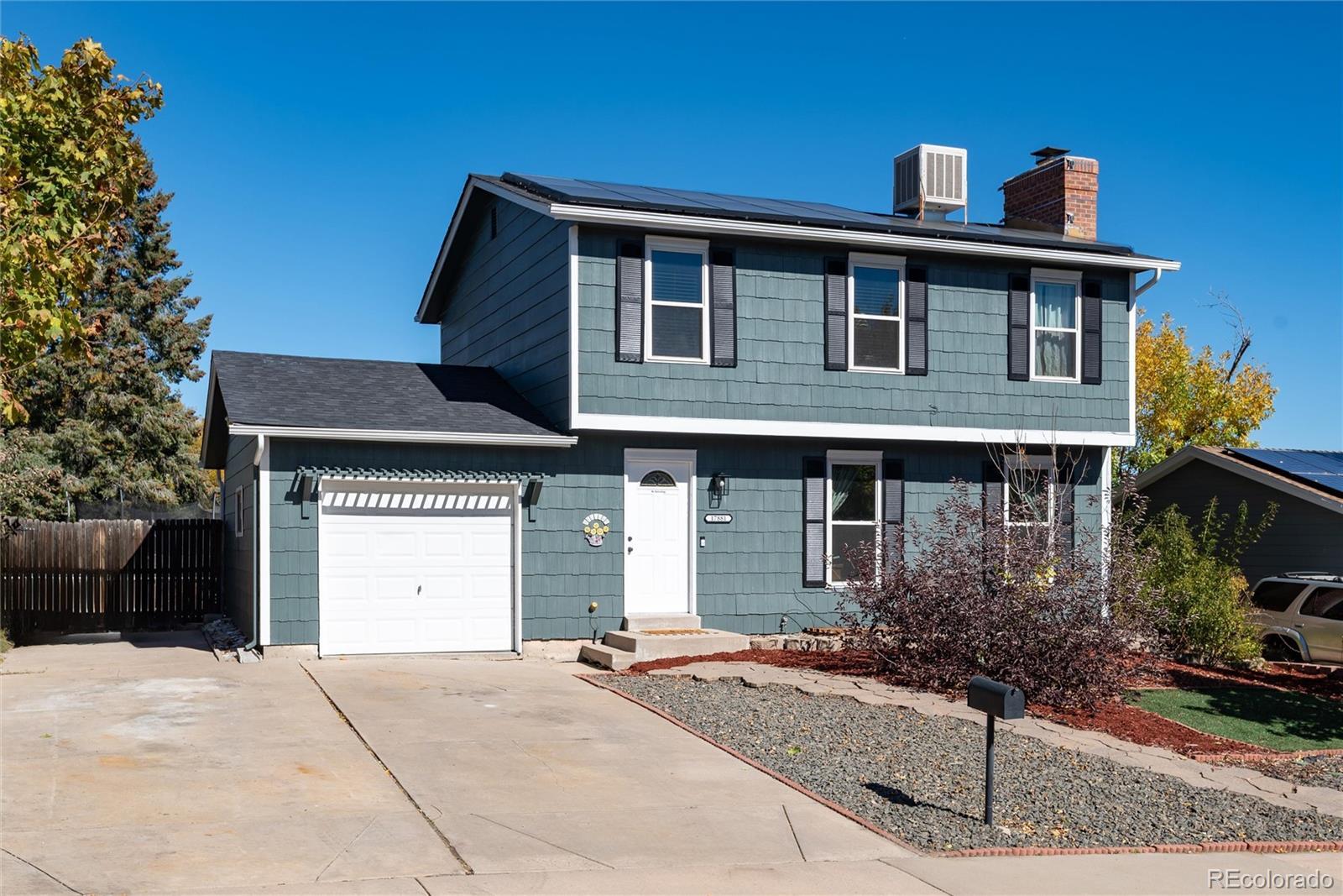 This inviting home offers flexible living spaces across three levels, perfect for a variety of needs. On the main floor you’ll find a comfortable living room and a dining area off the kitchen with direct access to the newly painted back deck—ideal for outdoor dining or entertaining. The kitchen features freshly painted cabinets and a pantry with plenty of storage space. A powder bath adds convenience, and the converted garage provides a versatile bonus room—perfect as a bedroom, office, studio—or it can easily be converted back to a garage. Upstairs, the primary suite awaits with a beautifully remodeled bathroom featuring a spa-style shower and dual sinks. Two additional bedrooms and a full hall bath complete this level. The finished basement expands your living space with a cozy family room, a non-conforming bedroom with a walk-in closet (ideal as an office, hobby room or den space), and a dedicated laundry room. Outside, enjoy a sizable, flat backyard offering privacy and room to play or garden. The property has beautiful rose bushes, lilies, and two fruit trees. Additional updates include new exterior paint, fresh paint inside, a brand-new high-impact roof, new electrical panel, fully-owned solar panels, and a radon mitigation system—providing comfort, efficiency and peace of mind. Located in a quiet cul-de-sac in the well-established Aurora Highlands neighborhood, this home enjoys proximity to green space and parks—including one right across the street with a playground, pickleball and basketball courts—making it easy to enjoy Colorado’s outdoors right at home. Close to Buckley Air Force Base and easy access to major commuter corridors (such as I-225 and E-470) for quick trips to Denver, DIA, and the broader metro area—ideal for both work and play.