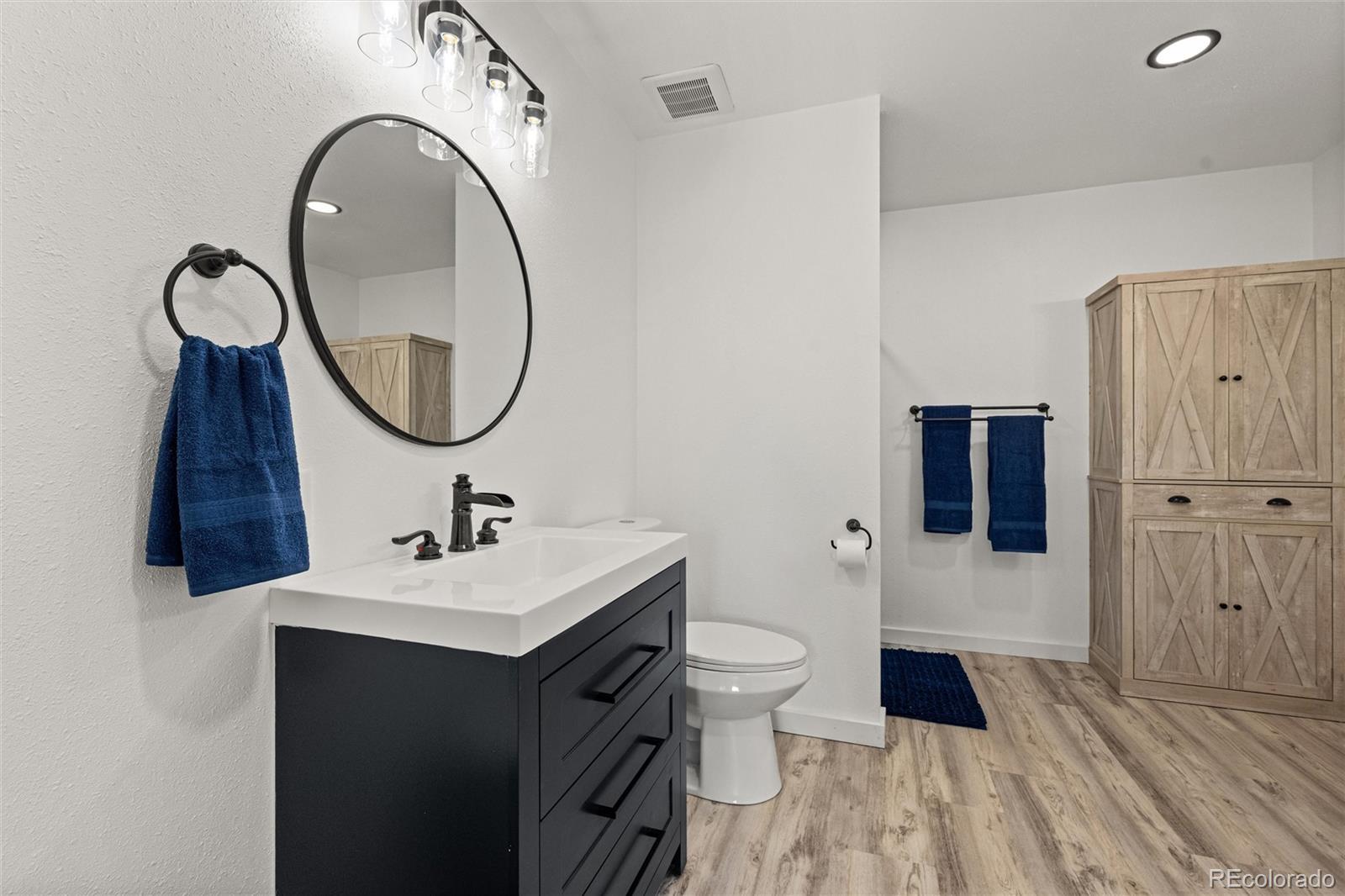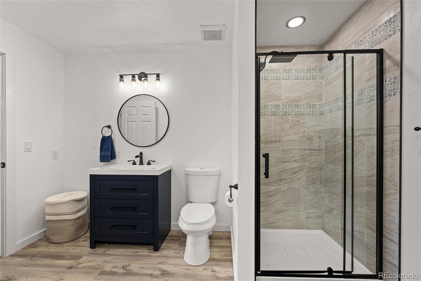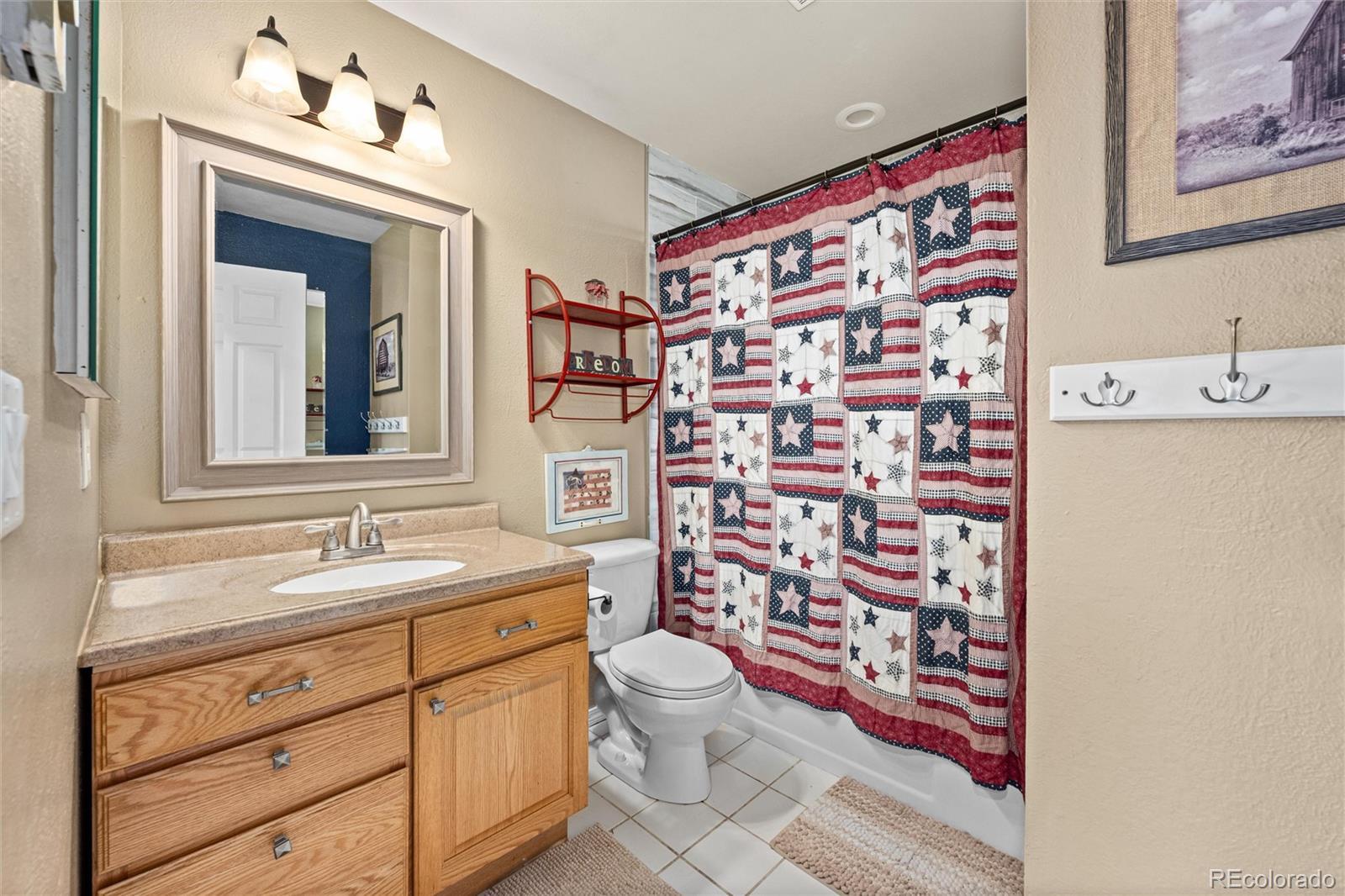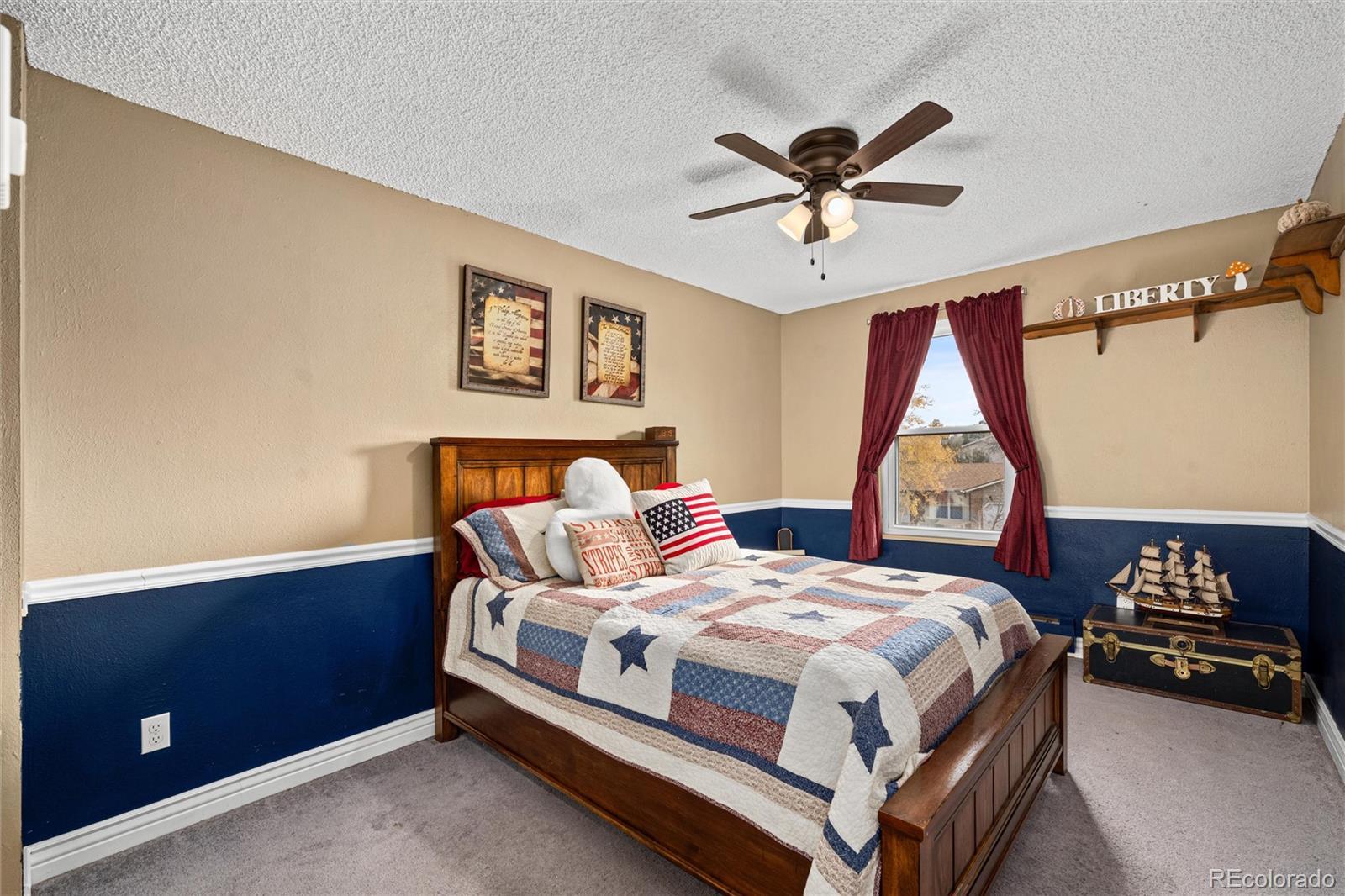 This inviting home offers flexible living spaces across three levels, perfect for a variety of needs. On the main floor you’ll find a comfortable living room and a dining area off the kitchen with direct access to the newly painted back deck—ideal for outdoor dining or entertaining. The kitchen features freshly painted cabinets and a pantry with plenty of storage space. A powder bath adds convenience, and the converted garage provides a versatile bonus room—perfect as a bedroom, office, studio—or it can easily be converted back to a garage. Upstairs, the primary suite awaits with a beautifully remodeled bathroom featuring a spa-style shower and dual sinks. Two additional bedrooms and a full hall bath complete this level. The finished basement expands your living space with a cozy family room, a non-conforming bedroom with a walk-in closet (ideal as an office, hobby room or den space), and a dedicated laundry room. Outside, enjoy a sizable, flat backyard offering privacy and room to play or garden. The property has beautiful rose bushes, lilies, and two fruit trees. Additional updates include new exterior paint, fresh paint inside, a brand-new high-impact roof, new electrical panel, fully-owned solar panels, and a radon mitigation system—providing comfort, efficiency and peace of mind. Located in a quiet cul-de-sac in the well-established Aurora Highlands neighborhood, this home enjoys proximity to green space and parks—including one right across the street with a playground, pickleball and basketball courts—making it easy to enjoy Colorado’s outdoors right at home. Close to Buckley Air Force Base and easy access to major commuter corridors (such as I-225 and E-470) for quick trips to Denver, DIA, and the broader metro area—ideal for both work and play.