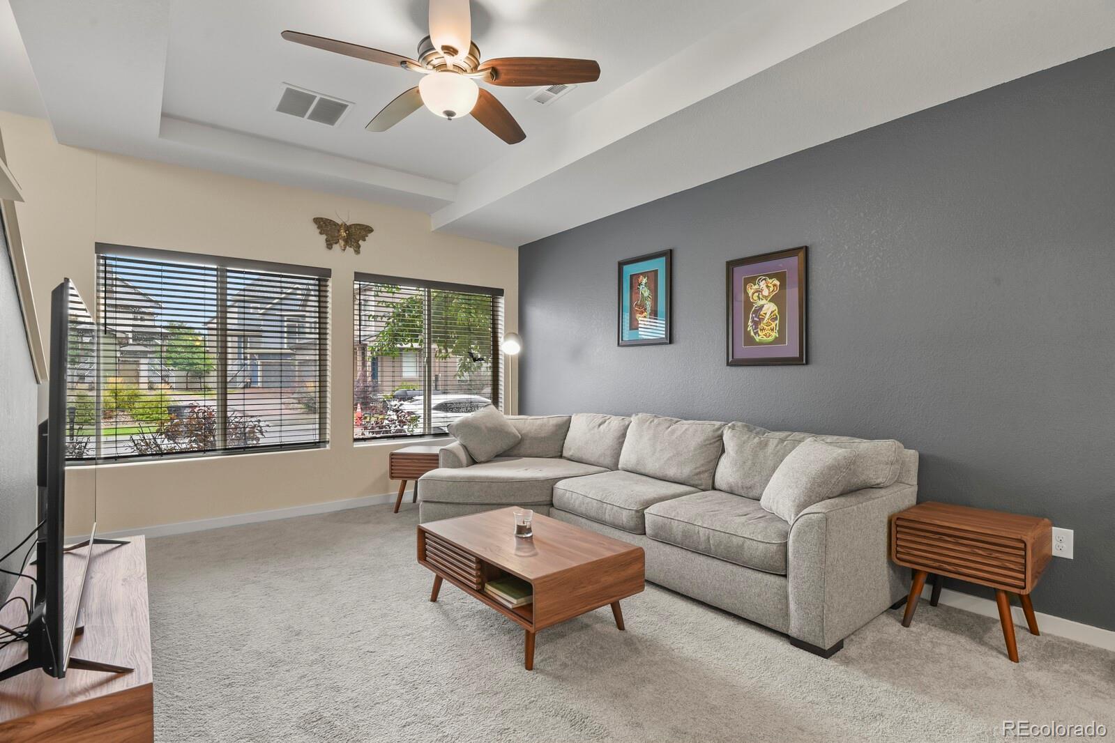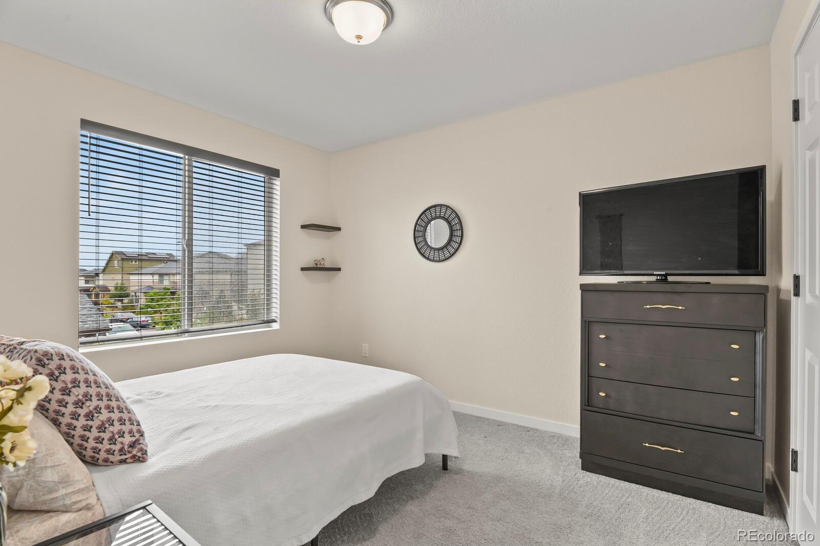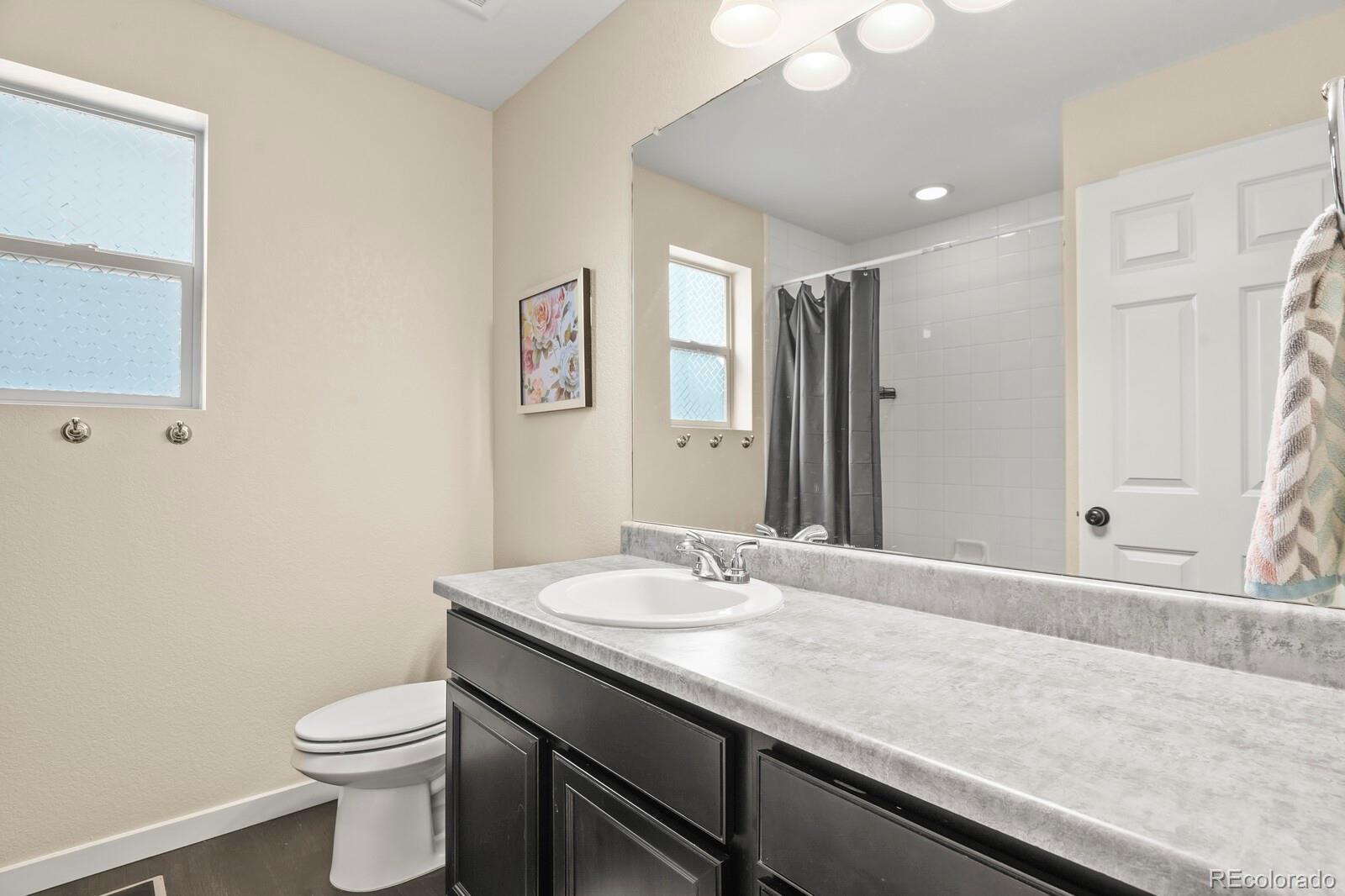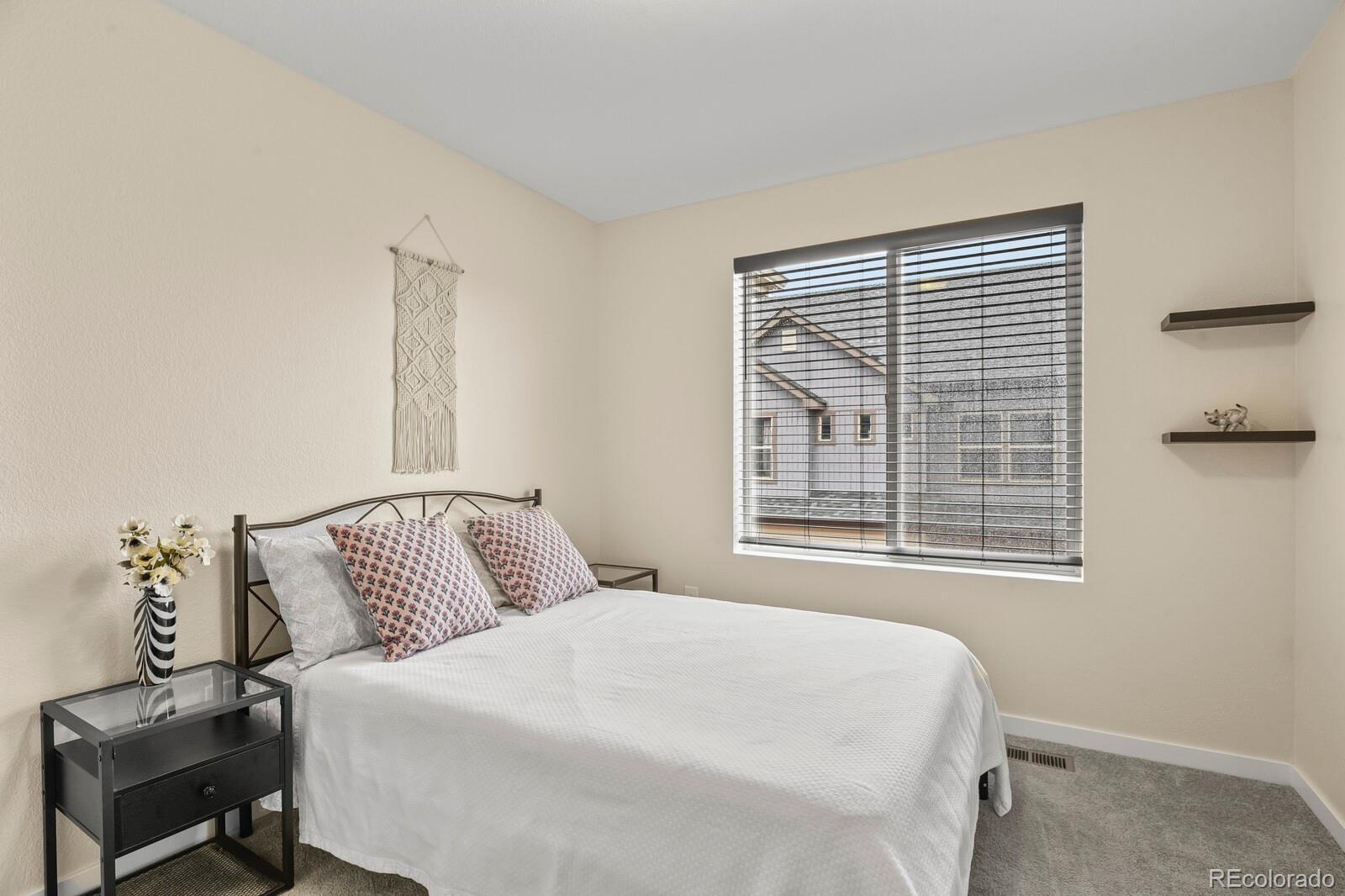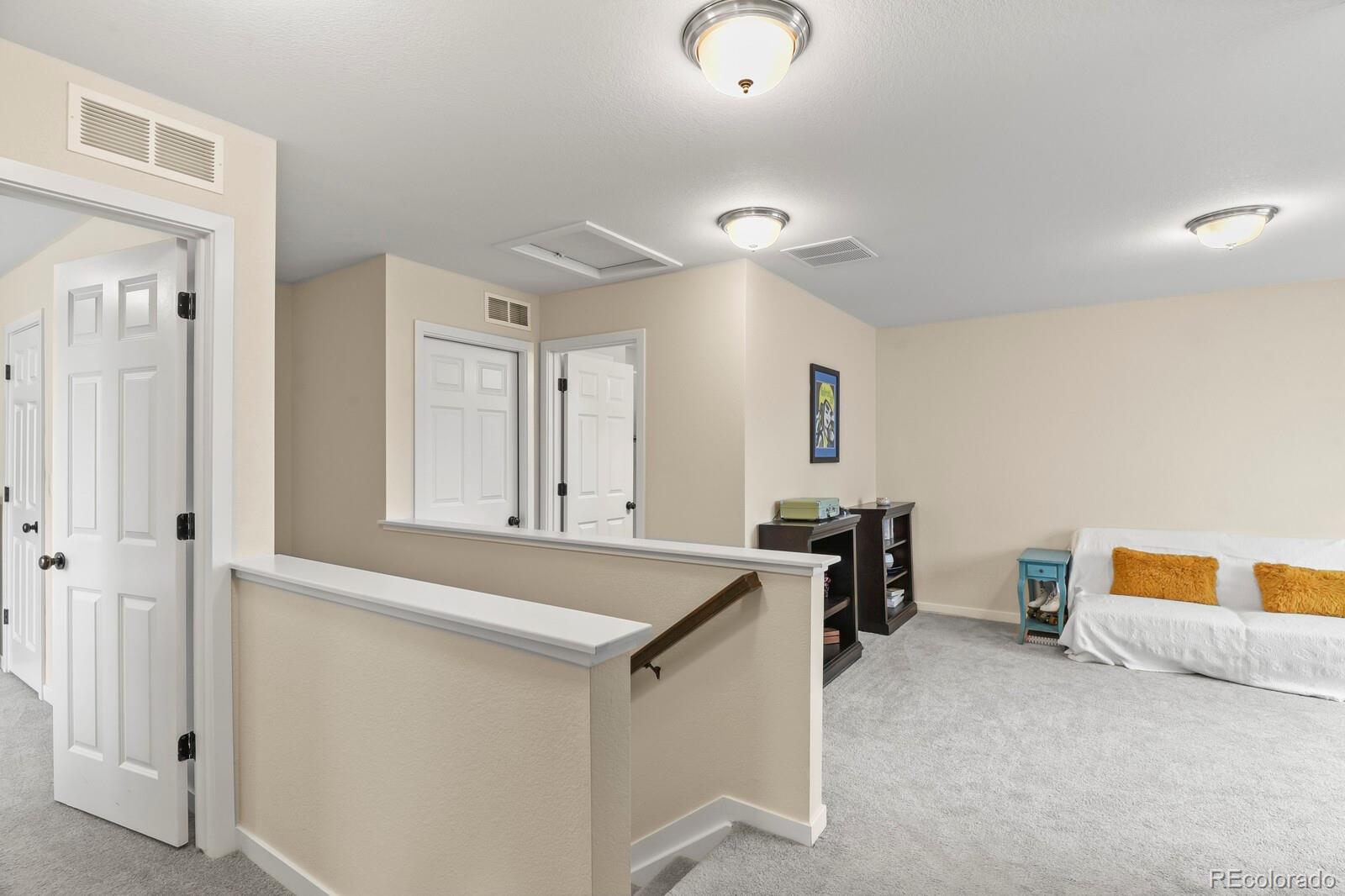 This incredible home is ready for you! You can rest easily with your new class 4 hail resistant shingle roof, siding, and gutter system installed in early 2025. This roof type typically allows for a substantial homeowner insurance discount that can help make your payment a breeze. The open and spacious layout with flex space and main floor bathroom create an inviting and comfortable environment for entertaining your guests. You can transform the versatile bonus room upstairs so you have two living rooms, a dining area, a workout space, toy room, or a spacious home office. You could even do a combination of the options! This room is great because it offers a great flex space for a possible roommate situation for home hacking at its finest. This home offers beautiful outdoor space on the front porch and the backyard patio where you can enjoy sipping coffee in the morning and our stunning Colorado Sunsets in the evening. The home is one of the corner style locations that is offset from the others across the street so offers privacy and tranquility that can be hard to find. Make this home your new beginning!