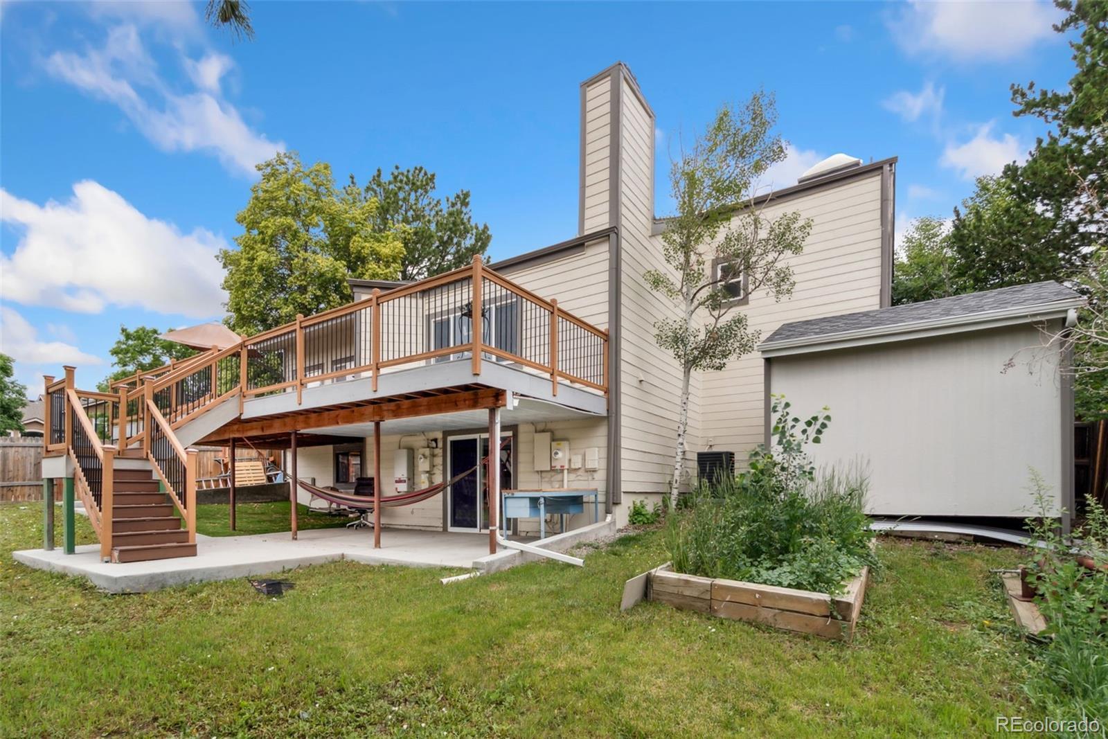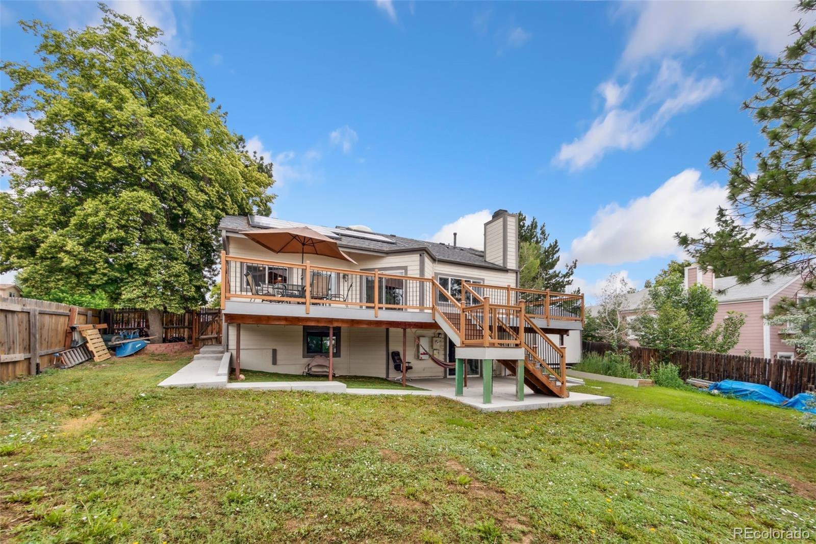 Welcome to this beautifully updated 4-level home on a spacious corner lot in the desirable Seven Lakes subdivision! Built in 1983, this well-maintained property combines comfort, efficiency, and location. Enjoy lower utility bills with a fully transferable leased solar system, keeping your summer electricity costs low. The home also features a new roof and gutters (installed in 2024), fresh exterior paint completed just 3 months ago, interior paint finished just last month and double-pane window throughout. You'll also love the new carpet (just installed) in both the primary and second bedroom upstairs. The AC and furnace are only 6 years old, offering year-round comfort and peace of mind. The highlight of the backyard is a spacious 575 sq ft Trex deck, ideal for hosting summer BBQs or simply relaxing outdoors. Located in the highly sought-after Cherry Creek School District, this home is just minutes from Quincy Reservoir, parks, shopping, dining, and public transportation—only a 3-minute walk to the bus stop and less than 5 miles to the light rail. Don’t miss out on this move-in-ready gem offering updates, convenience, and a prime location!