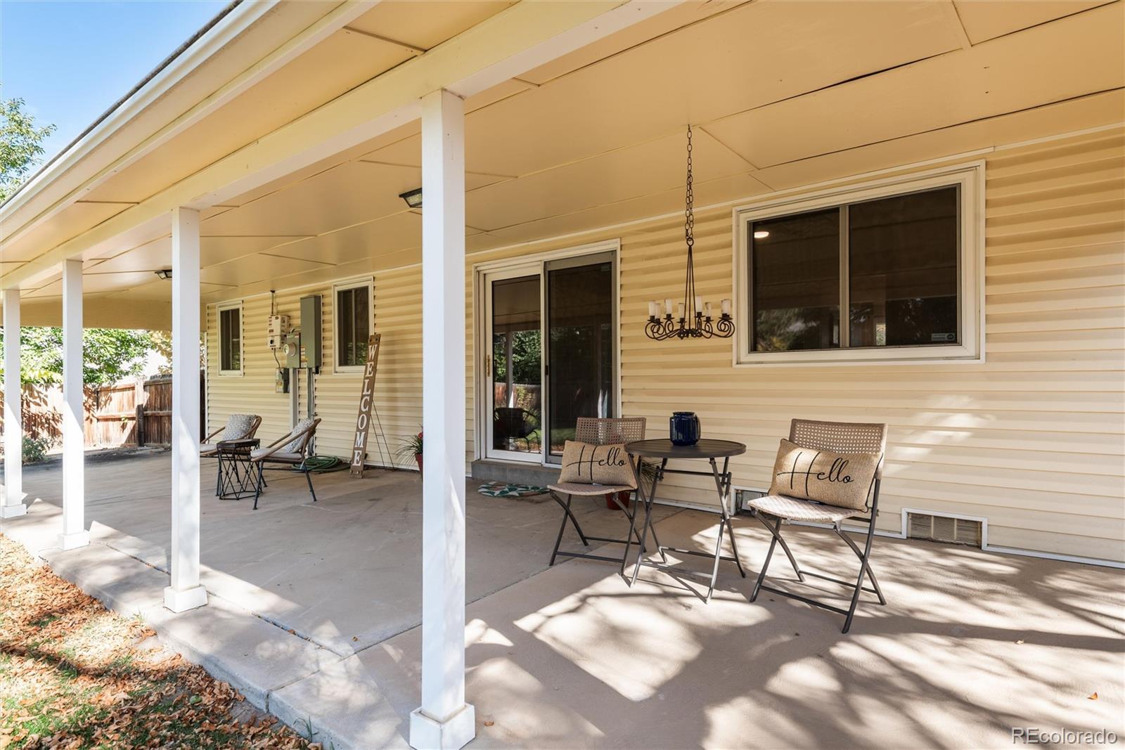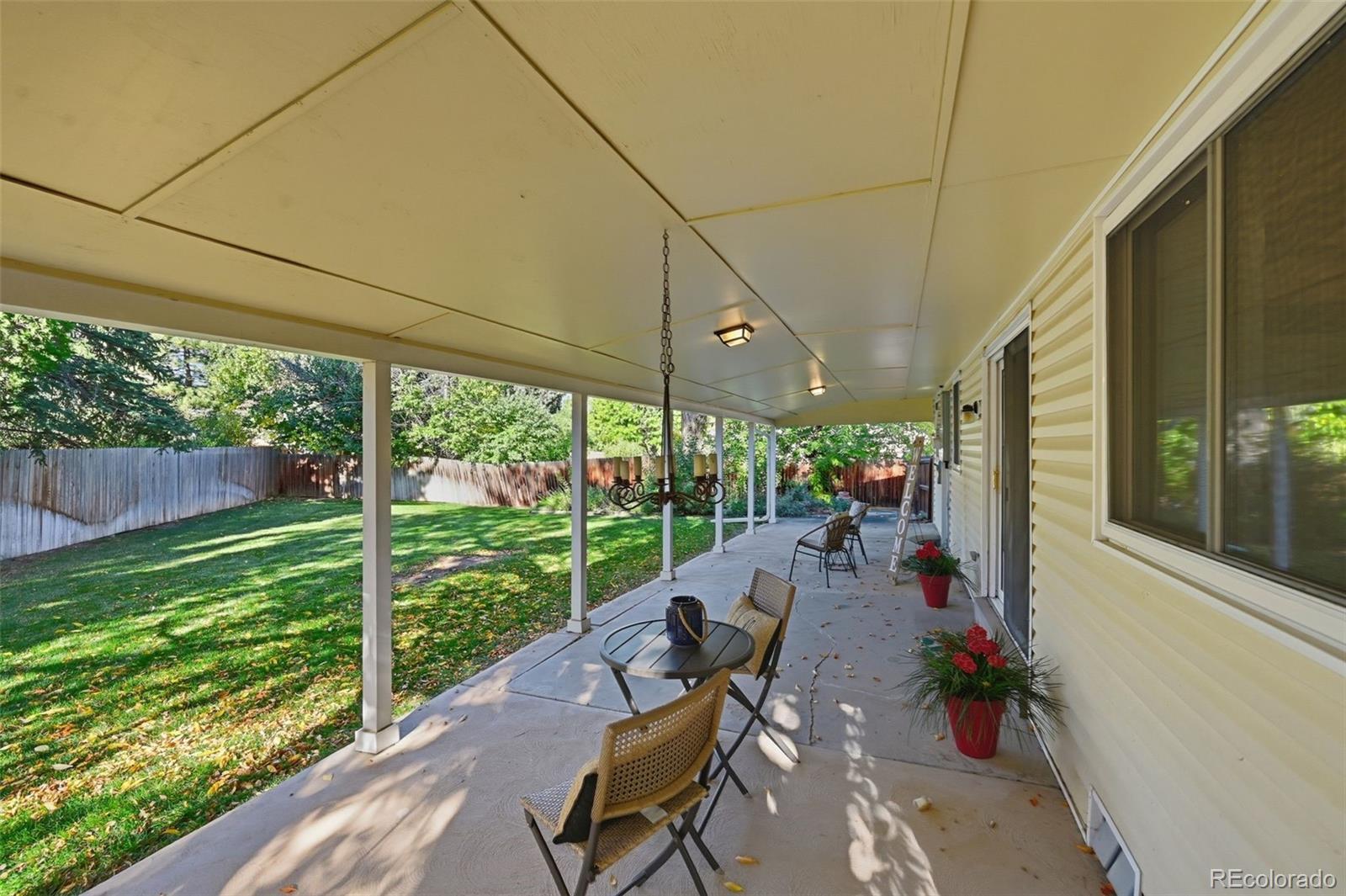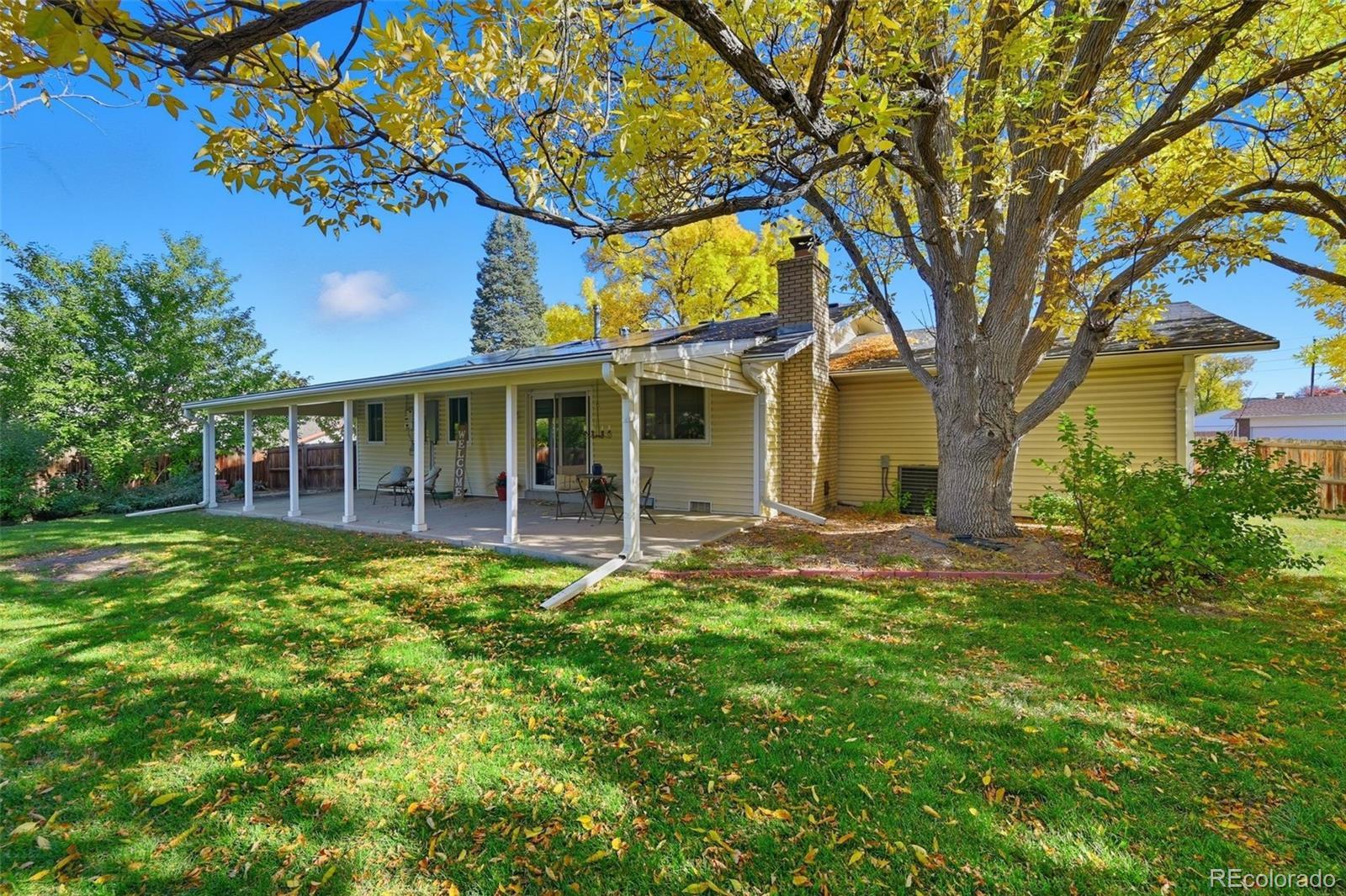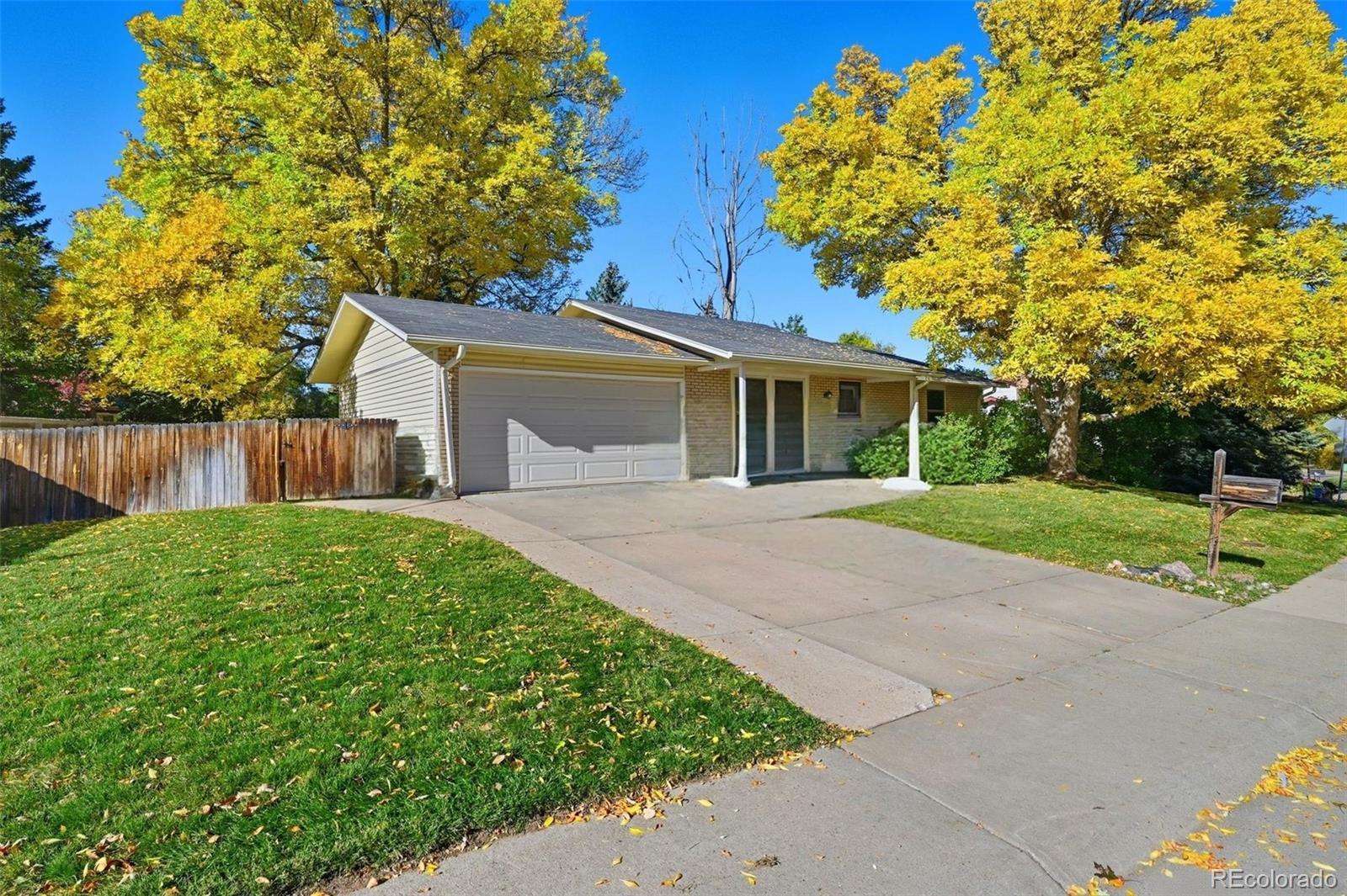 Welcome to this beautifully updated ranch in the highly sought-after Columbine West community. Located on a quiet, elevated street, this home sits on a generous 10,280 sq. ft. lot with mature trees, a fully fenced yard, a charming covered front porch, and a large covered back patio for private outdoor living and year-round enjoyment. Inside, the main level features vaulted ceilings, brand-new high-end vinyl plank flooring, new carpet in the bedrooms and hallway, fresh interior paint, upgraded lighting throughout, and new recessed lighting in the kitchen and living areas. The kitchen offers stainless steel appliances and newly updated cabinet hardware and eat-up island. It opens to the family room which offers a brick surround gas fireplace with wood mantel, vaulted ceilings with wood beam, ceiling fan, and nice window placement looking out onto the wonderful yard. The main floor also showcases two fully remodeled bathrooms with new vanities, toilets, lighting, flooring, mirrors, floating shelves, new flooring and new paint. The home also offers Newer windows, new ceiling fans in the bedrooms and central A/C for comfort and efficiency. The finished basement offers a large multi-purpose rec room, a half bath, utility space, and excellent storage—ideal for a home theater, game room, gym, hobby area, or future customization. The attached garage provides abundant storage and a convenient workbench. Located close to neighborhood parks, trails, schools, restaurants, grocery stores, and commuter routes, this home combines an updated interior, a standout lot, and an exceptional Littleton location!! FULLY PAID OFF SOLAR!!
