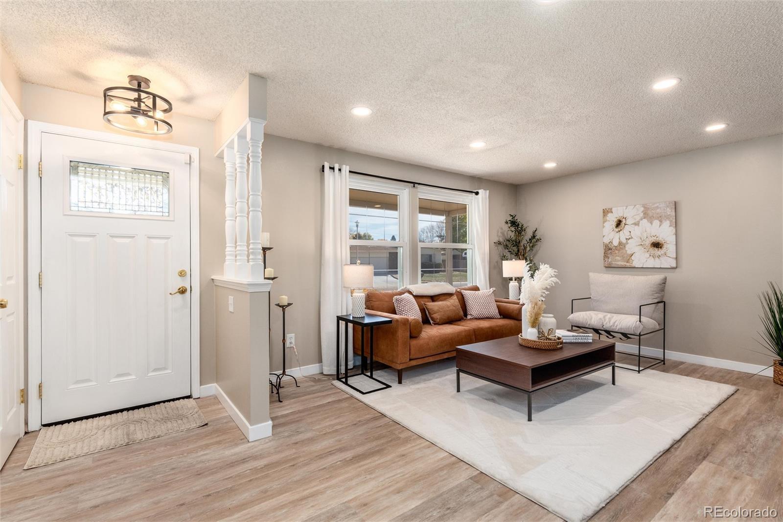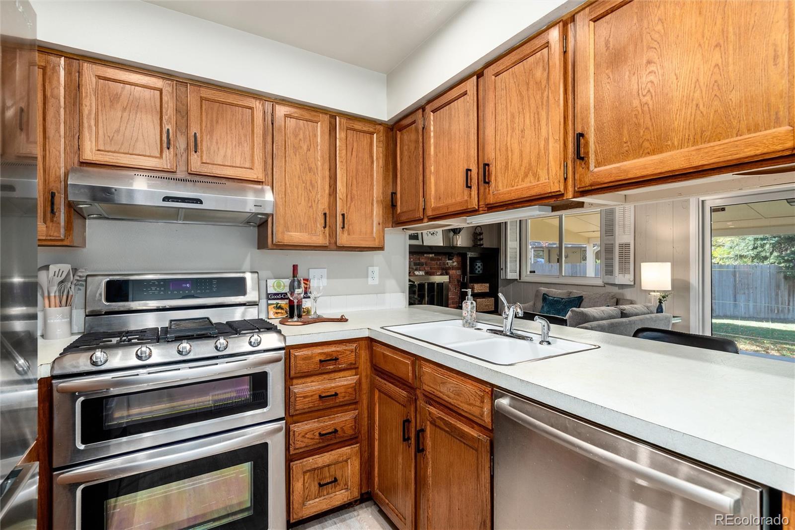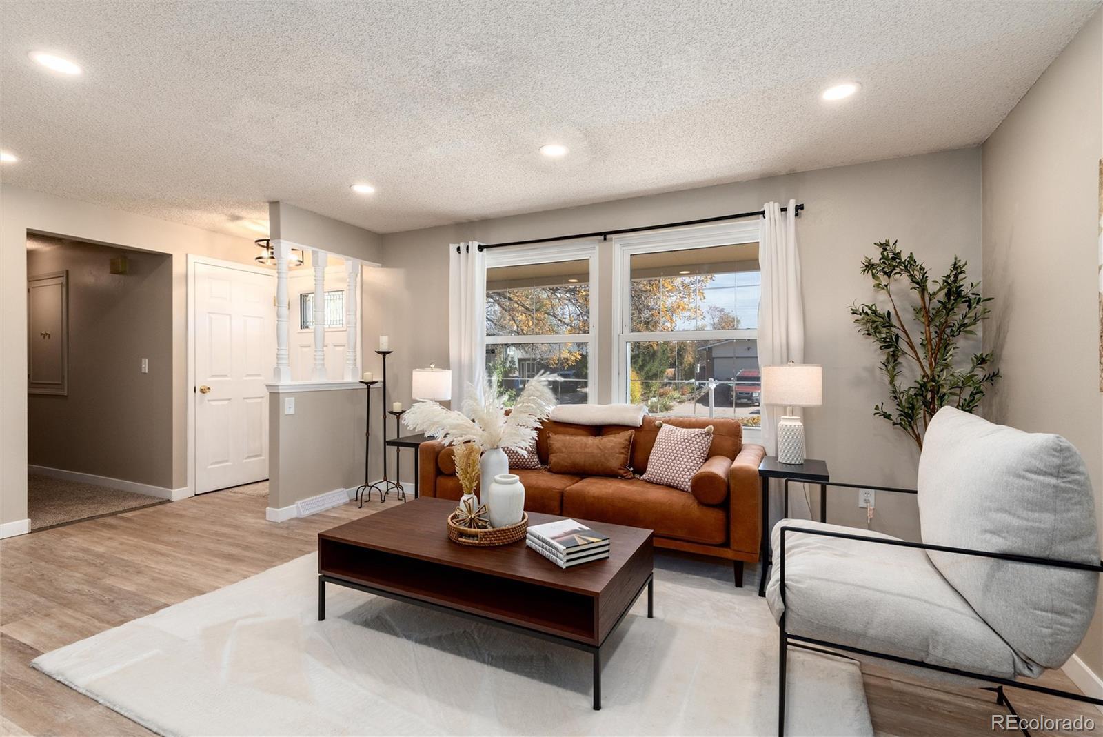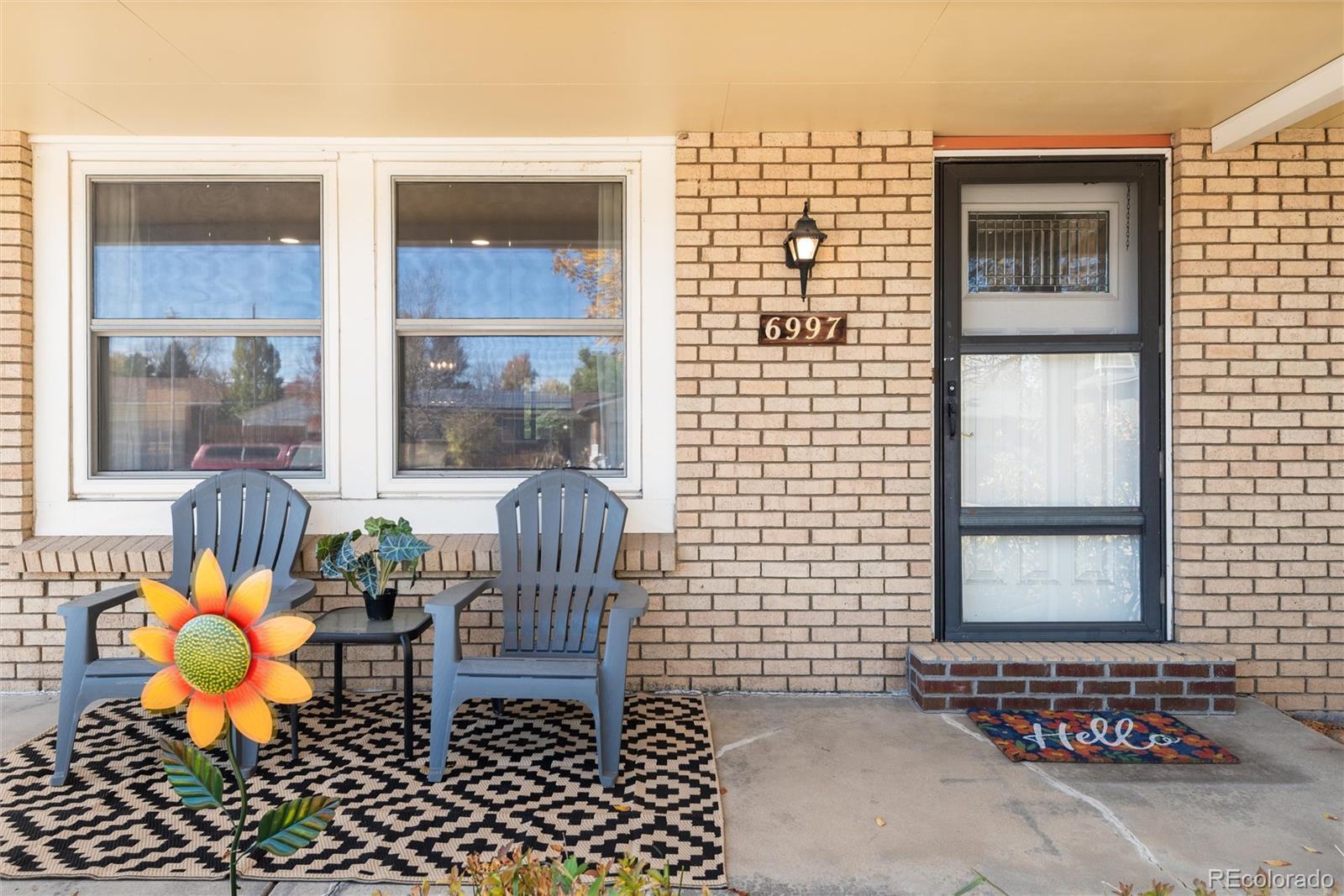 Welcome to this beautifully updated ranch in the highly sought-after Columbine West community. Located on a quiet, elevated street, this home sits on a generous 10,280 sq. ft. lot with mature trees, a fully fenced yard, a charming covered front porch, and a large covered back patio for private outdoor living and year-round enjoyment. Inside, the main level features vaulted ceilings, brand-new high-end vinyl plank flooring, new carpet in the bedrooms and hallway, fresh interior paint, upgraded lighting throughout, and new recessed lighting in the kitchen and living areas. The kitchen offers stainless steel appliances and newly updated cabinet hardware and eat-up island. It opens to the family room which offers a brick surround gas fireplace with wood mantel, vaulted ceilings with wood beam, ceiling fan, and nice window placement looking out onto the wonderful yard. The main floor also showcases two fully remodeled bathrooms with new vanities, toilets, lighting, flooring, mirrors, floating shelves, new flooring and new paint. The home also offers Newer windows, new ceiling fans in the bedrooms and central A/C for comfort and efficiency. The finished basement offers a large multi-purpose rec room, a half bath, utility space, and excellent storage—ideal for a home theater, game room, gym, hobby area, or future customization. The attached garage provides abundant storage and a convenient workbench. Located close to neighborhood parks, trails, schools, restaurants, grocery stores, and commuter routes, this home combines an updated interior, a standout lot, and an exceptional Littleton location!! FULLY PAID OFF SOLAR!!