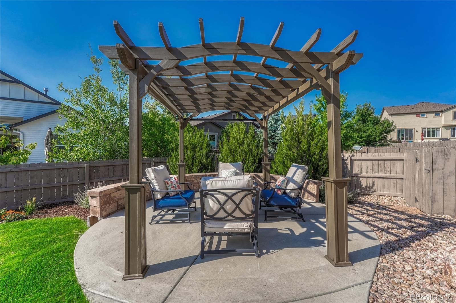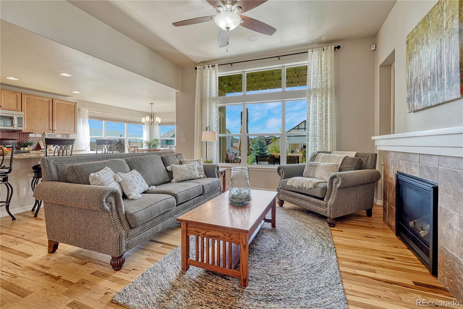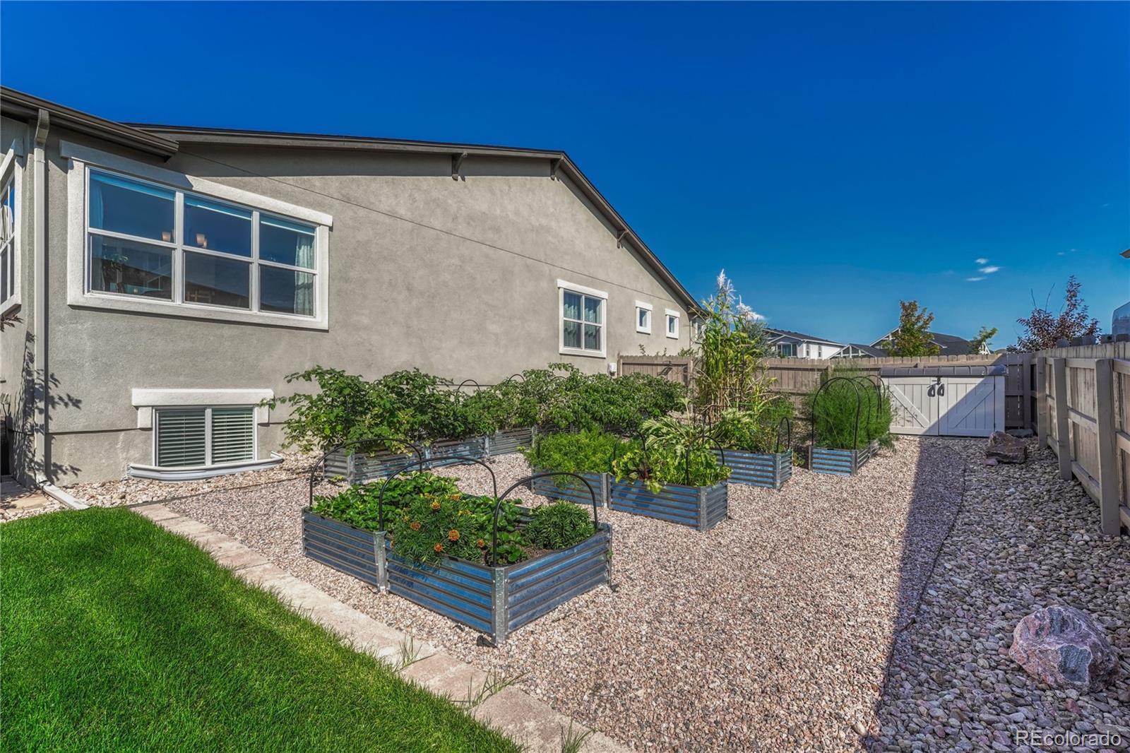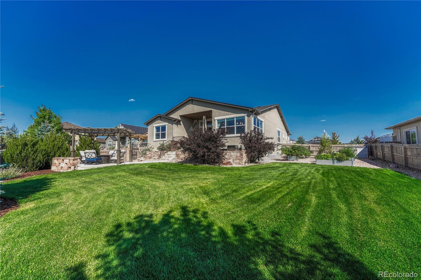 Exceptional Move-In Ready Home | Tranquil Gardens | Finished Basement | Pikes Peak Views! Idyllically nestled on a cul-de-sac lot in the quiet and friendly community of Cordera, this 5BR/3BA, 3,368sqft residence truly captures the essence of leisurely living. Boasting a brand-new roof, the rancher affords overflowing curb appeal with stacked stone exterior accents, immaculate landscaping, and neighborly sidewalks. Filled with an inviting aesthetic, the interior delights with high entry ceilings, gorgeous hickory floors, flowing layout, and an elegant formal dining room. Ideal for entertaining, the spacious living room dazzles with a well-appointed fireplace, high ceilings, and built-in bookcases. Explore the chef’s kitchen further to discover stainless-steel appliances, granite countertops, gas stove, soft-close ash cabinets, LG French door refrigerator, and breakfast bar center island. For casual meals, serve guests in the adjoining breakfast nook, which has unobstructed Pikes Peak views & energy-saving cellular shades. Outdoor parties are a breeze in the fenced-in backyard with a sizable patio, custom pergola, sprawling lawn, dog run, mature trees, and a side yard garden boasting produce-packed raised garden beds. Sleep easy in the main-level primary bedroom with vaulted ceilings, walk-in closet, & an attached en suite featuring a huge walk-in shower with bench and a dual sink vanity. All additional bedrooms are generously sized, while the finished basement impresses with an enormous rec room, wiring for surround sound, and abundant flex space. Other considerations: 2.5-car garage, laundry room, security system, Sonos surround sound (living room and patio), quick access to Air Force Academy, Shriever, and Peterson, close to shopping, hospitals, and entertainment, moments from I-25 for easy commutes to Denver and Downtown Colorado Springs, and more! Start living your best life in one of the most coveted communities in Colorado Springs. Schedule your tour TODAY!