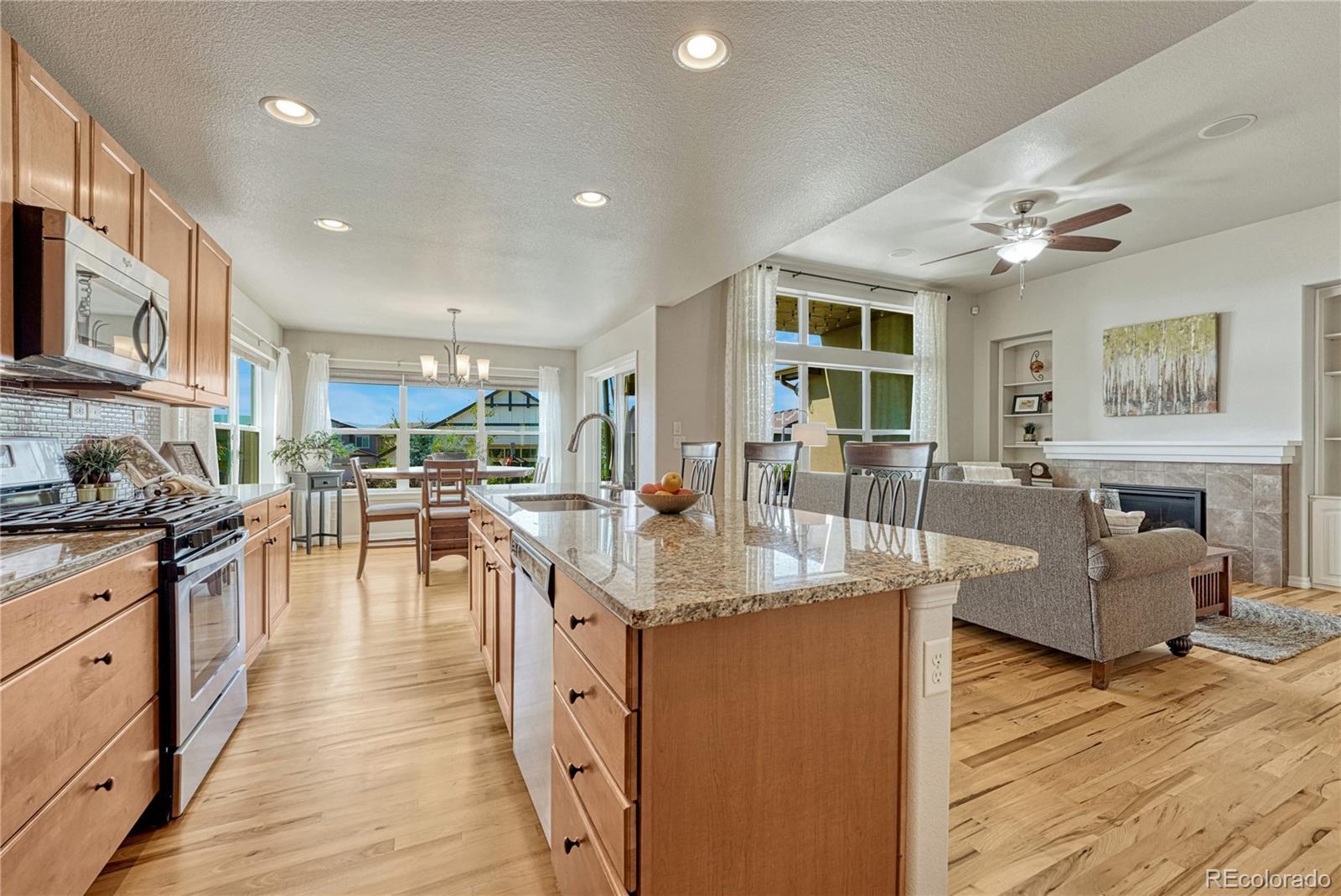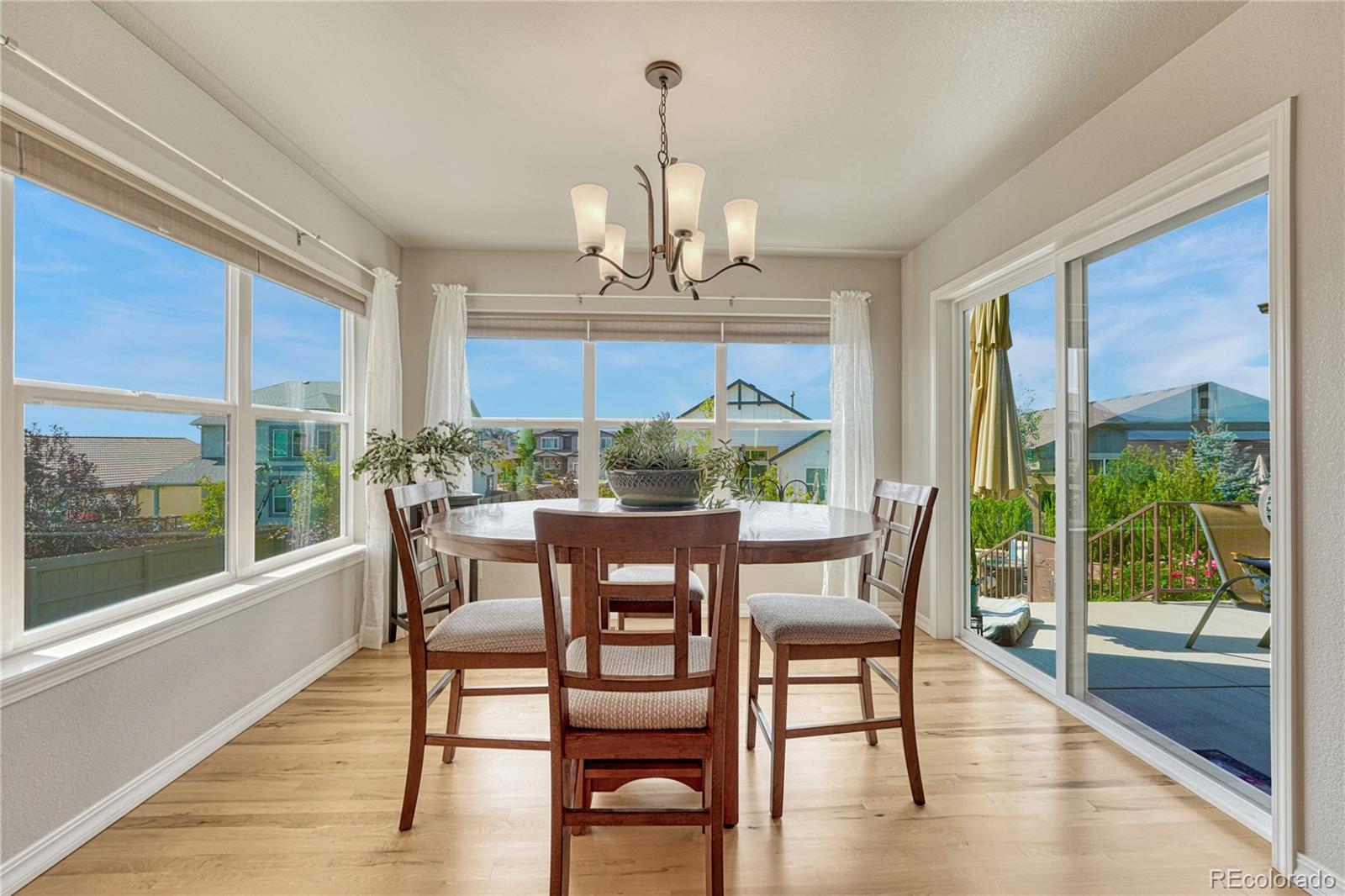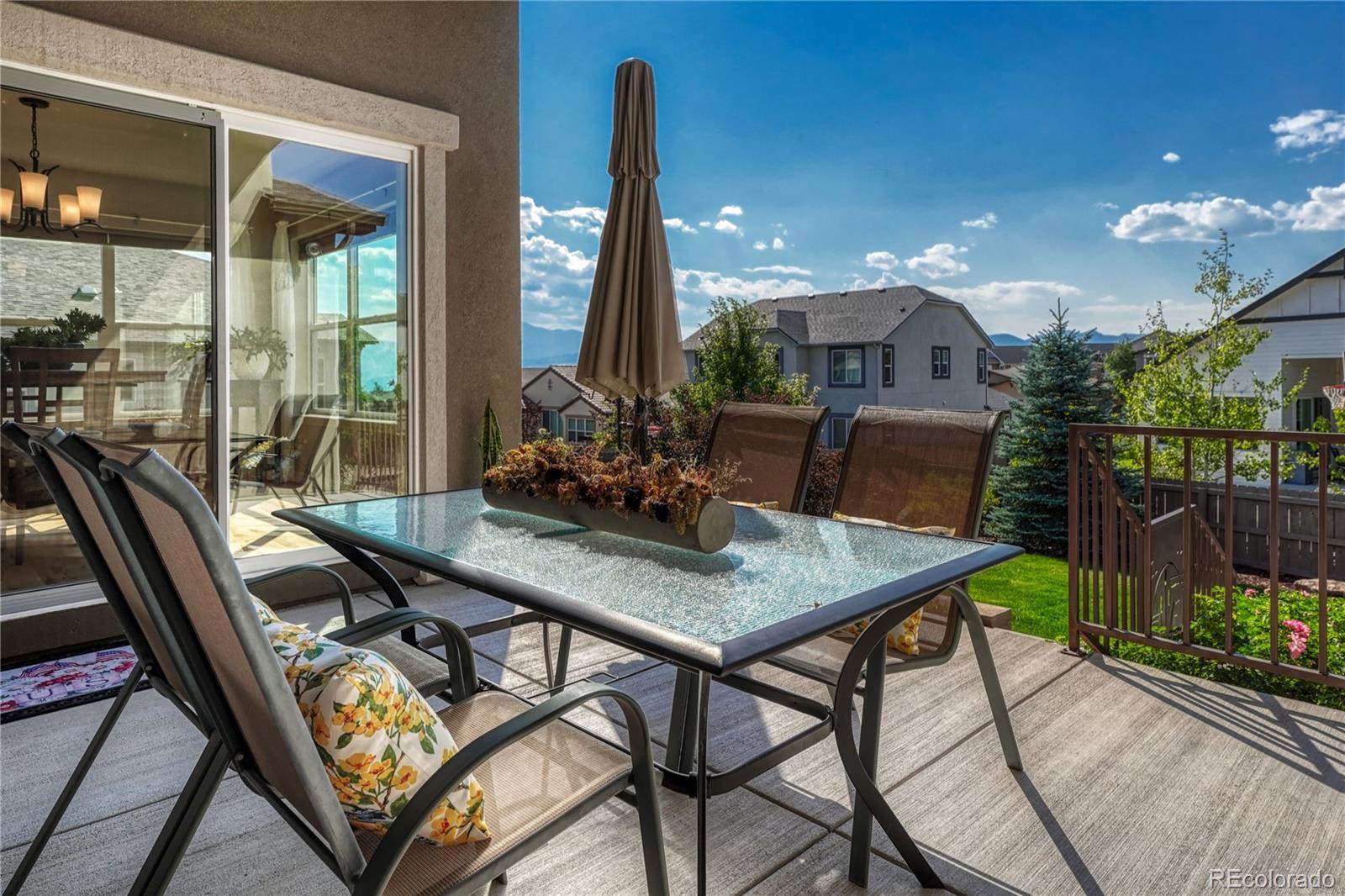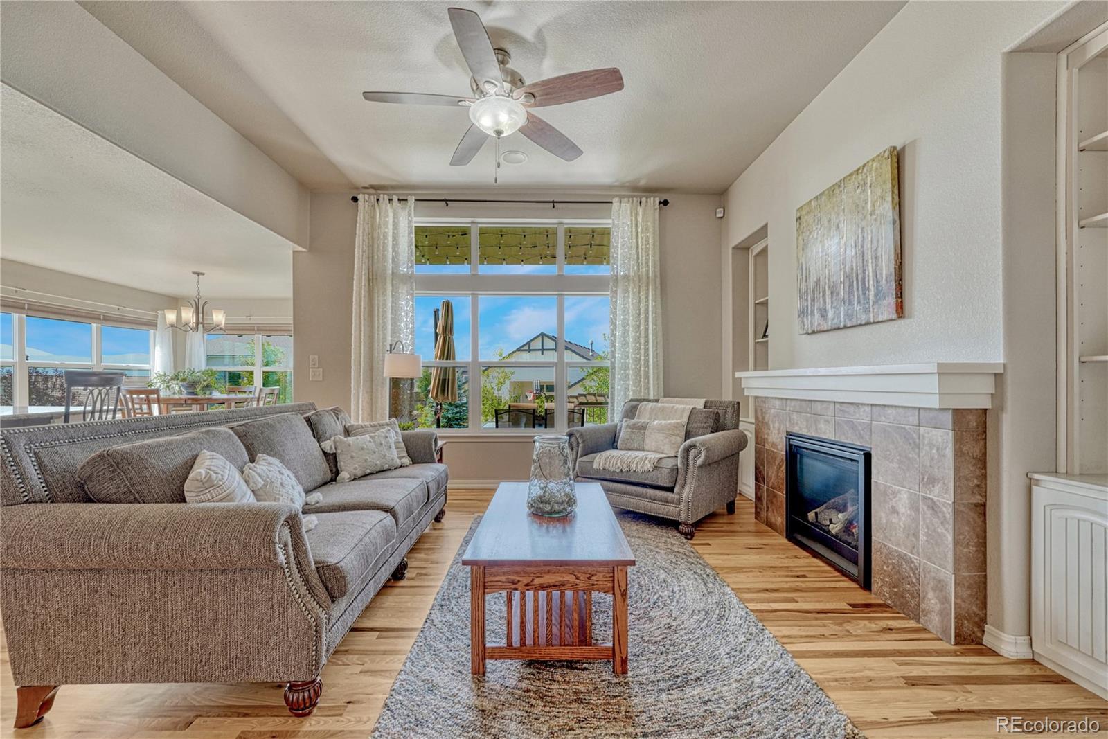 Exceptional Move-In Ready Home | Tranquil Gardens | Finished Basement | Pikes Peak Views! Idyllically nestled on a cul-de-sac lot in the quiet and friendly community of Cordera, this 5BR/3BA, 3,368sqft residence truly captures the essence of leisurely living. Boasting a brand-new roof, the rancher affords overflowing curb appeal with stacked stone exterior accents, immaculate landscaping, and neighborly sidewalks. Filled with an inviting aesthetic, the interior delights with high entry ceilings, gorgeous hickory floors, flowing layout, and an elegant formal dining room. Ideal for entertaining, the spacious living room dazzles with a well-appointed fireplace, high ceilings, and built-in bookcases. Explore the chef’s kitchen further to discover stainless-steel appliances, granite countertops, gas stove, soft-close ash cabinets, LG French door refrigerator, and breakfast bar center island. For casual meals, serve guests in the adjoining breakfast nook, which has unobstructed Pikes Peak views & energy-saving cellular shades. Outdoor parties are a breeze in the fenced-in backyard with a sizable patio, custom pergola, sprawling lawn, dog run, mature trees, and a side yard garden boasting produce-packed raised garden beds. Sleep easy in the main-level primary bedroom with vaulted ceilings, walk-in closet, & an attached en suite featuring a huge walk-in shower with bench and a dual sink vanity. All additional bedrooms are generously sized, while the finished basement impresses with an enormous rec room, wiring for surround sound, and abundant flex space. Other considerations: 2.5-car garage, laundry room, security system, Sonos surround sound (living room and patio), quick access to Air Force Academy, Shriever, and Peterson, close to shopping, hospitals, and entertainment, moments from I-25 for easy commutes to Denver and Downtown Colorado Springs, and more! Start living your best life in one of the most coveted communities in Colorado Springs. Schedule your tour TODAY!