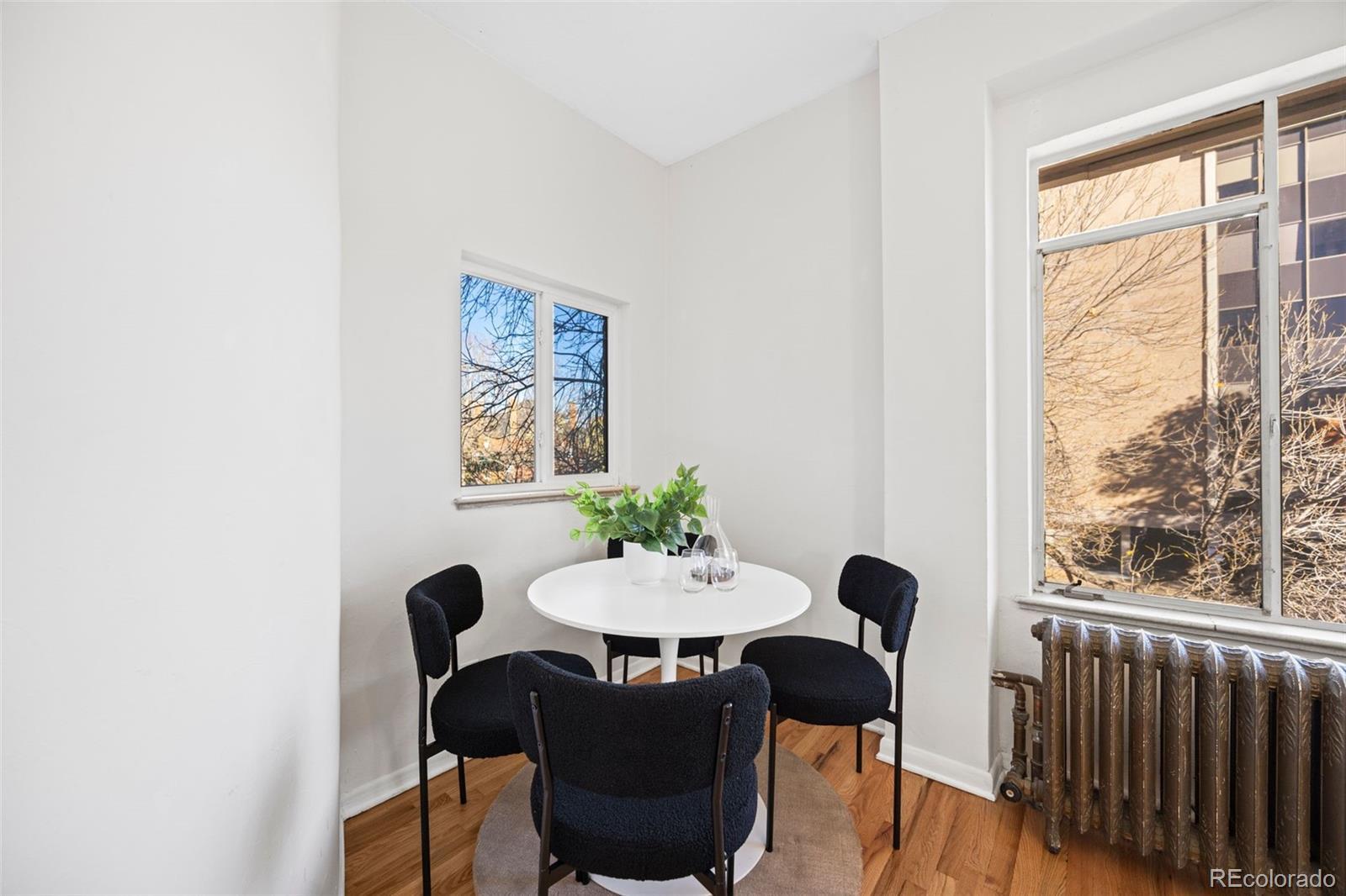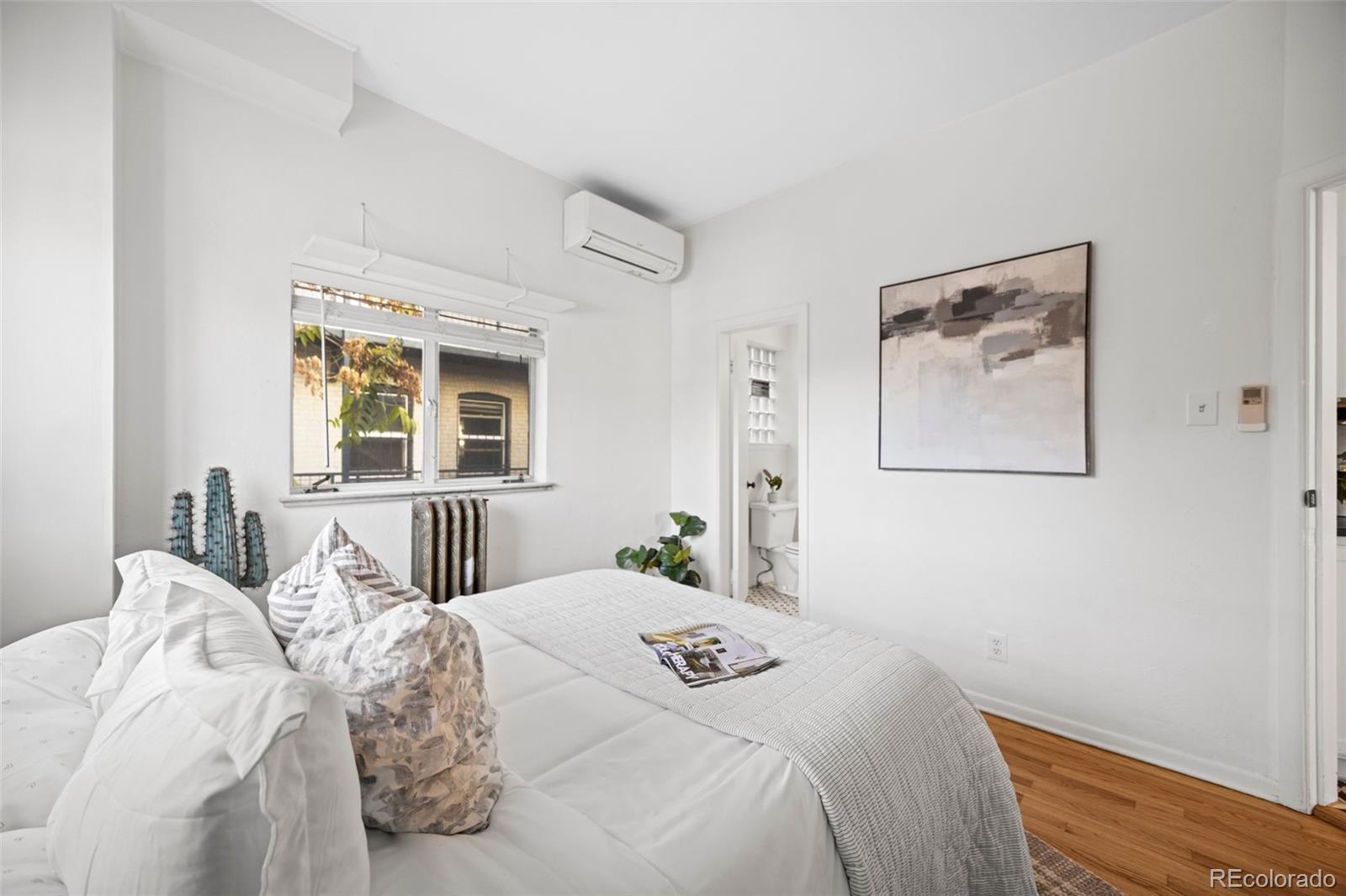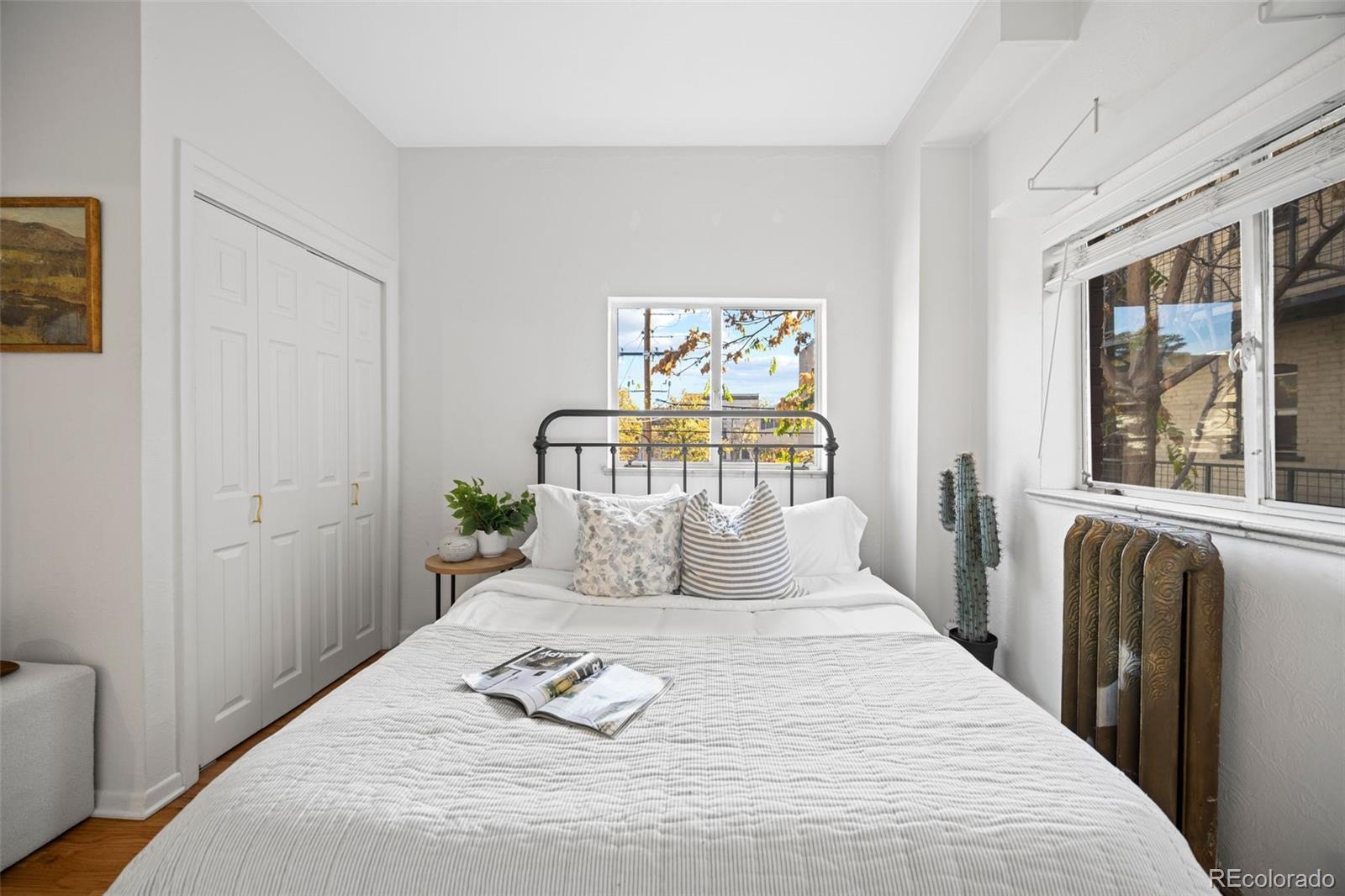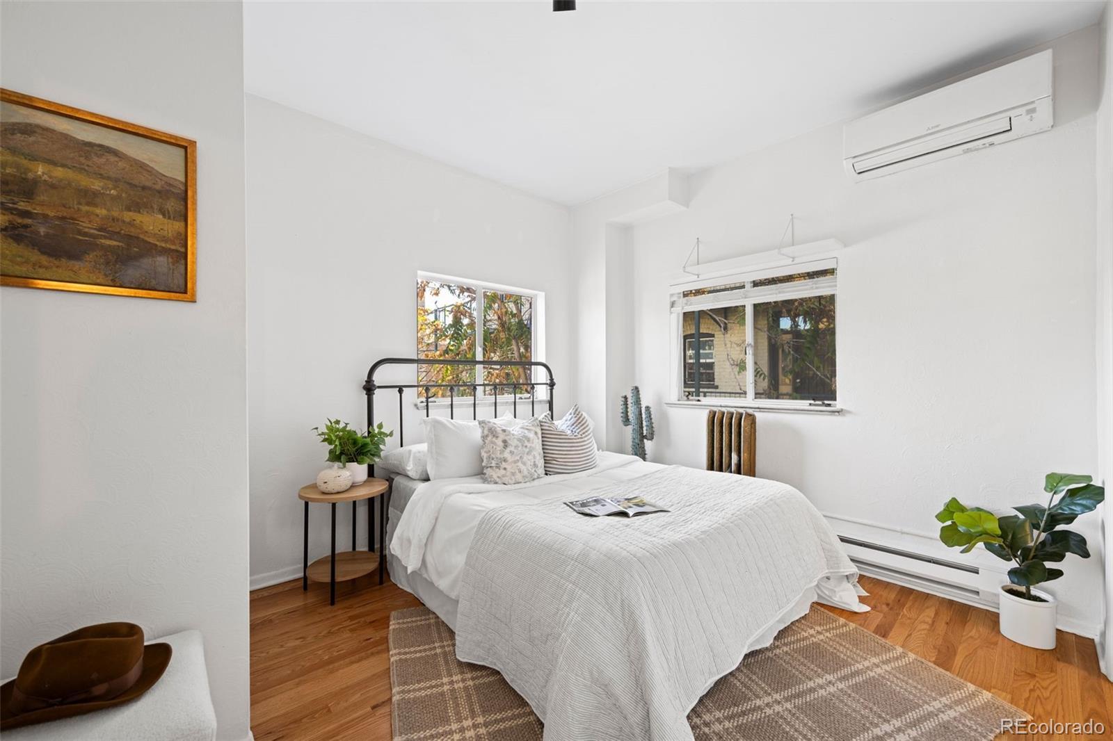 Step into the charm and character of downtown Denver with this beautifully maintained condo in a converted 1890s mansion. Original architectural details throughout give this home its unique personality, including a fully functional vintage cast-iron radiator, refinished hardwood floors, and thoughtfully preserved molding and trim, while modern touches such as new light fixtures, central air, and two full bathrooms bring convenience. The primary bedroom offers a private retreat with built-in shelving and a classic clawfoot tub, perfect for relaxing evenings, while ample natural light fills the main floor, highlighting the vintage features and creating a bright, inviting atmosphere. A small private deck provides a quiet outdoor space for morning coffee or fresh air. Recent updates, including refinished floors and bathtub, ensure the home is move-in ready, while the historic charm and unique details make it truly one-of-a-kind. Ideally located in the heart of downtown, you’re just steps from the Bluebird and Ogden Theaters, as well as restaurants, coffee shops, and shopping. This home combines historic character, modern comfort, and an unbeatable central location.