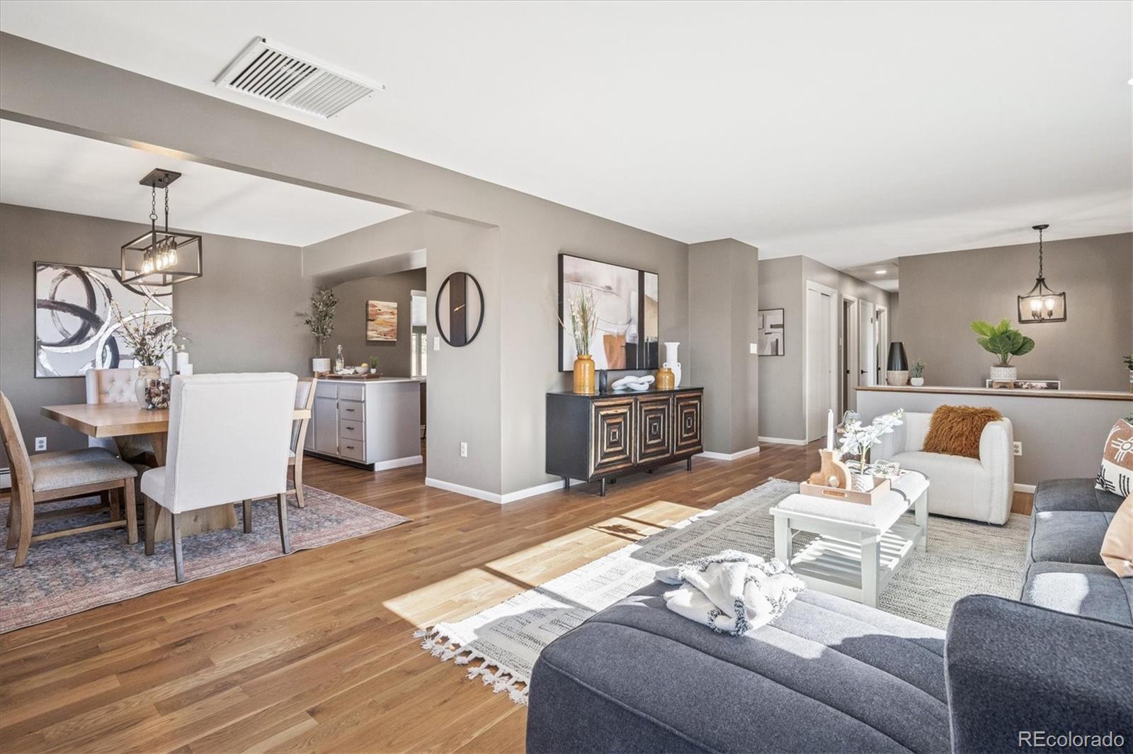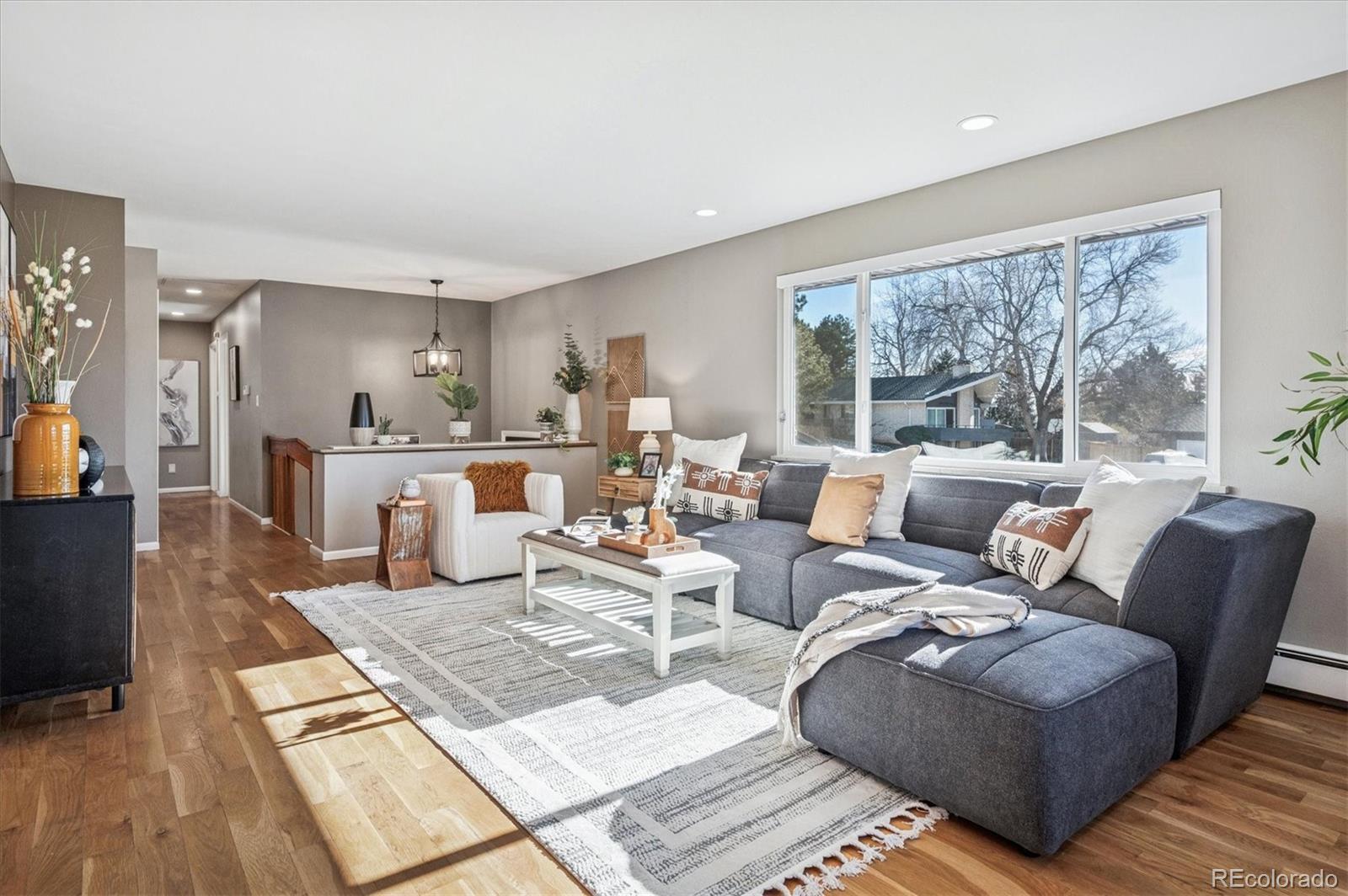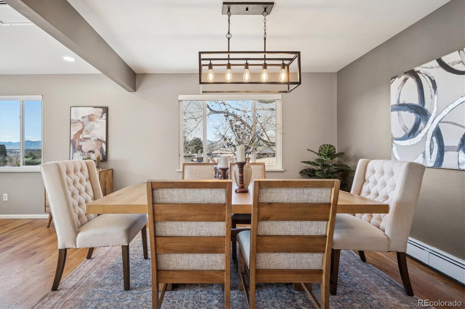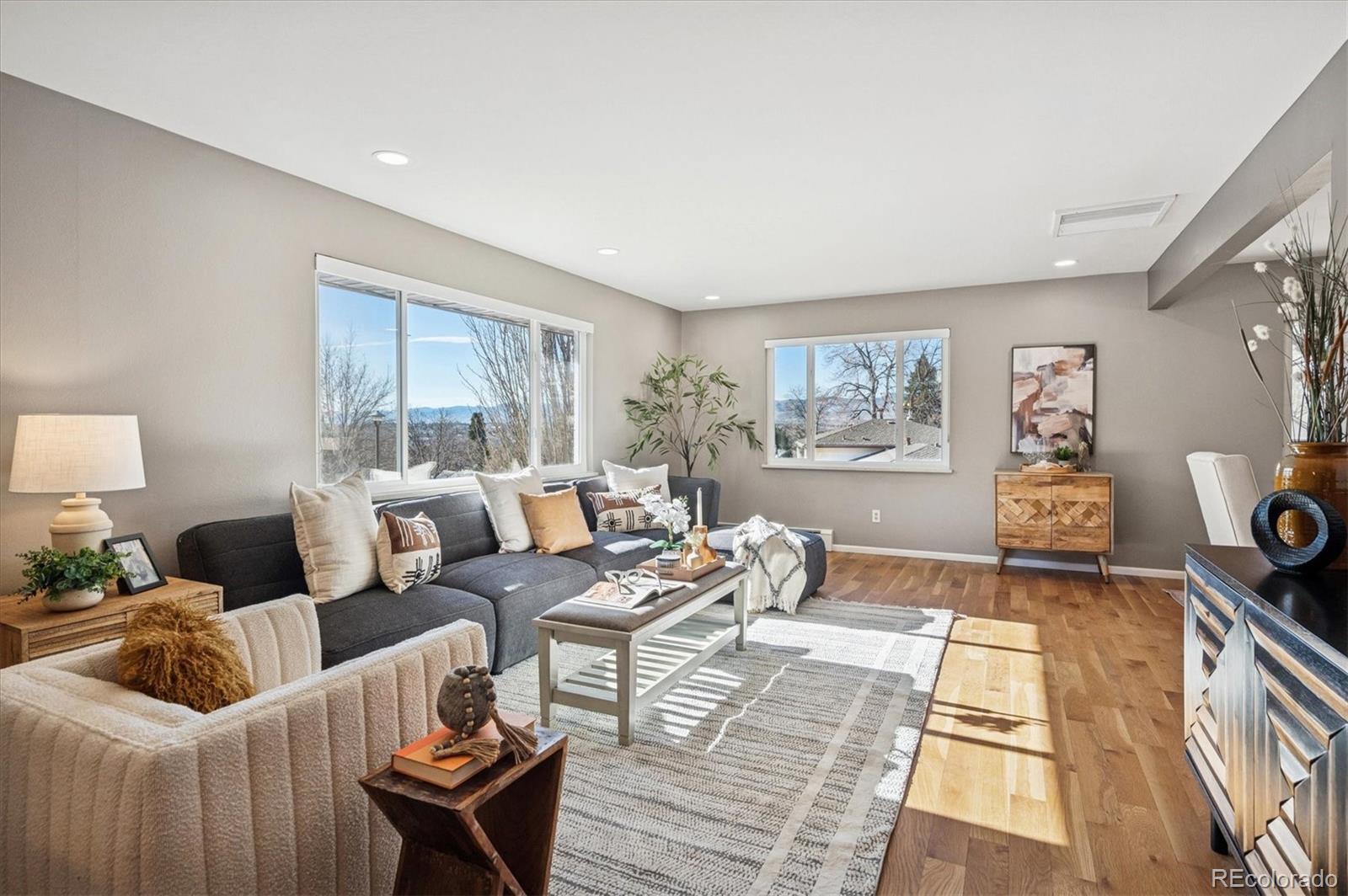 Set in the coveted Thraemoor neighborhood, this beautifully remodeled home offers spectacular mountain views and a inviting floor plan. Light-filled and thoughtfully designed, the home features rich hardwood floors, new carpet in bedrooms, and elegant living spaces ideal for both intimate living and grand entertaining. The formal dining room sets the stage for memorable gatherings, while the stunning remodeled kitchen showcases quartz countertops, a stylish designer backsplash, and upgraded cabinetry. The primary suite is a true retreat, featuring a spa-inspired bath with a glass-enclosed shower. Generous secondary bedrooms and a beautifully updated bath complete the upper level. The fully finished lower level is bathed in natural light and offers a spacious family room with an impressive fireplace and custom bar, along with a fourth bedroom, bath, and laundry—perfect for guests or extended living. Outdoor living shines with a covered patio and expansive, flat yard designed for entertaining and recreation. Additional highlights include a two-car attached garage and extensive updates such as newer roof, windows, gutters, soffits, fencing, paint, evaporative cooler, and garage doors. Ideally located with easy access to parks, trails, shopping, and dining, this exceptional home blends timeless elegance with modern comfort.