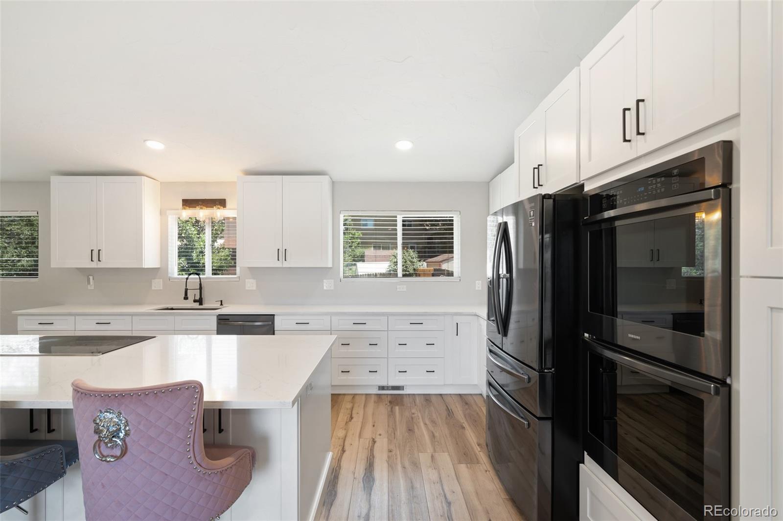 THIS IS THE ONE!!! Located in the heart of Village Seven—one of Colorado Springs’ most sought-after neighborhoods—this beautifully remodeled home offers the perfect blend of modern style and timeless comfort. Enjoy a large lot size, mature trees, and unbeatable access to parks, schools, and the Homestead Trail. Inside and out, no detail has been overlooked! Recent updates include a new roof and siding (2021), brand-new water heater (2025), fresh interior and exterior paint, and luxury vinyl plank flooring throughout the main levels. The redesigned, gorgeous kitchen is a true standout, featuring custom soft-close cabinetry, abundant pantry and drawer storage, sleek new appliances, and designer lighting and fixtures. All bathrooms have been stylishly renovated with new tile, vanities, tub, and fixtures, while recessed lighting and modern finishes elevate every space. With nearly 3,000 square feet, the layout includes 4 spacious bedrooms, 2.5 baths, a dedicated laundry room with cabinetry for additional storage, and multiple living areas perfect for gathering or relaxing. The lower-level family room features a cozy wood-burning fireplace and walk-out to the back patio! Upstairs, you’ll find all four bedrooms with plush patterned carpeting, including a spacious primary suite with a beautifully tiled walk-in shower. The finished basement adds even more flexible living space, complete with brand new carpeting and a multitude of options! The fully landscaped backyard with decorative rock, mulch, and a wood burning fire pit is the perfect haven for entertaining and family fun! Beautifully and meticulously updated, this home combines a fantastic location, space, and style—just steps from everything Village Seven has to offer. Plus, it's located within the highly regarded District 11 school system and offers quick access to the Powers Corridor for shopping, dining, and everyday convenience.