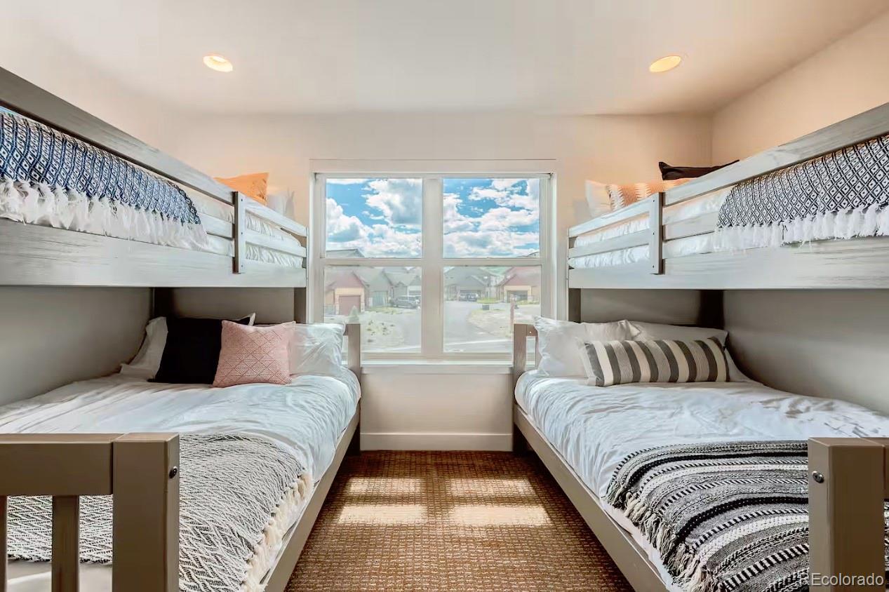 Light filled stunning four-bedroom, three-and-a-half-bathroom residence, completed in 2022, showcases top-of-the-line finishes such as quartz countertops, genuine hardwood floors, and custom tile work. The open-concept great room features elegant lighting fixtures and a cozy fireplace, seamlessly blending sophistication with comfort. With spacious living areas and four generously sized bedrooms which include 3 king bed suites, it’s perfect for families and guests, providing ample room for everyone. It comes fully furnished with designer furniture, includes an EV charger, a hot tub, grill, outdoor furniture, custom blinds, nest camera, doorbell, Yale keypad at entry, and even 3 bicycles, ensuring it is exceptionally well-equipped for you and your visitors. A delightful children’s nook located on the first floor next to the living room offers a perfect play or nap space for little ones. With three king suites and one bunk room the home accommodates a total of seven beds, and comfortably sleeps 12 guests. Situated within the esteemed Grand Elk Golf Community, this property includes a membership that grants access to various amenities, including a golf course, swimming pool, hot tub, and restaurant. Renowned for its outstanding quality and meticulous attention to detail, it has earned a guest-favorite designation on Airbnb, marking it as one of the most beloved homes on the platform. Turn key ready with no exclusions.