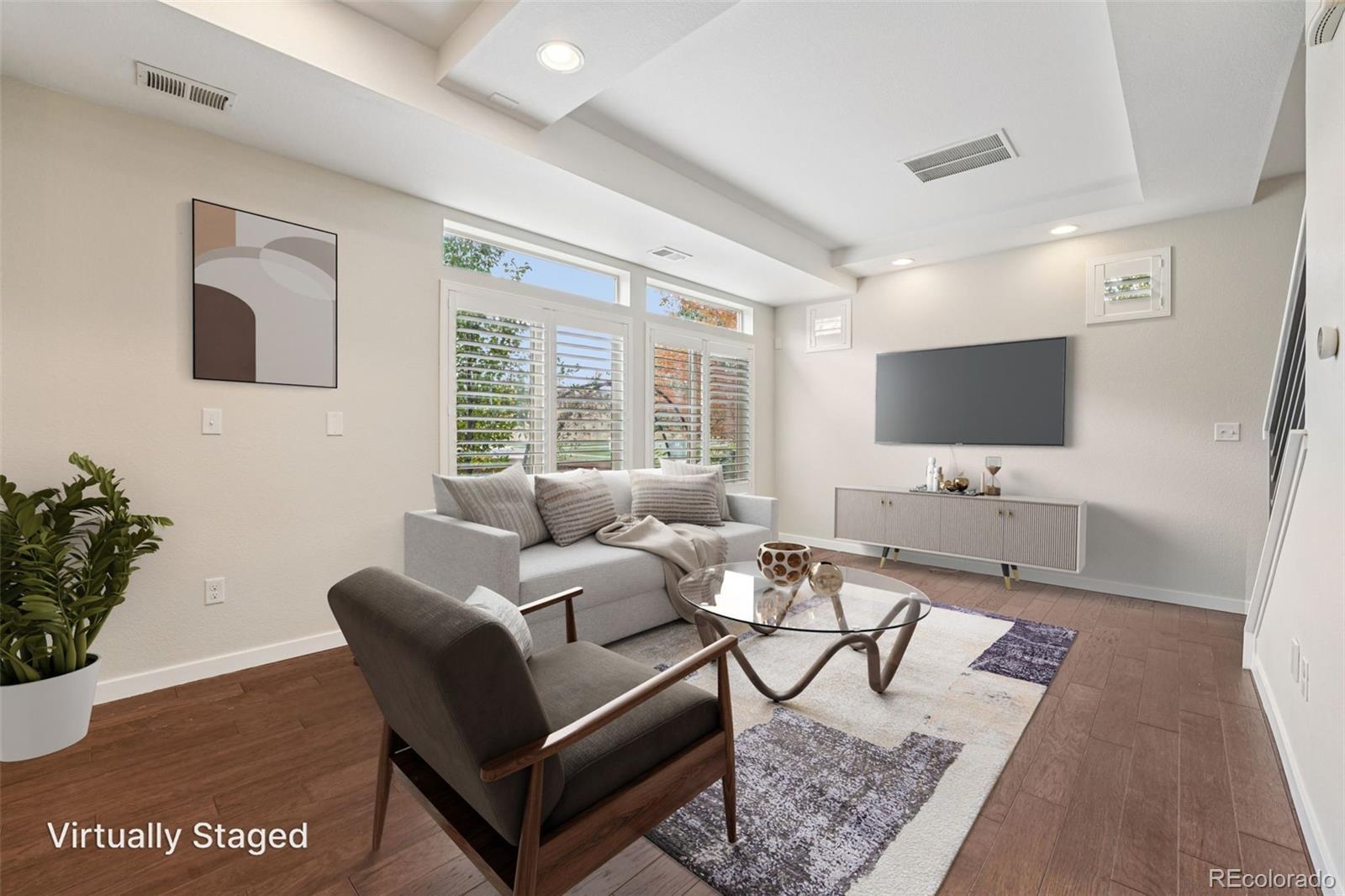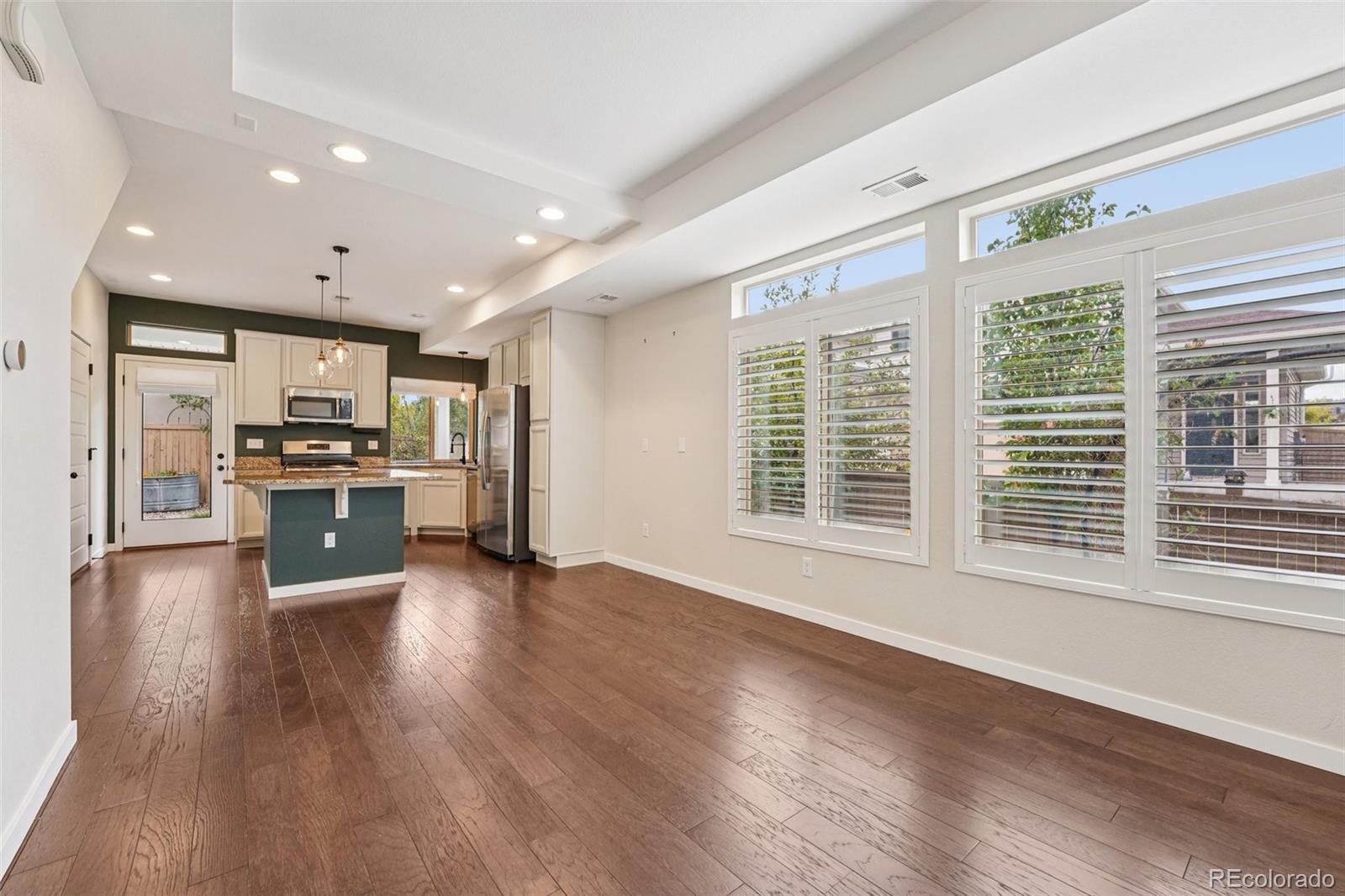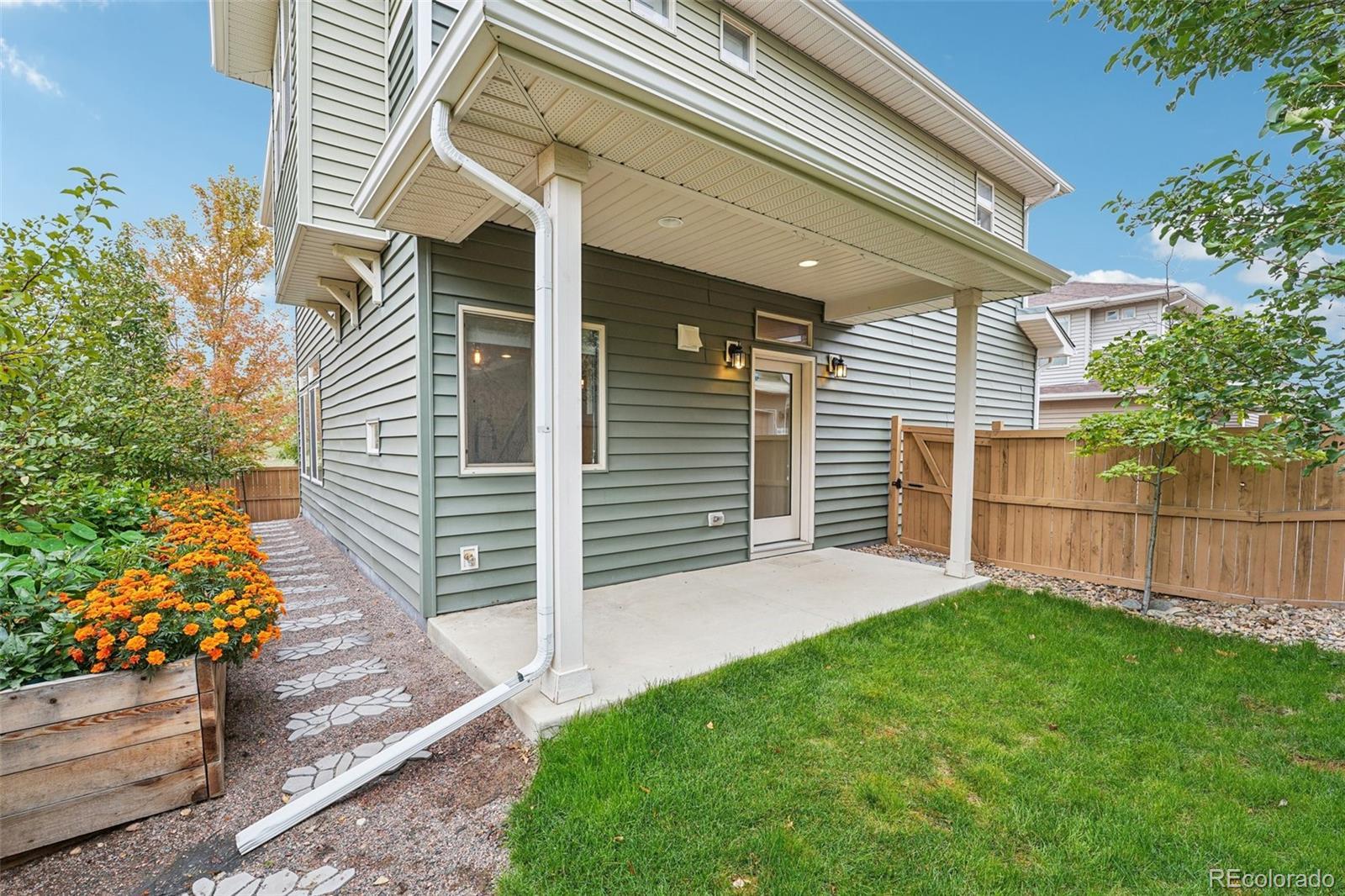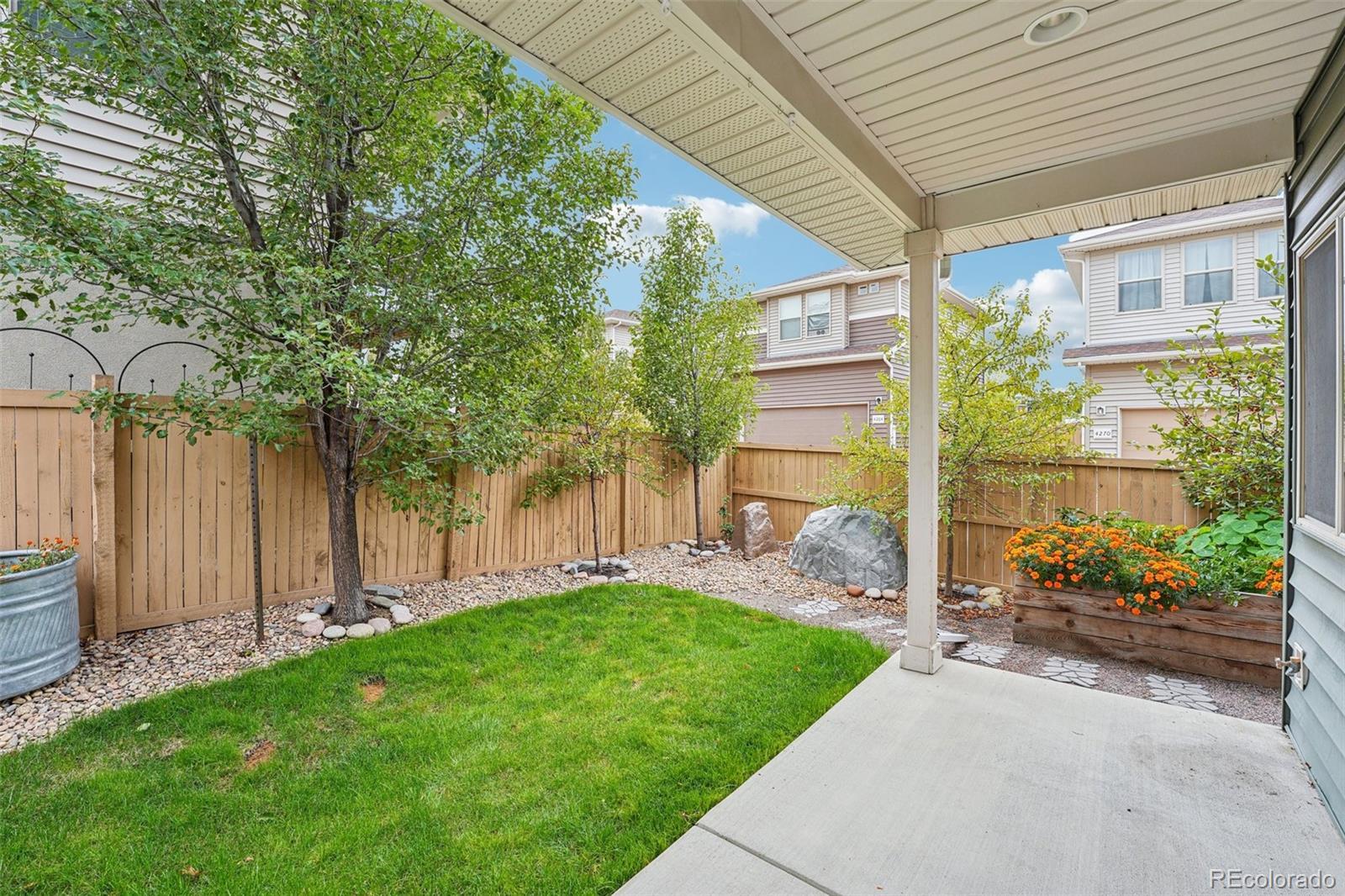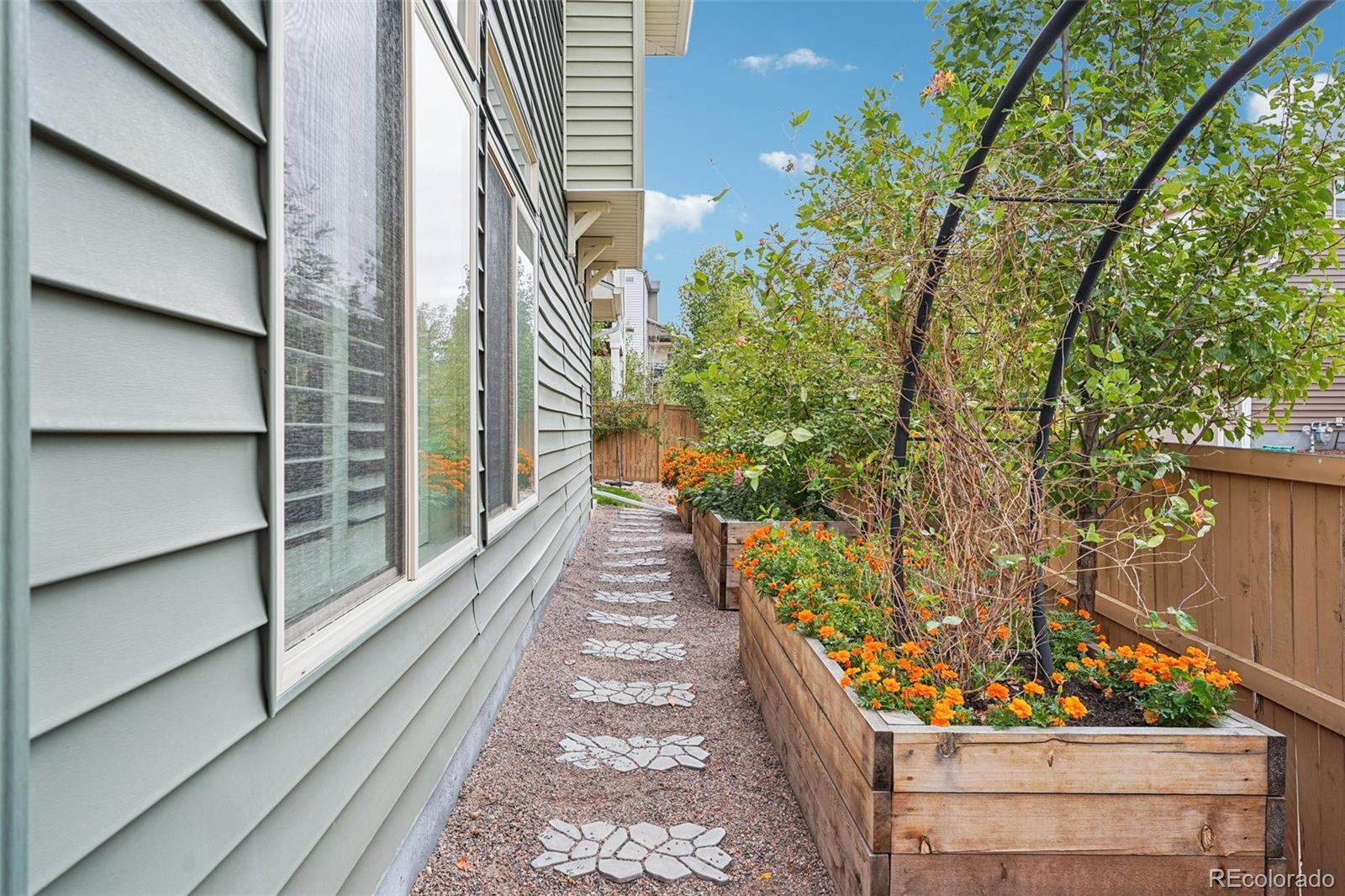 Discover an inviting, thoughtfully upgraded home in The Meadows, ideally positioned on a corner lot across from open space and just steps from walking and biking trails. The bright, open main level is designed for effortless living and entertaining, with the living room, dining area, and kitchen seamlessly connected. Warm wood floors, granite countertops, upgraded cabinetry and appliances, and classic plantation shutters create a timeless and refined feel throughout. Upstairs, two generously sized bedrooms and two bathrooms are complemented by a versatile loft and convenient upper-level laundry, offering comfort and flexibility. The private, tree-lined backyard is a peaceful retreat featuring custom cedar garden boxes with organic soil, drip irrigation for each tree, a lush landscaped lawn, and a custom trellis. It is the perfect setting to enjoy Colorado’s natural beauty along with local deer and birdlife. Additional highlights include designer lighting, a fully finished and insulated garage with built-in shelving, and smart home features such as pre-wired surround sound, a video doorbell, security system, and smart thermostat. Filled with natural light and located near Douglas County schools, The Promenade, and The Meadows shops, dining, and entertainment, this home offers an exceptional blend of style, privacy, and convenience.