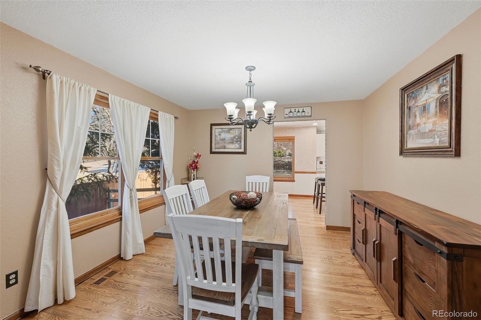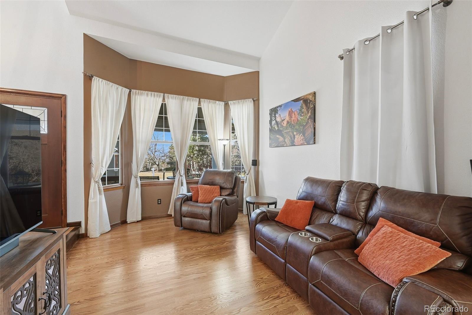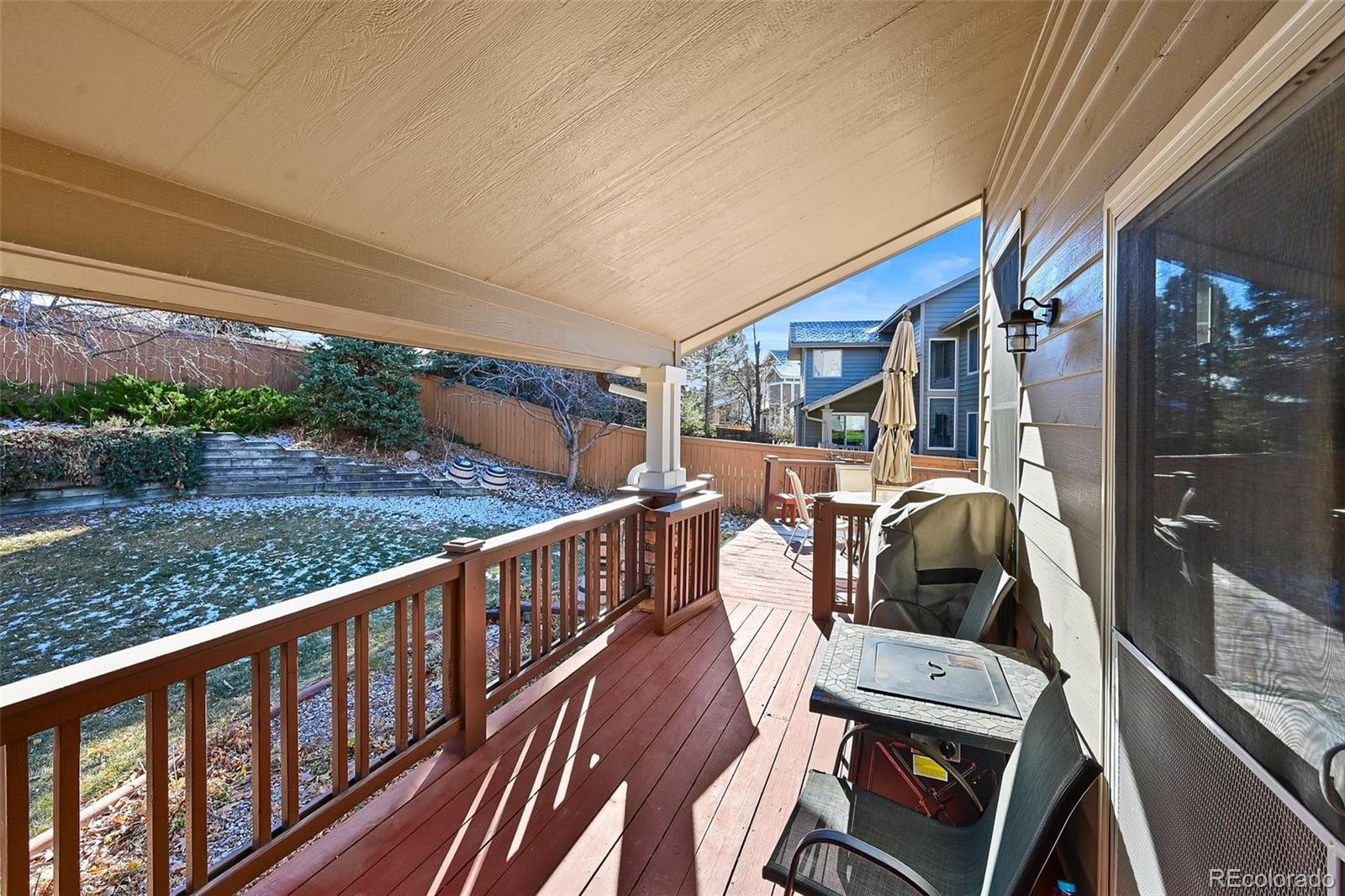 Spacious home in Highlands Ranch coming soon and showings start January 1st! Welcome to this beautifully updated, west-facing Highlands Ranch home filled with natural light, vaulted ceilings, and warm designer touches throughout. Wood floors and striking exposed brick accents at the dining room creates an inviting first impression. Leading into a light and bright kitchen featuring new quartz countertops, a new backsplash, a large island, pantry cabinet, and eat-in dining area. The updated gas fireplace with an elegant mantle anchors the living space, making it perfect for both everyday living and entertaining. The spacious primary suite is a true retreat! The stained-glass detail, a sitting room, walk-in closet, and a beautifully updated five-piece bathroom with soaking tub – truly relaxing primary suite! Enjoy mountain views from the front yard and an upstairs west-facing bedroom. The finished basement offers flexible living space with a rec room, bedroom area, bathroom with shower and sauna, and generous storage. Outdoor living shines with a private backyard featuring a large deck—both covered and uncovered—with built-in seating and a gas line for grilling. The oversized three-car garage includes ceiling storage, a service door, and a refrigerator that is included. Additional highlights include a large, well-organized laundry room with ample storage (washer and dryer included), and easy access to trails and parks, including the newly renovated Toepfer Park. Conveniently located near Highlands Ranch Parkway, University Boulevard, C-470, I-25, and light rail. Access to four Highlands Ranch recreation centers offering indoor and outdoor pools, fitness areas, tennis, pickleball, and more. Buyer to verify all info.