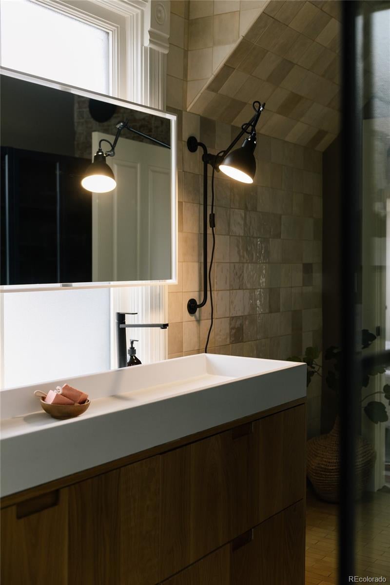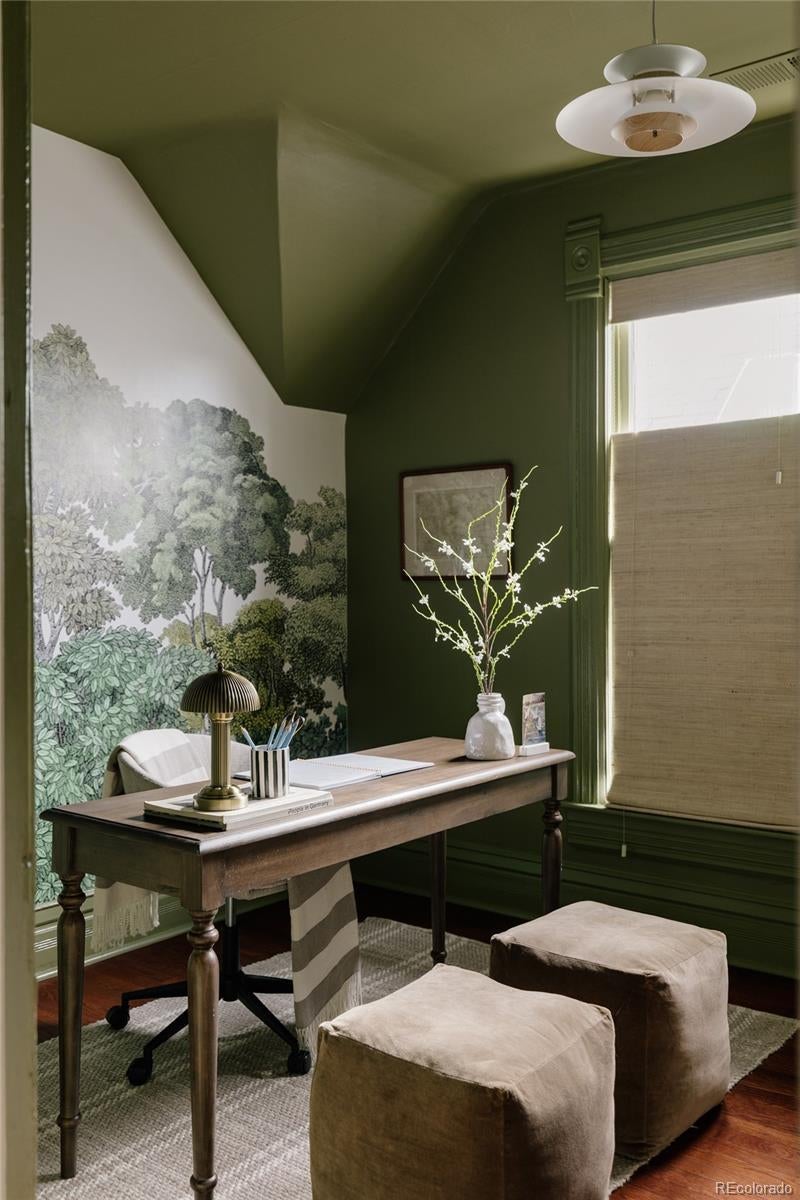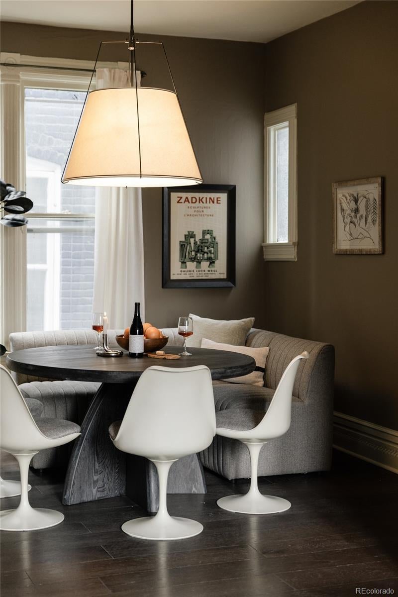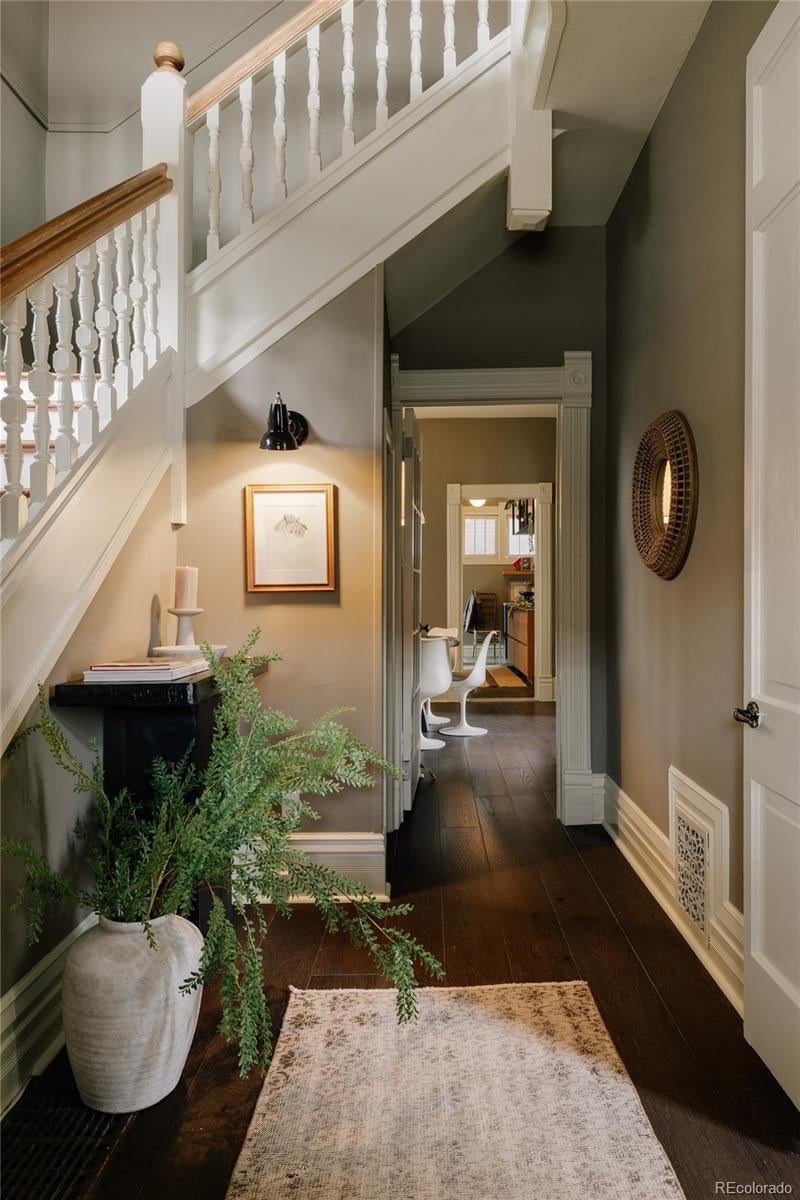 A reimagined Queen Anne Victorian in the heart of Baker, this home blends historic character with a design-forward aesthetic. Original details are thoughtfully restored while every system, surface, and finish has been elevated with modern intention. Soaring ceilings, oversized windows, fresh paint, and a stunning original staircase set the tone for a home that feels timeless. Layered textures, sculptural lighting, and smart use of space shape generous living, dining, and family rooms that are ideal for entertaining. The designer kitchen features paneled appliances, stone countertops, a custom-lit range hood, and grain-matched white oak cabinetry by Jeff Faine, designed by Sovereign. Olive Zellige tile, integrated storage, and a built-in sparkling water tap complete the space. Nearby, a bright laundry room adds excellent storage, while a jewel box 3/4 bath offers a marble sink and designer tile shower tucked under the front stairs. Upstairs, a color-drenched olive reading nook framed by Queen Anne windows overlooks the neighborhood. Three spacious bedrooms include a light-filled front room and a private primary suite. The primary bath features a custom oak trough vanity, double sinks, striking tile, custom storage, and a Crittal-style framed wet room with soaking tub and natural light. A wallpapered third bedroom works well as an office, guest room, or nursery. The hall bath includes modern tile, an elegant vanity, and custom saffron storage. The original, hidden back staircase improves flow and preserves the original doors. The fenced yard is ready for summer evenings, entertaining, and pets. Every inch of this home feels curated for the architecture lover with flip fatigue who wants thoughtful, modern function, bold color, and elevated design. Located just around the corner from some of the best blocks of South Broadway, this is one of Baker’s most distinctive and thoughtfully finished homes, with a presence that feels straight out of an architectural magazine.