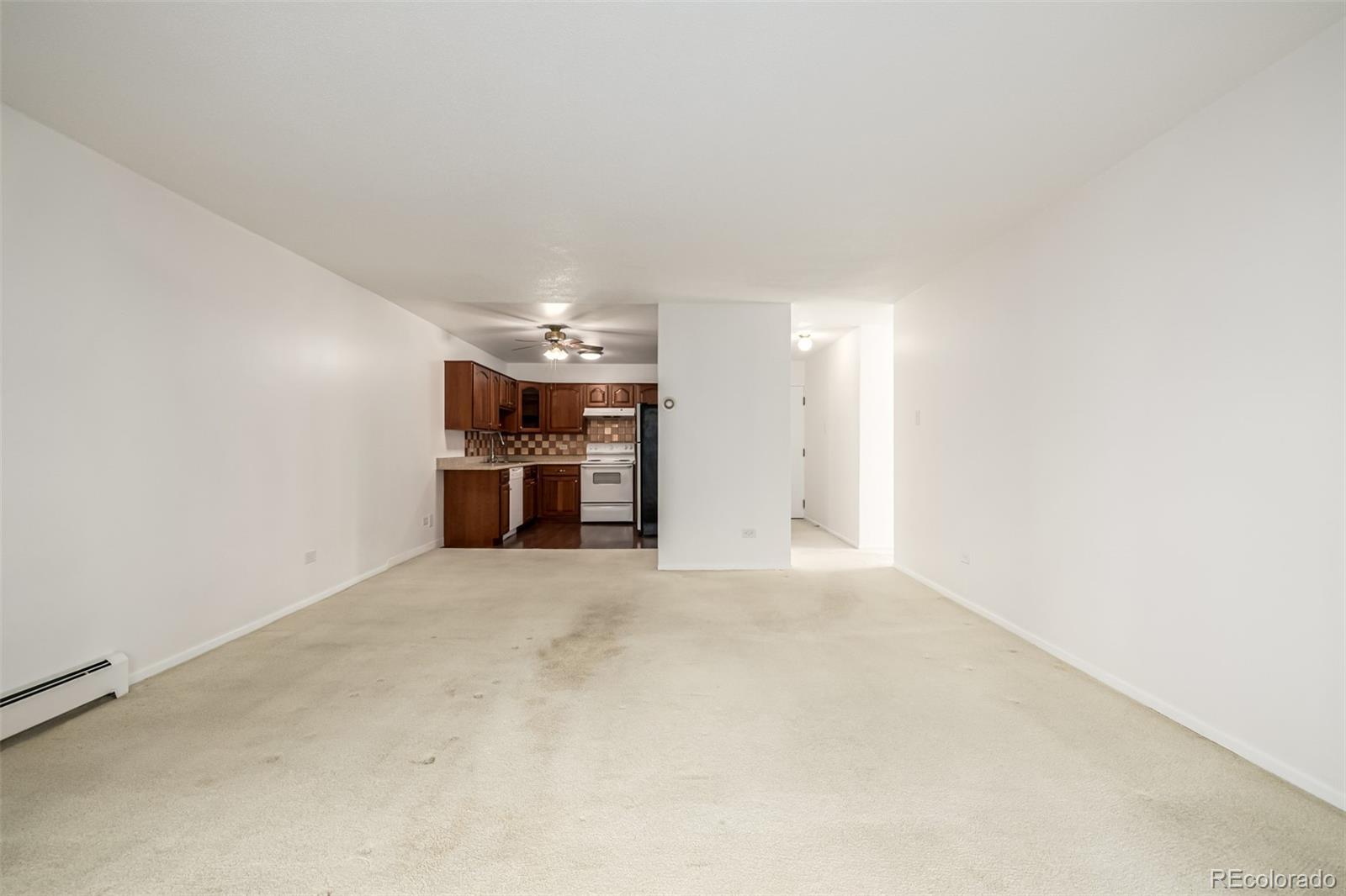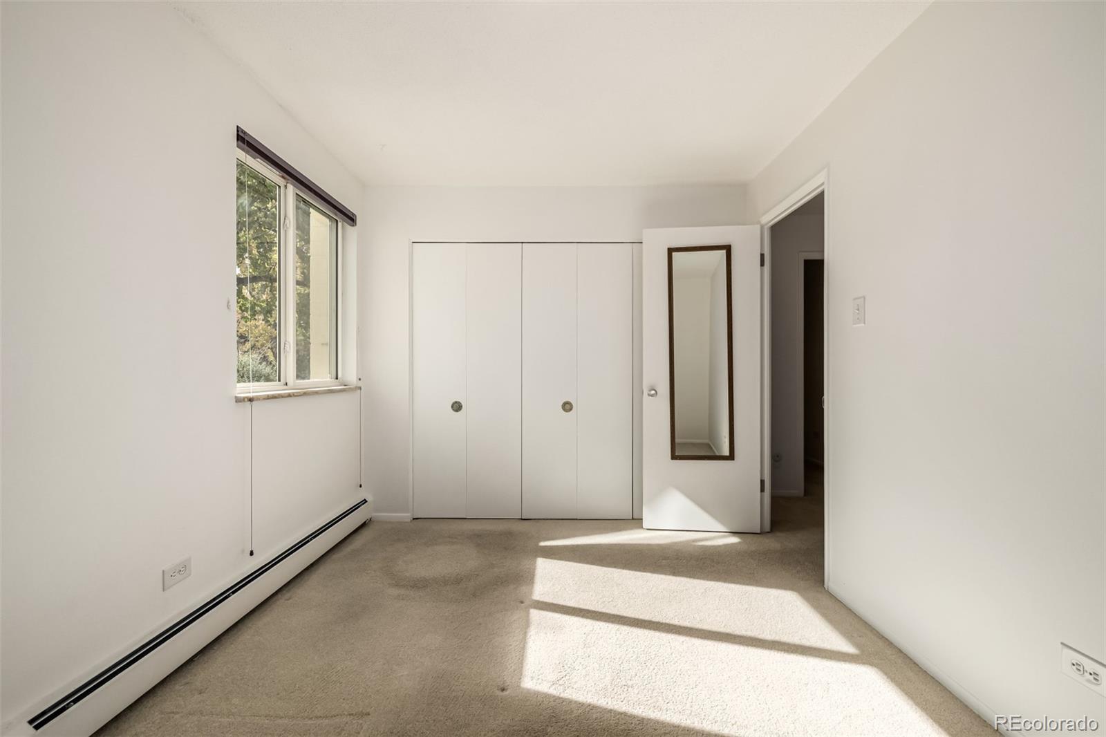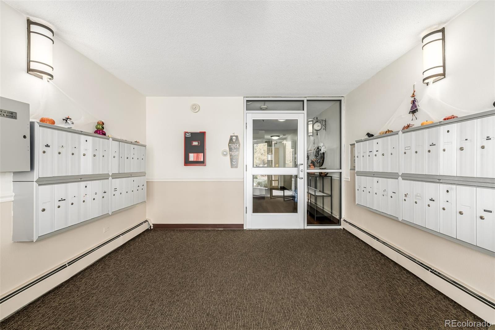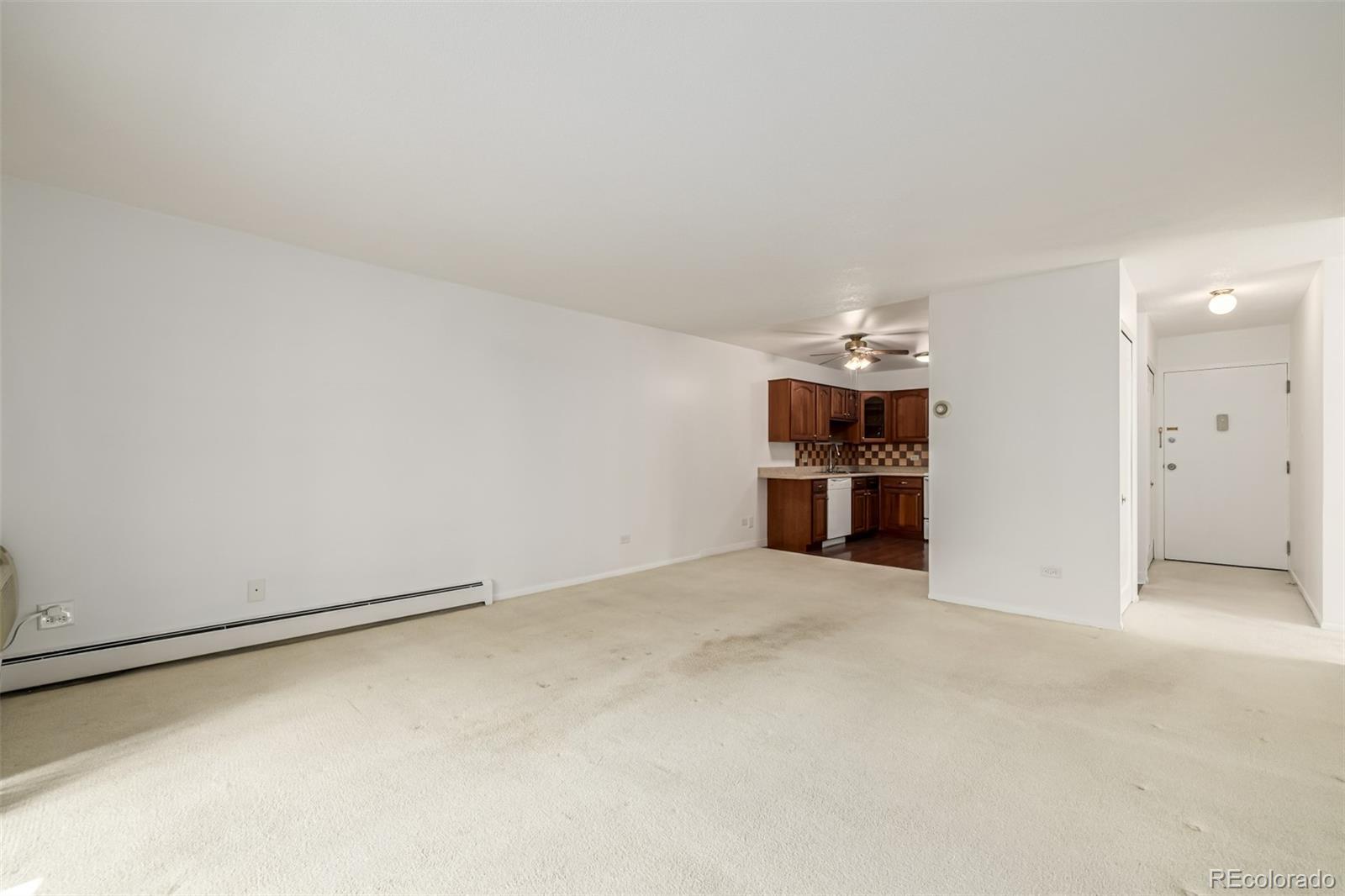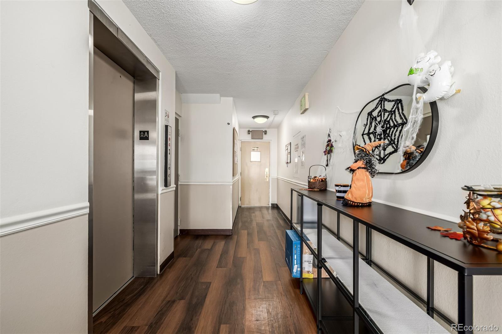Tucked away in one of the most private and peaceful locations in Windsor Gardens, this beautifully refreshed corner-unit condo offers rare privacy, premium views, and quiet comfort. This ranch-style 2-bed 1 bath unit has just been freshly painted and deep cleaned, carpets cleaned and is ready for immediate move-in. Inside, you'll find a remodeled walk-in shower with a grab bar for safe, easy access. Located in a secured building with locked foyer entry, elevator and stair access, and just two doors from the laundry room, convenience is key. As a corner unit, it features extra windows in the bedroom, providing abundant natural light and added views to the SW. The private lanai is ideal for relaxing with scenic, unobstructed views in all seasons. Includes a deeded parking space. HOA dues cover heat, water, sewer, trash, building maintenance, and even property taxes—truly low-maintenance living! Windsor Gardens is Denver’s premier 55+ community with incredible amenities including a 9-hole golf course, clubhouse, indoor/outdoor pools, fitness center, restaurant, and 24/7 armed security with body cams. Enjoy trails, events, and clubs, all just minutes to Cherry Creek, Lowry, and major services.