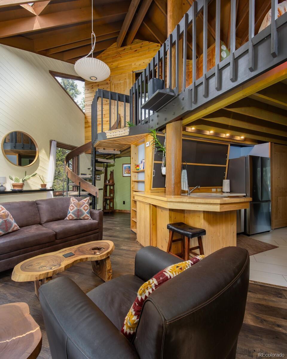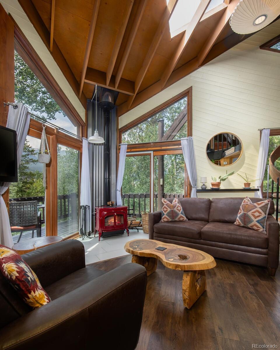 One of the lowest priced Breckenridge homes with land! Over half an acre! This charming Peak 7 A-frame, thoughtfully remodeled, blends classic alpine character with modern updates. Set on a secluded half-acre lot backing to open space and hiking trails, it offers direct access to adventure right from your door along with privacy and stunning views of Breckenridge Ski Resort and the Summit County mountain range, plus potential to expand. Inside, you'll find an inviting open-concept living area with vaulted ceilings, a cozy wood-burning fireplace, and large windows that fill the space with natural light. The kitchen and dining room feature a functional, open layout perfect for gathering and entertaining, complemented by plenty of storage nooks throughout the home to keep everything organized. The loft bedroom provides an open, flexible sleeping space overlooking the main living area. Step outside to a welcoming deck, ideal for grilling or simply relaxing in the alpine setting. Just minutes to world-class skiing at Breckenridge Resort, scenic biking and hiking trails, and the shops and restaurants of Main Street. Whether you're looking for a full-time residence or a weekend getaway, 163 Lone Hand Way delivers classic Breckenridge style with modern comforts in an easy-to-maintain package.