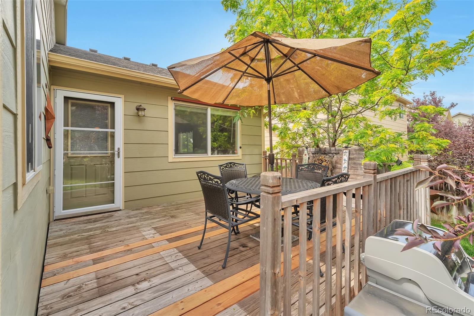 Welcome to this amazing home that features 3 bedrooms and 2 bathrooms. It is located in the highly sought after neighborhood of Quebec Run where the property taxes are the lowest in the area! This beautiful home is welcoming and inviting inside and outside. With the fabulous backyard, enjoy the professional landscaping including trees, plants, and flowers, it welcomes you home. The garage is insulated and drywalled with epoxy floors. This home is move in ready. The carpets were cleaned on 6-25-25 furnace has been cleaned and serviced 6-2025, new roof installed 6-2025. This neighborhood is within a few minutes to Highway 470, I25, and I70. Not to mention the stores, coffee, and restaurants all within walking distance. Schedule your showing today, and let the house explain the rest.