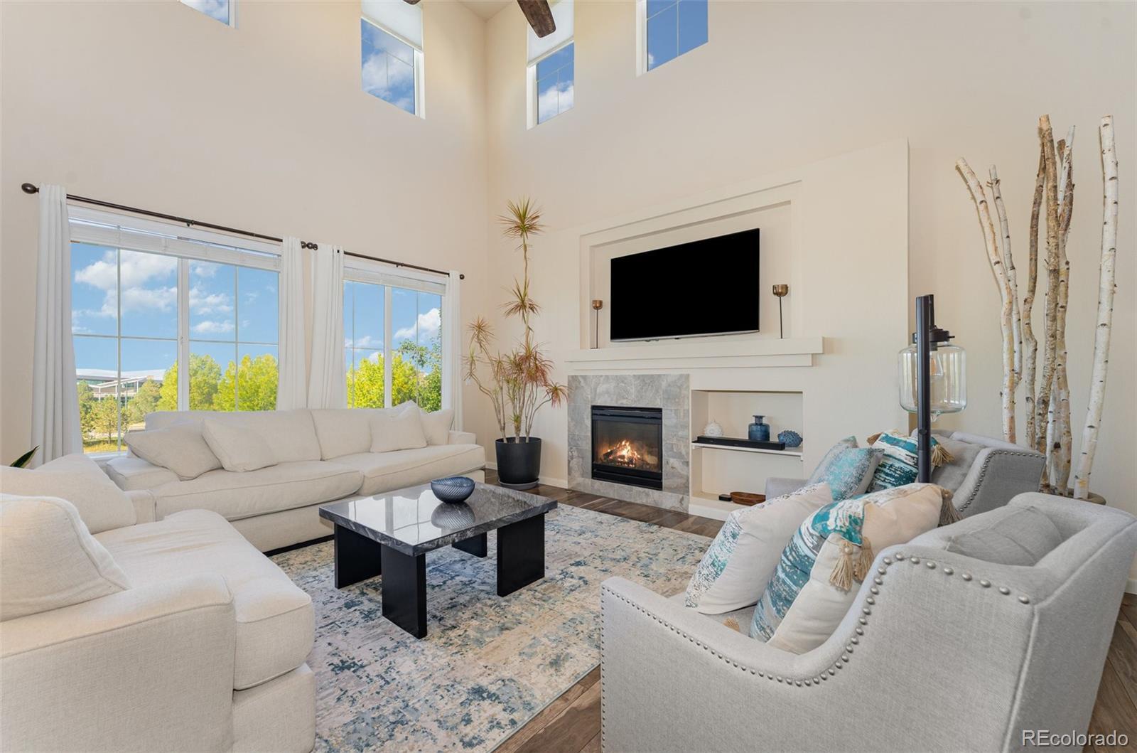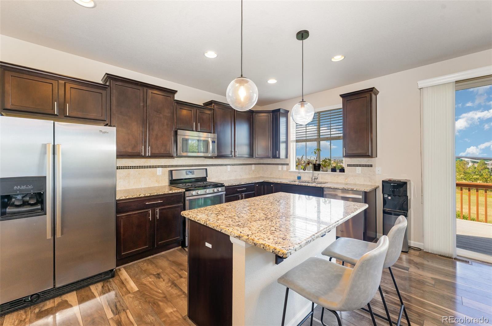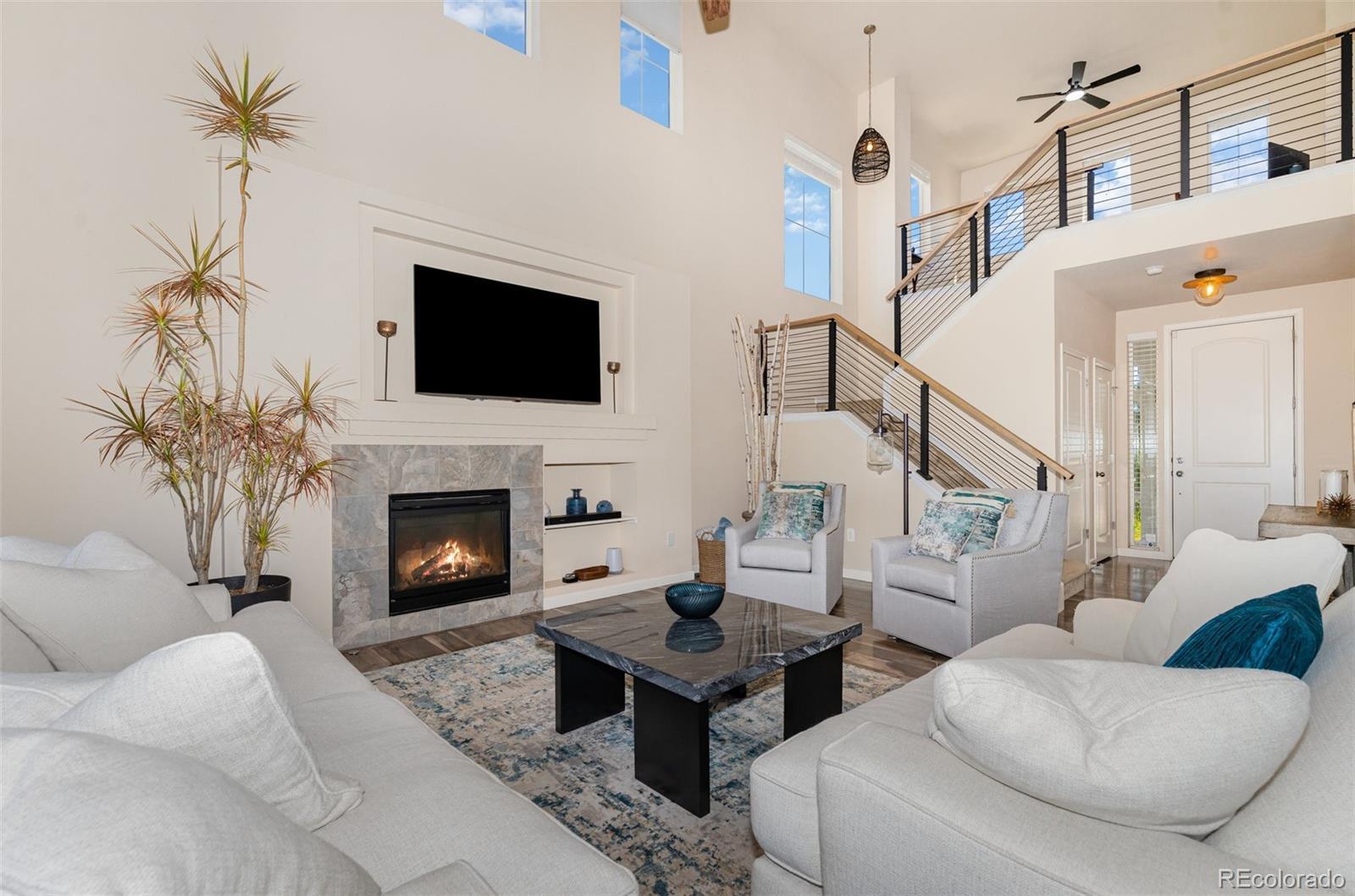Welcome to this beautifully updated two-story home in Aurora’s sought-after Tallyn’s Reach North community. Backing to open space with mountain views and sitting on a quiet cul-de-sac lot, this home combines style, comfort, and location in one perfect package. Step inside to a light-filled open floor plan featuring soaring ceilings, upgraded stair railings, and a cozy gas fireplace. The gourmet kitchen is equipped with granite countertops, stainless steel appliances, an island, and a spacious pantry, making it ideal for both daily living and entertaining. Upstairs, the primary suite offers coffered ceilings, a luxurious five-piece ensuite with soaking tub, and a generous walk-in closet. Two additional bedrooms, a full bath with double vanity, and a bright loft provide flexible living space for family, guests, or a home office. The finished walk-out basement extends your living area with a large recreation room, wet bar, and a modern three-quarter bath — the perfect spot for movie nights, game days, or hosting visitors. Outside, enjoy a fully fenced backyard with an irrigation system, a private deck, and an oversized patio with sweeping mountain views. Major updates include a newer HVAC system, A/C, and hot water heater, ensuring peace of mind. Living in Tallyn’s Reach North means access to community parks, pool, clubhouse, tennis courts, and scenic trails. Families will love being within the award-winning Cherry Creek School District, including walking distance to Coyote Hills Elementary. Nearby, you’ll find Fox Ridge Middle School and Cherokee Trail High School, plus easy access to E-470, Denver International Airport, and Southlands Mall with its shopping, dining, and entertainment. If you’re looking for a move-in ready home with modern updates, community perks, and an unbeatable location, Davies Place delivers. Schedule your showing today!
