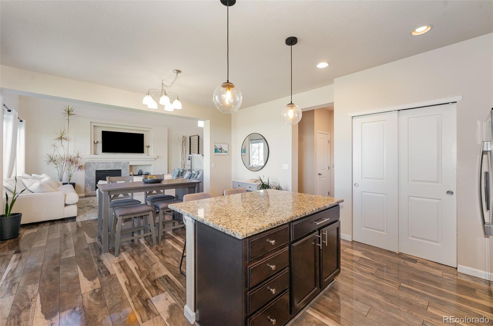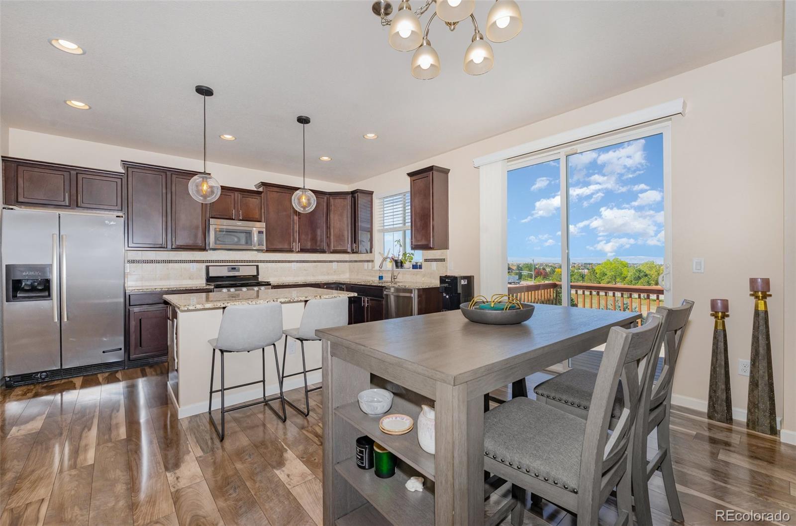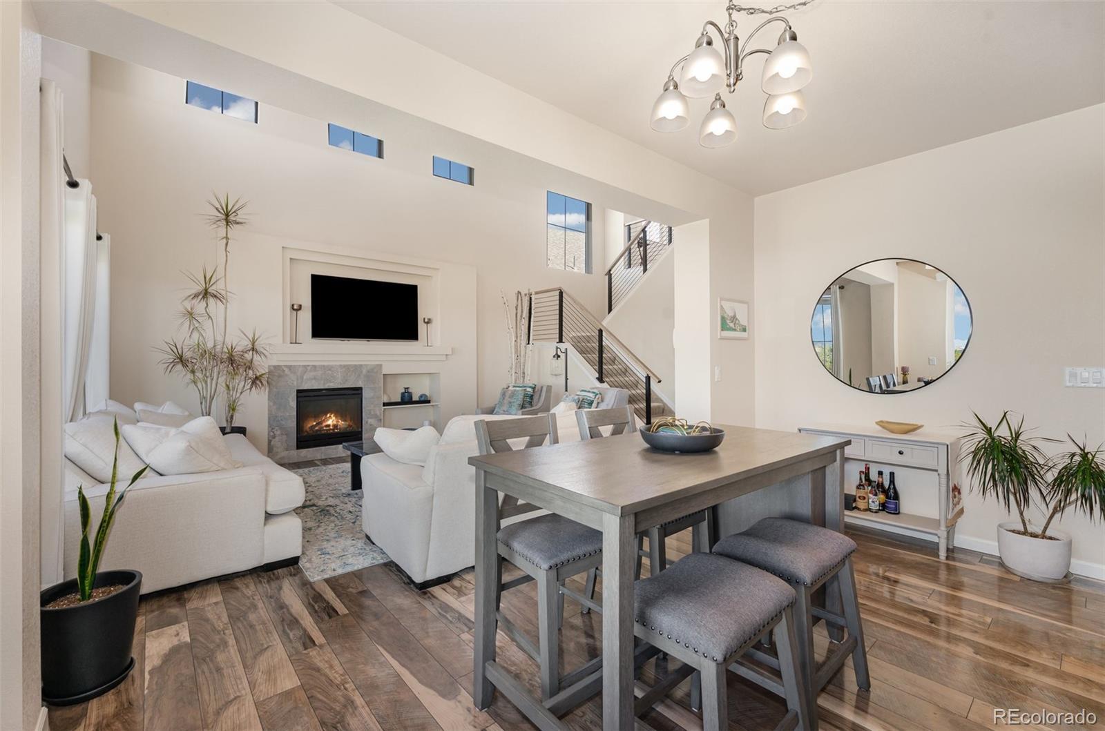 Welcome to this beautifully updated two-story home in Aurora’s sought-after Tallyn’s Reach North community. Backing to open space with mountain views and sitting on a quiet cul-de-sac lot, this home combines style, comfort, and location in one perfect package. Step inside to a light-filled open floor plan featuring soaring ceilings, upgraded stair railings, and a cozy gas fireplace. The gourmet kitchen is equipped with granite countertops, stainless steel appliances, an island, and a spacious pantry, making it ideal for both daily living and entertaining. Upstairs, the primary suite offers coffered ceilings, a luxurious five-piece ensuite with soaking tub, and a generous walk-in closet. Two additional bedrooms, a full bath with double vanity, and a bright loft provide flexible living space for family, guests, or a home office. The finished walk-out basement extends your living area with a large recreation room, wet bar, and a modern three-quarter bath — the perfect spot for movie nights, game days, or hosting visitors. Outside, enjoy a fully fenced backyard with an irrigation system, a private deck, and an oversized patio with sweeping mountain views. Major updates include a newer HVAC system, A/C, and hot water heater, ensuring peace of mind. Living in Tallyn’s Reach North means access to community parks, pool, clubhouse, tennis courts, and scenic trails. Families will love being within the award-winning Cherry Creek School District, including walking distance to Coyote Hills Elementary. Nearby, you’ll find Fox Ridge Middle School and Cherokee Trail High School, plus easy access to E-470, Denver International Airport, and Southlands Mall with its shopping, dining, and entertainment. If you’re looking for a move-in ready home with modern updates, community perks, and an unbeatable location, Davies Place delivers. Schedule your showing today!