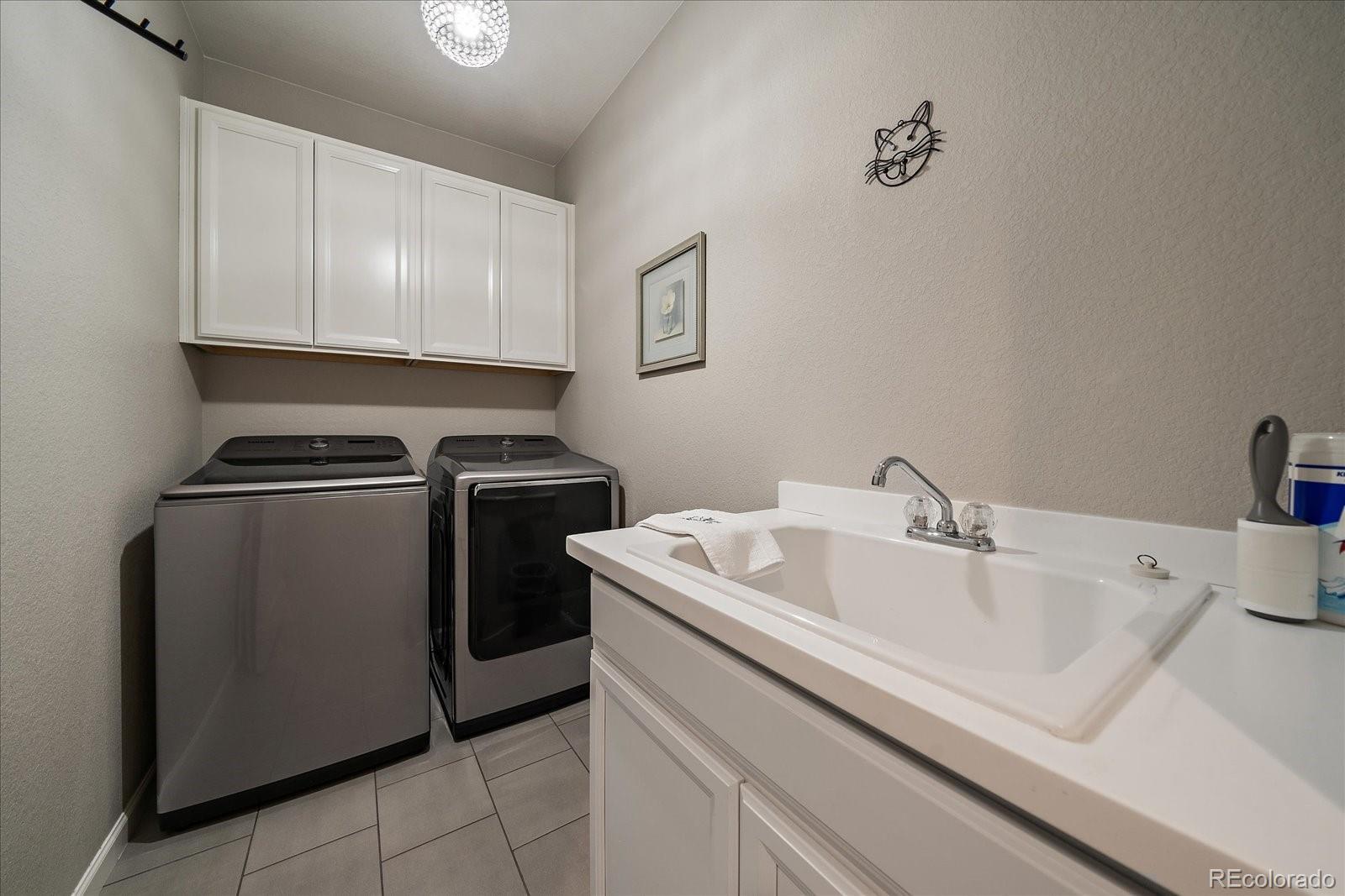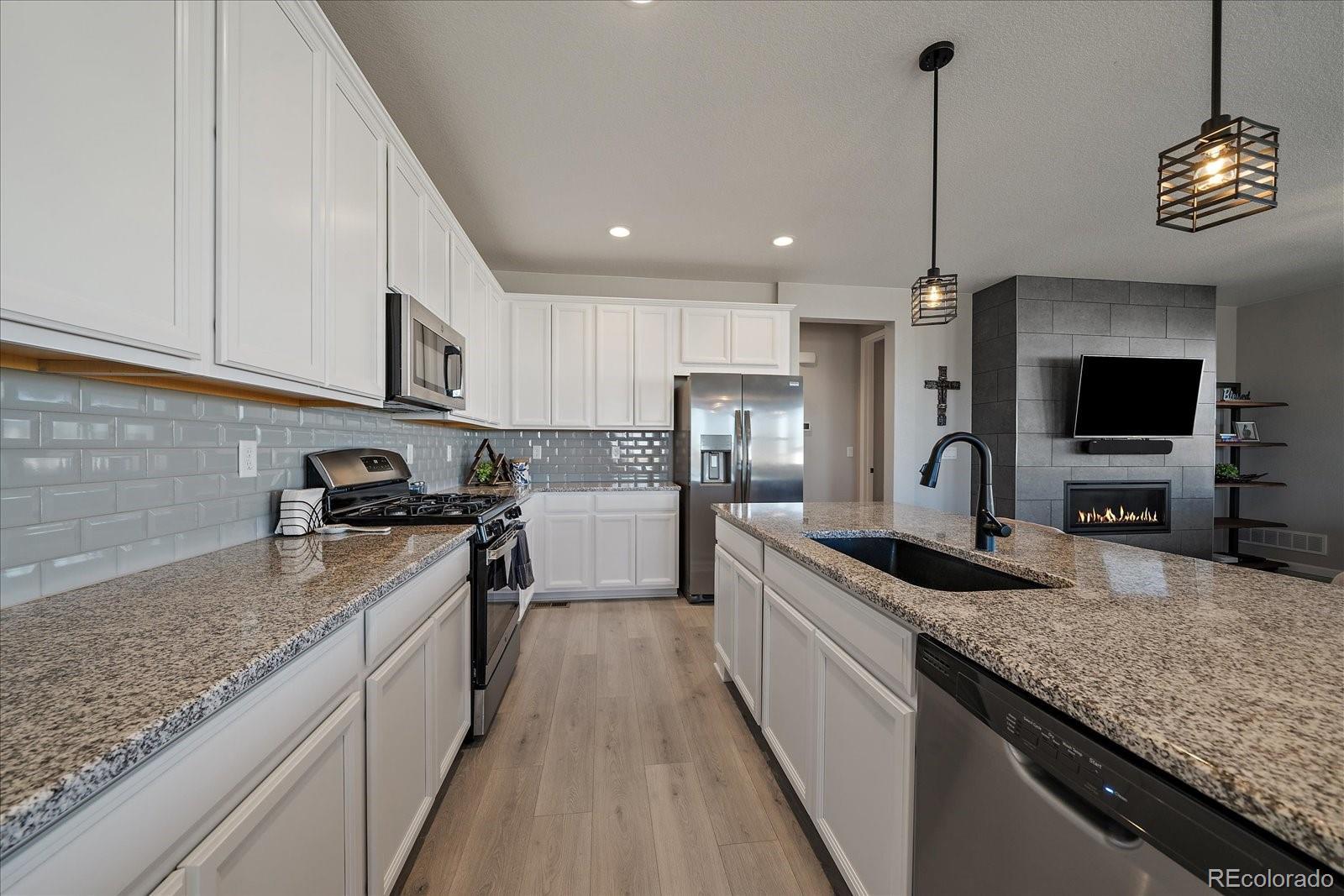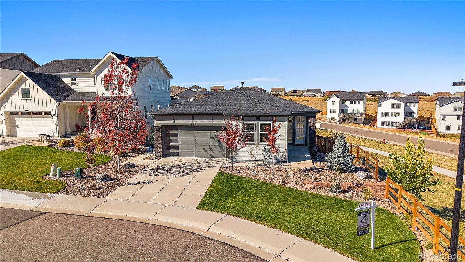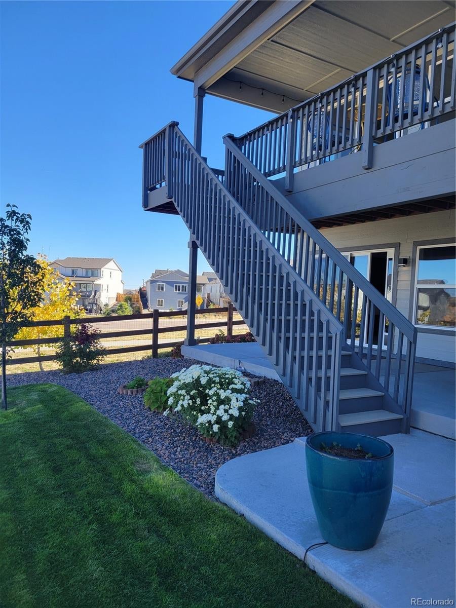 Welcome Home! This 3 Bed, 4 Bath stunning finished walk-out ranch will not disappoint. Located at the end of a cul-de-sac backing to open space with professional landscaping. This Taylor Morrison Flatirons Model is spacious, with a functional, well appointed floor plan that has an open concept design, a main floor office, an oversized covered deck, large kitchen with beautiful cabinets and large center island. The Primary Suite features a large spa shower and walk-in closet. The laundry room has a washer and dryer (purchased in 2020) that is included and a utility sink with storage. The 2nd main floor bedroom has a full bath ensuite. In the finished basement you will find a bedroom with a large walk-in closet, a 3/4 bath with a no-lip rain shower, and a large family room ready for entertaining, with Custom Black Beams, and luxury vinyl plank flooring. You can walk right out to the professionally landscaped back yard with additional concrete patio and walkway, backing to open space. All door knobs, hinges, door handles, faucets, towel bars and lighting have been upgraded to a matte black. The kitchen sink has been upgraded to a black silgranite farm sink. All bedrooms have fandaliers. There is a list of inclusions in Supplements.